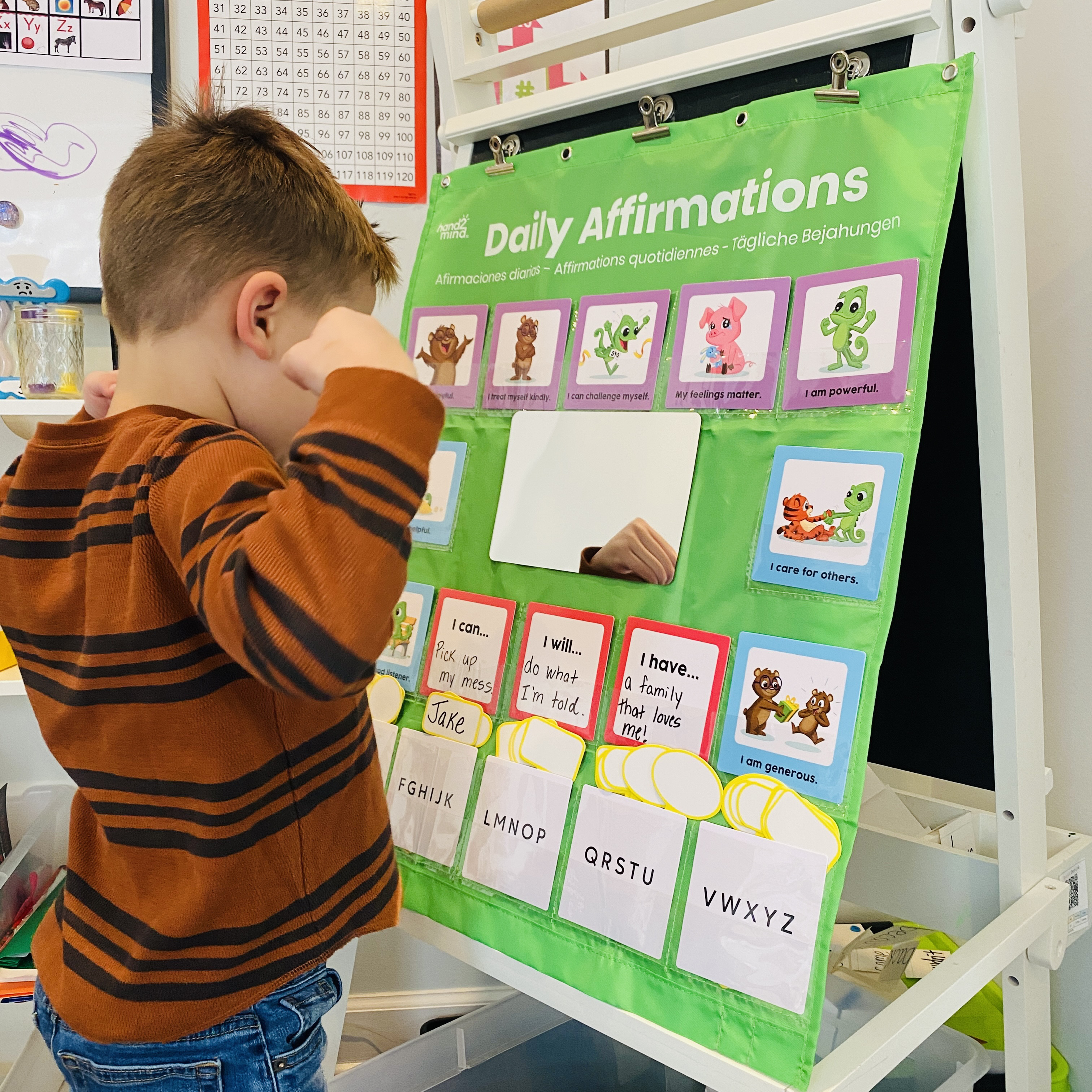 SKU H2M-95378 Product Name Daily Affirmations Pocket Chart Product Title Daily Affirmations Pocket Chart Brand Name hand2mind UPC 848850119509 Piece Count 74 Min Target Age 3 Max Target Age 10 TargetGradeMax Fifth Grade TargetGradeMin Pre-K ProductCategoryProductLine Feelings and Emotions ProductCategoryProductType Classroom Supplies ProductCategorySubject Social-Emotional Learning Port of Exit CNSZX Country of Origin CHN Unit Height 2 Unit Length 13 Unit Weight 1.3 Unit Width 13 CA prop 65 No Case Height 10 Case Length 13.6 Case Quantity 12 Case Weight 16 CPQ 1.06 Includes Remote No Marble Warning No MSRP 29.99 Small Ball Warning No Small Parts Warning Yes