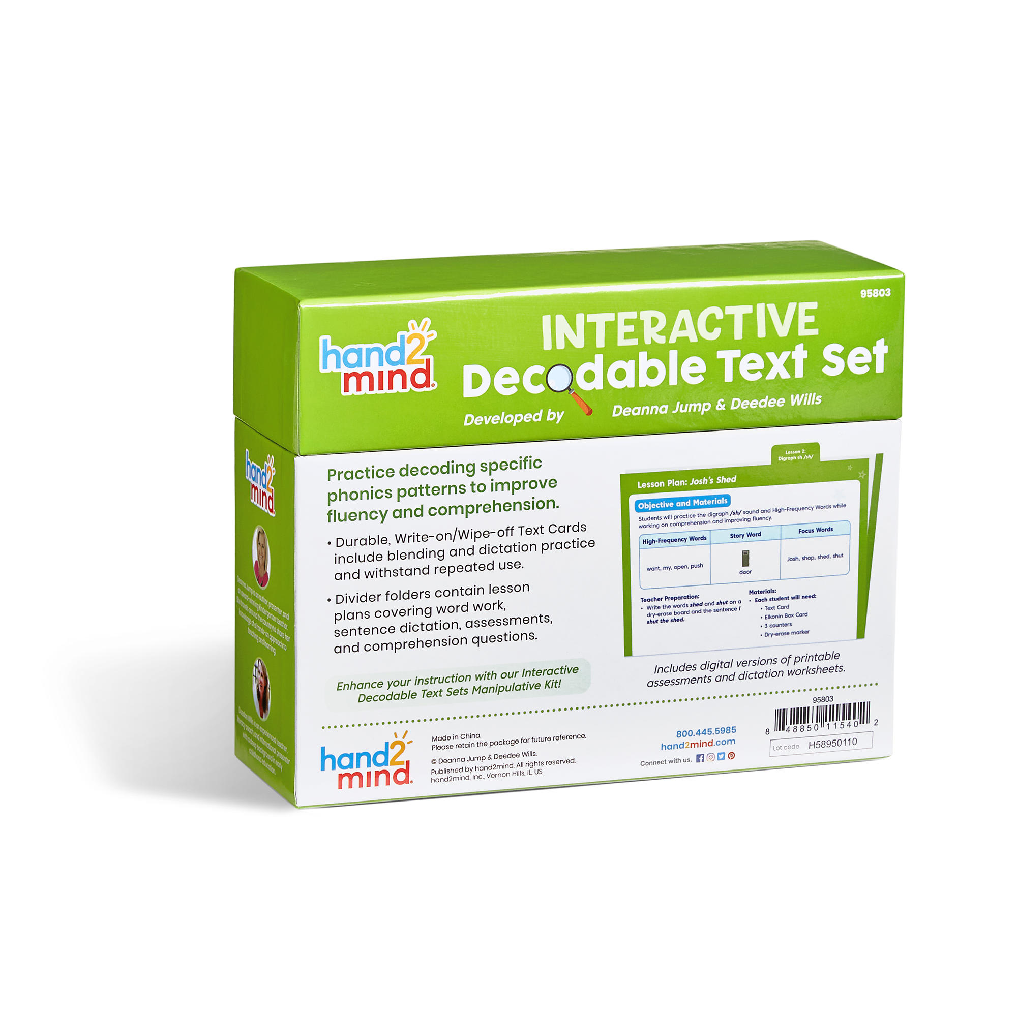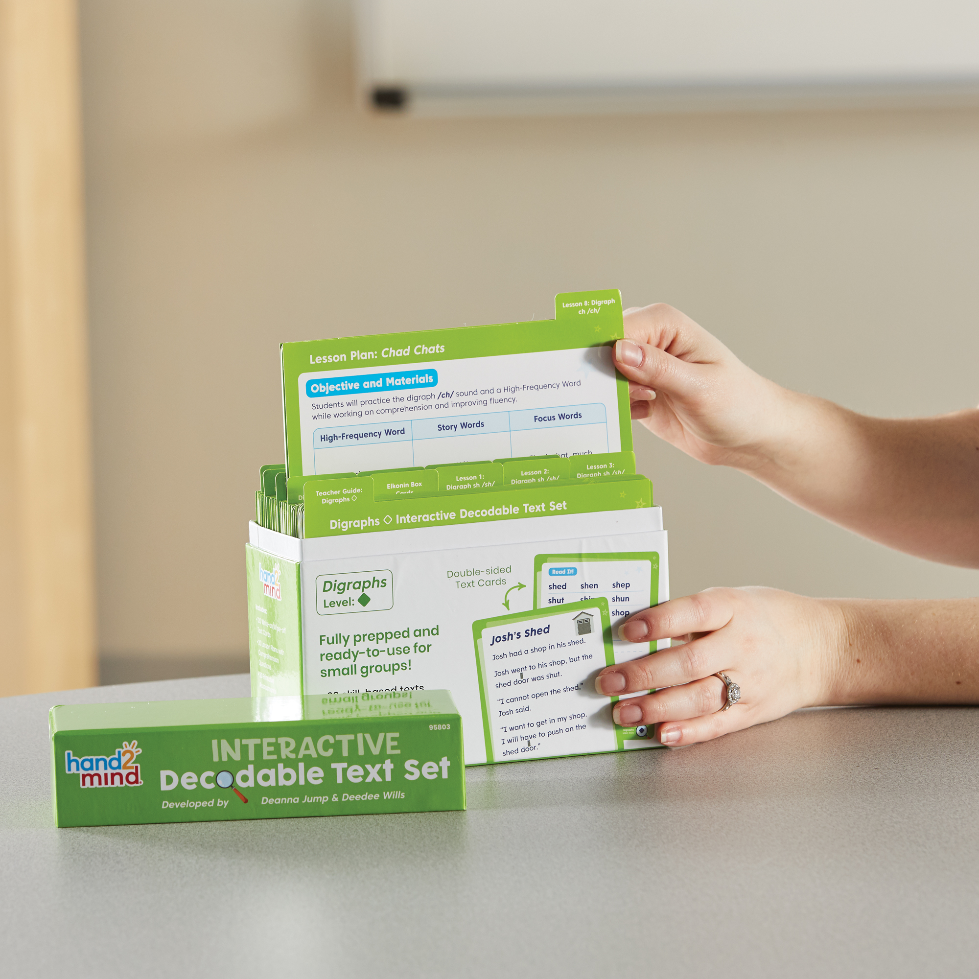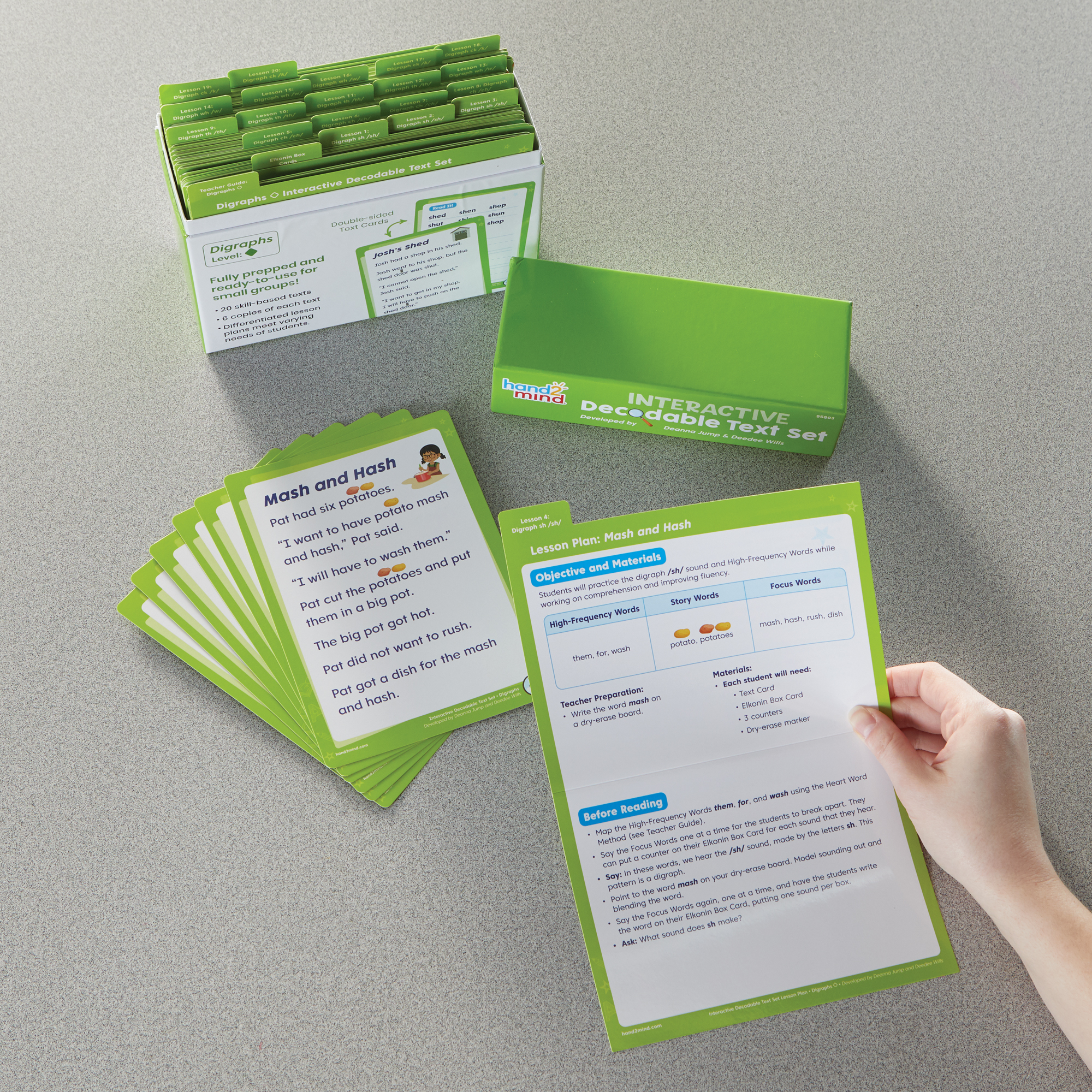 SKU H2M-95803 Product Name Interactive Decodable Text Set Digraphs, Diamond Level Product Title Interactive Decodable Text Set: Digraphs (Diamond) Brand Name hand2mind UPC 848850115402 Piece Count 0 Min Target Age 6 Max Target Age 6.9 TargetGradeMax First Grade TargetGradeMin First Grade ProductCategoryProductLine Interactive Decodable Texts ProductCategoryProductType Instruction - Small Group ProductCategorySubject ELA/Literacy Port of Exit CNYTN Country of Origin CHN Unit Height 3 Unit Length 7.15 Unit Weight 2.9 Unit Width 6 CA prop 65 No Case Height 14 Case Length 15.7 Case Quantity 12 Case Weight 35.9 CPQ 1.25 Includes Remote No Marble Warning No MSRP 229.99 Small Ball Warning No Small Parts Warning No