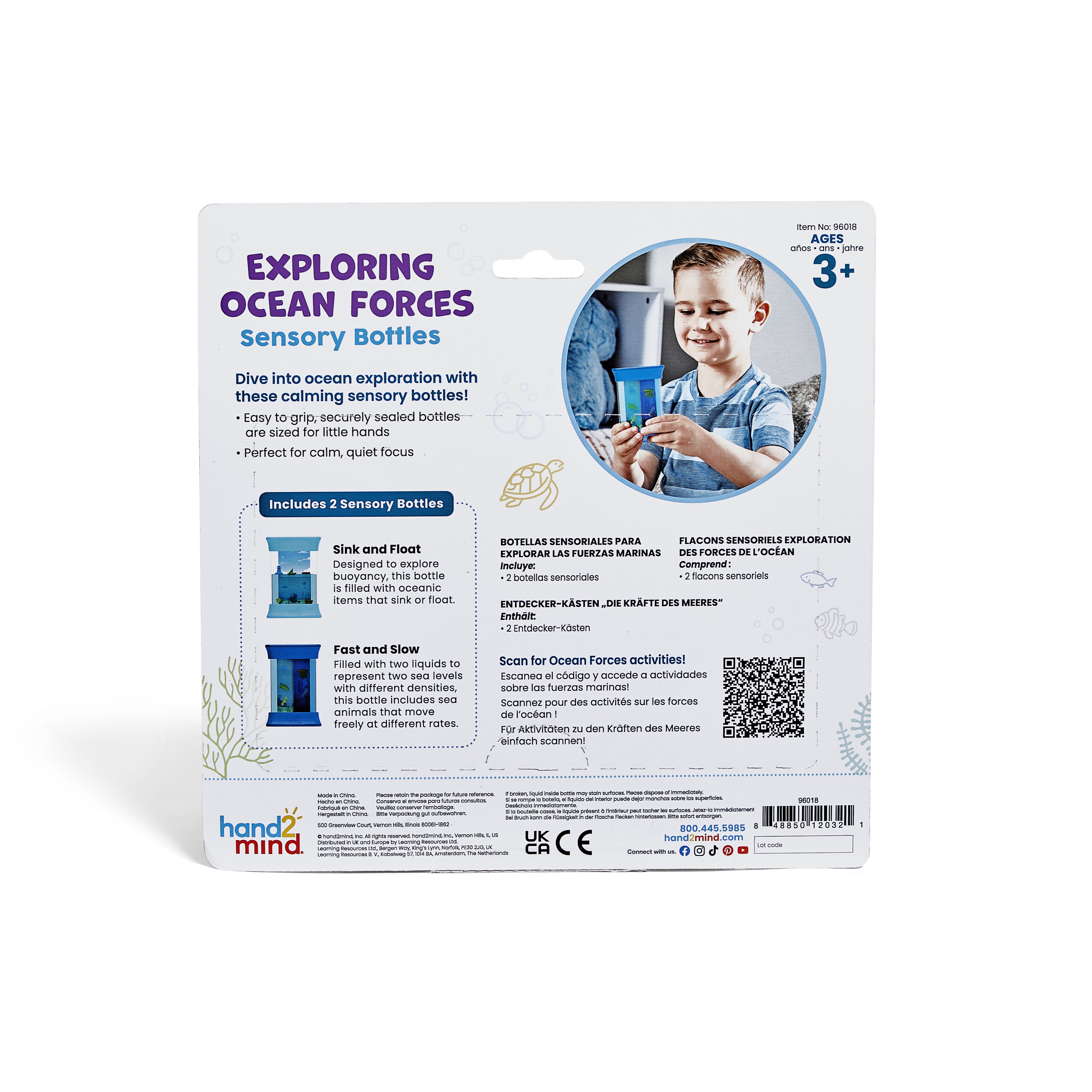 SKU H2M-96018 Product Title Exploring Ocean Forces Sensory Bottles Brand Name hand2mind UPC 848850120321 Piece Count 2 Min Target Age 3 Max Target Age 8 TargetGradeMax Third Grade TargetGradeMin Pre-K ProductCategoryProductLine Sensory and Fidget ProductCategoryProductType Educational Toy ProductCategorySubject Social-Emotional Learning Port of Exit CNYTN Country of Origin CHN Unit Height 5.06 Unit Length 1.48 Unit Weight 0.97 Unit Width 3.42 Long Description - DC These sensory bottles provide a fun and tactile way for children to focus their attention and calm down. Use one bottle to explore buoyancy, watching ocean items sink or float depending on their weight. Use the other bottle to explore density, watching ocean animals swim fast or slow through different types of liquid. CA prop 65 No Case Height 9.64 Case Length 12 Case Quantity 6 Case Weight 7.05 CPQ 0.36 Includes Remote No Marble Warning No MSRP 15.99 Small Ball Warning No Small Parts Warning No