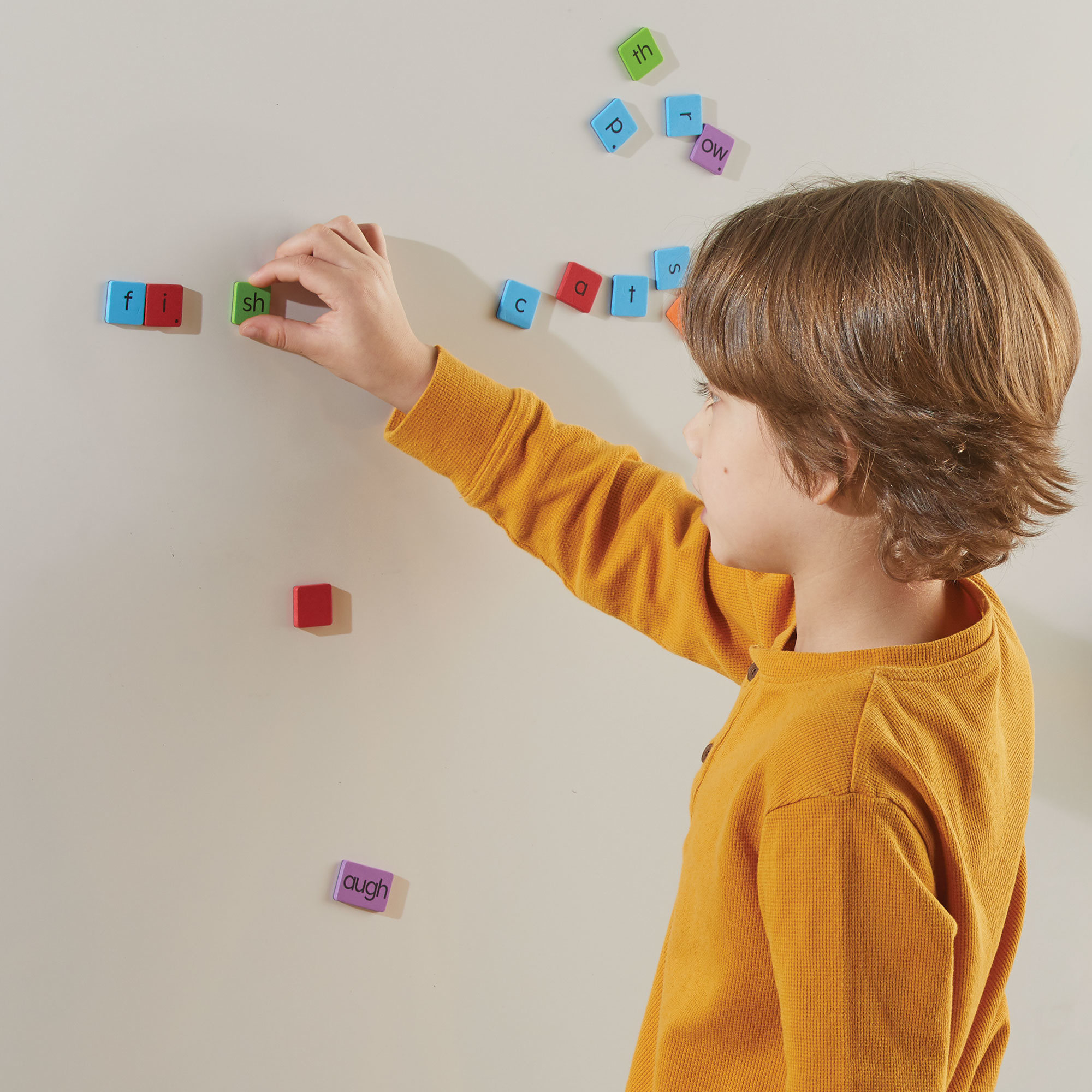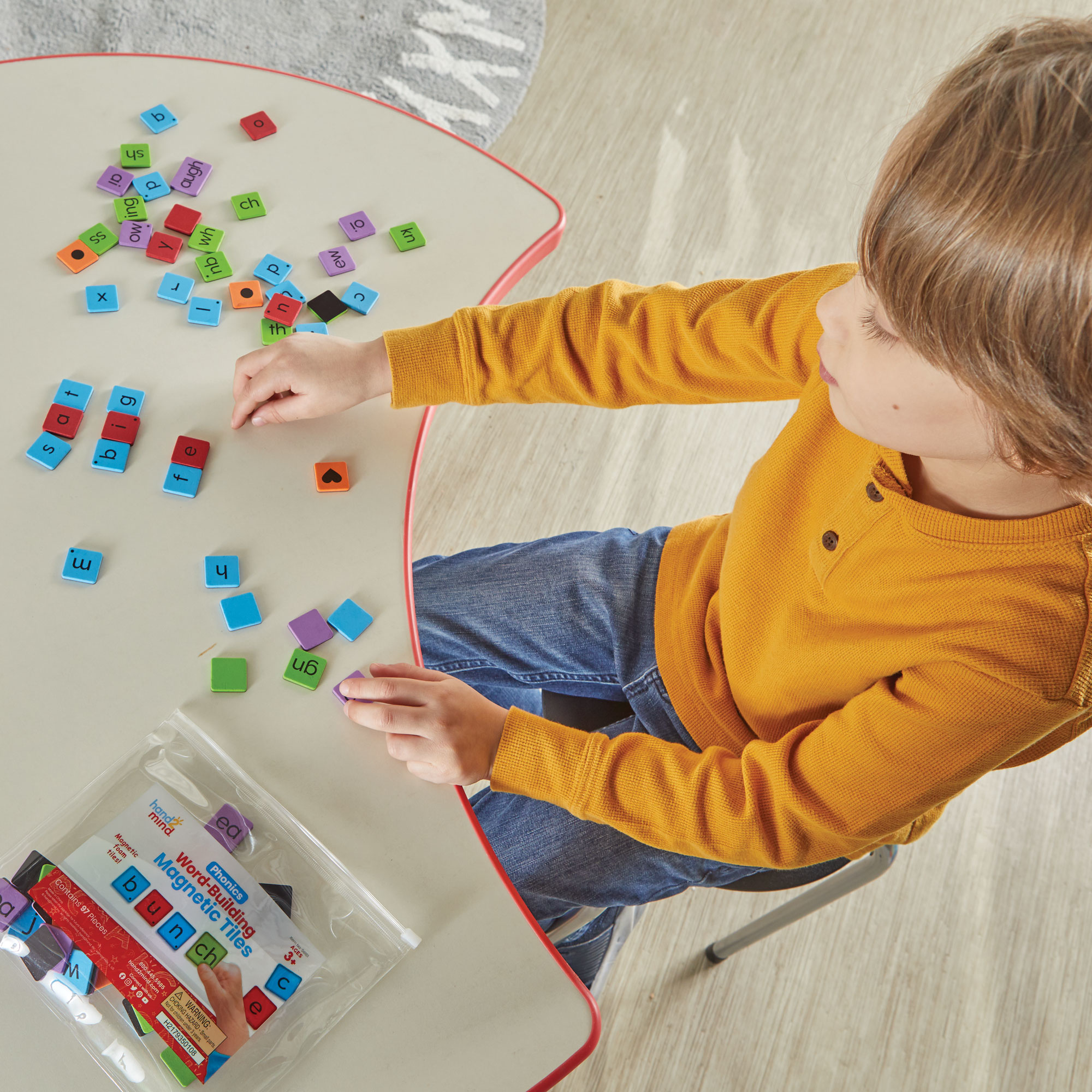 SKU H2M-96161 Product Title Phonics Word-Building Magnetic Tiles Brand Name hand2mind UPC 848850120475 Piece Count 846 Min Target Age 3 Max Target Age 8 TargetGradeMax Third Grade TargetGradeMin Pre-K ProductCategoryProductLine Phonics and Phonemic Awareness ProductCategoryProductType Manipulative - Small Group or Center ProductCategorySubject ELA/Literacy Port of Exit CNNGB Country of Origin CHN Unit Height 5.5 Unit Length 7.5 Unit Weight 3.23 Unit Width 8.5 Short Description - DC Create a fun, interactive learning experience with these unique, magnetic word-building tiles. Color-coded printed tiles include consonants, vowels, digraphs, and variant vowels. Heart tiles and dot tiles can be used to teach high-frequency words using the “heart-word” method, sight words, and sound isolation. Durable, foam magnetic tiles are perfect for classroom use. Long Description - DC Create a fun, interactive learning experience with these unique, magnetic word-building tiles. Color-coded printed tiles include consonants, vowels, digraphs, and variant vowels. Heart tiles and dot tiles can be used to teach high-frequency words using the “heart-word” method, sight words, and sound isolation. Durable, foam magnetic tiles are perfect for classroom use. For over 55 years, hand2mind has encouraged hands-on learning and discovery, driving deeper understanding and helping children unlock their full potential. hand2mind specializes in literacy activities and products designed to help students learn by doing. With products designed to help students with reading comprehension, sentence building, phonics for toddlers and more. We're also a leader in dyslexic tools for kids who have a tougher time getting started with reading. From early reading to advanced reading, hand2mind has you covered with products designed to enhance learning in the classroom and the world around us. Through hands-on exploration and discovery, we strive to find new ways to encourage students in math practice, literacy activities, STEM education and more! CA prop 65 No Case Height 12 Case Length 18 Case Quantity 8 Case Weight 25.84 CPQ 1.94 Includes Remote No Marble Warning No MSRP 52.99 Small Ball Warning No Small Parts Warning Yes