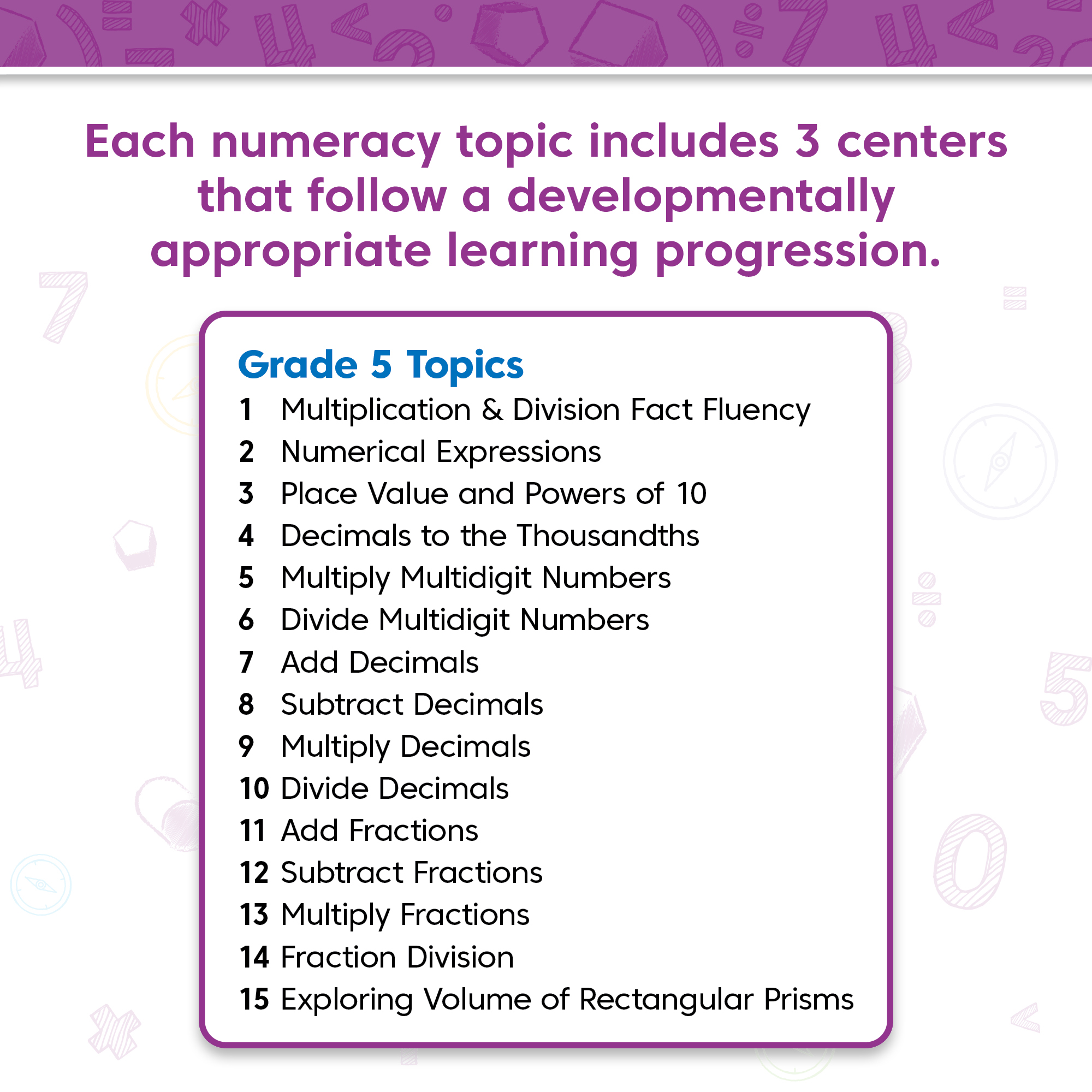SKU H2M-96215 Product Title Navigating Numeracy Center Kit, Grade 5 Brand Name hand2mind UPC 848850120536 Piece Count 0 Min Target Age 10 Max Target Age 10 TargetGradeMax Fifth Grade TargetGradeMin Fifth Grade ProductCategoryProductLine Navigating Numeracy ProductCategoryProductType Instruction - Center ProductCategorySubject Math Country of Origin USA Unit Height 7.75 Unit Length 24.5 Unit Weight 11.08 Unit Width 16.38 CA prop 65 No Case Height 7.75 Case Length 24.5 Case Quantity 1 Case Weight 11.08 CPQ 1.8 Includes Remote No Marble Warning No MSRP 319.99 Small Ball Warning No Small Parts Warning No