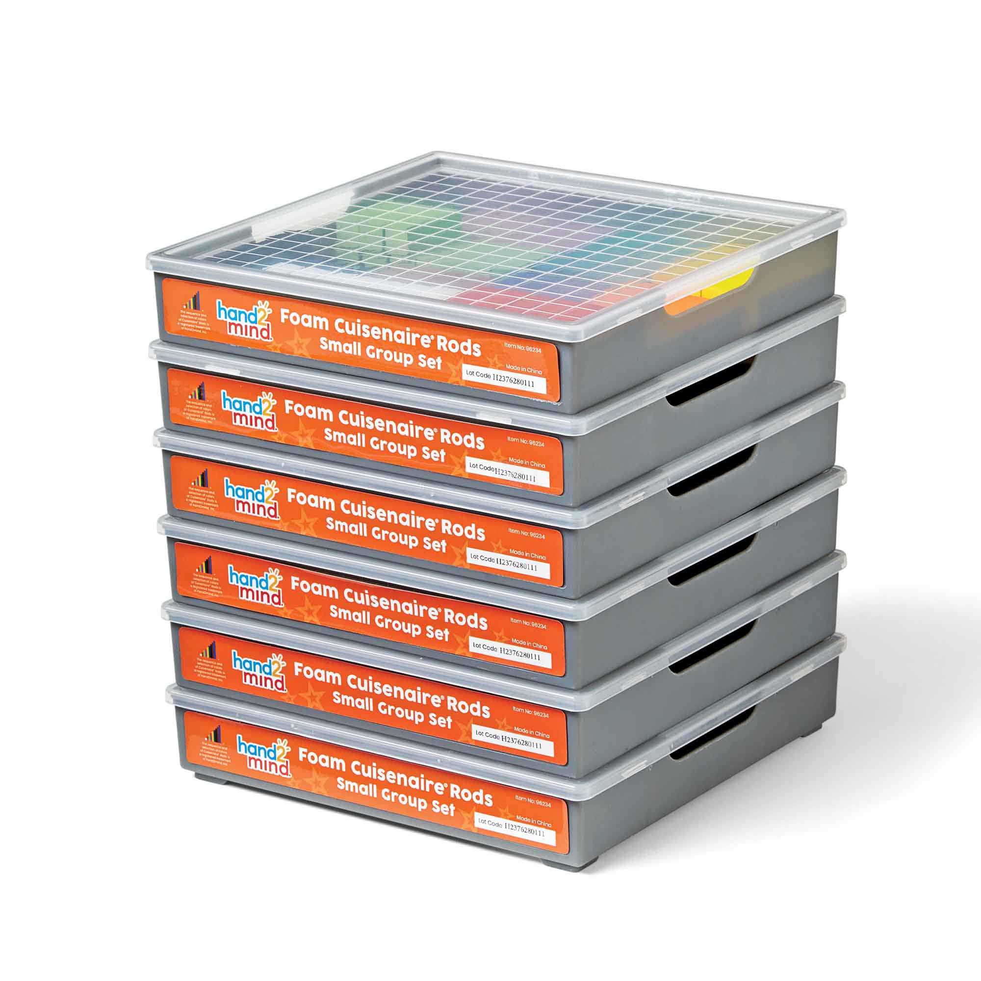 SKU H2M-96234 Product Title Foam Cuisenaire® Rods Small Group Set Brand Name hand2mind UPC 848850120659 Piece Count 456 Min Target Age 5 Max Target Age 13 TargetGradeMax Eighth Grade TargetGradeMin Kindergarten ProductCategoryProductLine Cuisenaire Rods ProductCategoryProductType Manipulative - Small Group or Center ProductCategorySubject Math Port of Exit CNNGB Country of Origin CHN Unit Height 6.9 Unit Length 6.9 Unit Weight 1.26 Unit Width 8.5 Short Description - DC Tried and true, Cuisenaire Rods help students relate abstract ideas about numbers and shapes to something they can see and touch. This teacher-favorite manipulative provides endless opportunities to introduce, investigate, and reinforce key math topics such as addition, subtraction, geometry, measurement, multiplication, and division! Cuisenaire Rods come in 10 colors and lengths: orange-10 cm, blue-9 cm, brown-8 cm, black-7 cm, dark green-6 cm, yellow-5 cm, purple-4 cm, green-3 cm, red-2 cm, white-1 cm. Comes with 6 Storage Trays for easy, stackable storage. The lids of each tray double as a workplace grid! This Set includes 6 Sets of 74 Foam Cuisenaire Rods (4 Orange, 4 Blue, 4 Brown, 4 Black, 4 Dark Green, 4 Yellow, 6 Purple, 10 Green, 12 Red, 22 White) and 6 Storage Trays. Long Description - DC Tried and true, Cuisenaire Rods help students relate abstract ideas about numbers and shapes to something they can see and touch. This teacher-favorite manipulative provides endless opportunities to introduce, investigate, and reinforce key math topics such as addition, subtraction, geometry, measurement, multiplication, and division! Cuisenaire Rods come in 10 colors and lengths: orange-10 cm, blue-9 cm, brown-8 cm, black-7 cm, dark green-6 cm, yellow-5 cm, purple-4 cm, green-3 cm, red-2 cm, white-1 cm. Comes with 6 Storage Trays for easy, stackable storage. The lids of each tray double as a workplace grid! This Set includes 6 Sets of 74 Foam Cuisenaire Rods (4 Orange, 4 Blue, 4 Brown, 4 Black, 4 Dark Green, 4 Yellow, 6 Purple, 10 Green, 12 Red, 22 White) and 6 Storage Trays. For over 50 years, hand2mind has encouraged hands-on learning and discovery, driving deeper understanding and helping children unlock their full potential. Hand2mind specializes in math manipulatives designed to help students learn by doing. Particularly with fractions, our rainbow fraction tiles, rainbow fraction circles and rainbow fraction tower cubes make learning fractions as easy as learning the colors of the rainbow. From early math to middle school math, hand2mind has you covered with products designed to enhance learning in the classroom and the world around us. Through hands-on exploration and discovery, we strive to find new ways to encourage students in math practice, literacy activities, STEM education and more! CA prop 65 No Case Height 15.35 Case Length 14.17 Case Quantity 8 Case Weight 20.69 CPQ 1.78 Includes Remote No Marble Warning No MSRP 69.99 Small Ball Warning No Small Parts Warning Yes