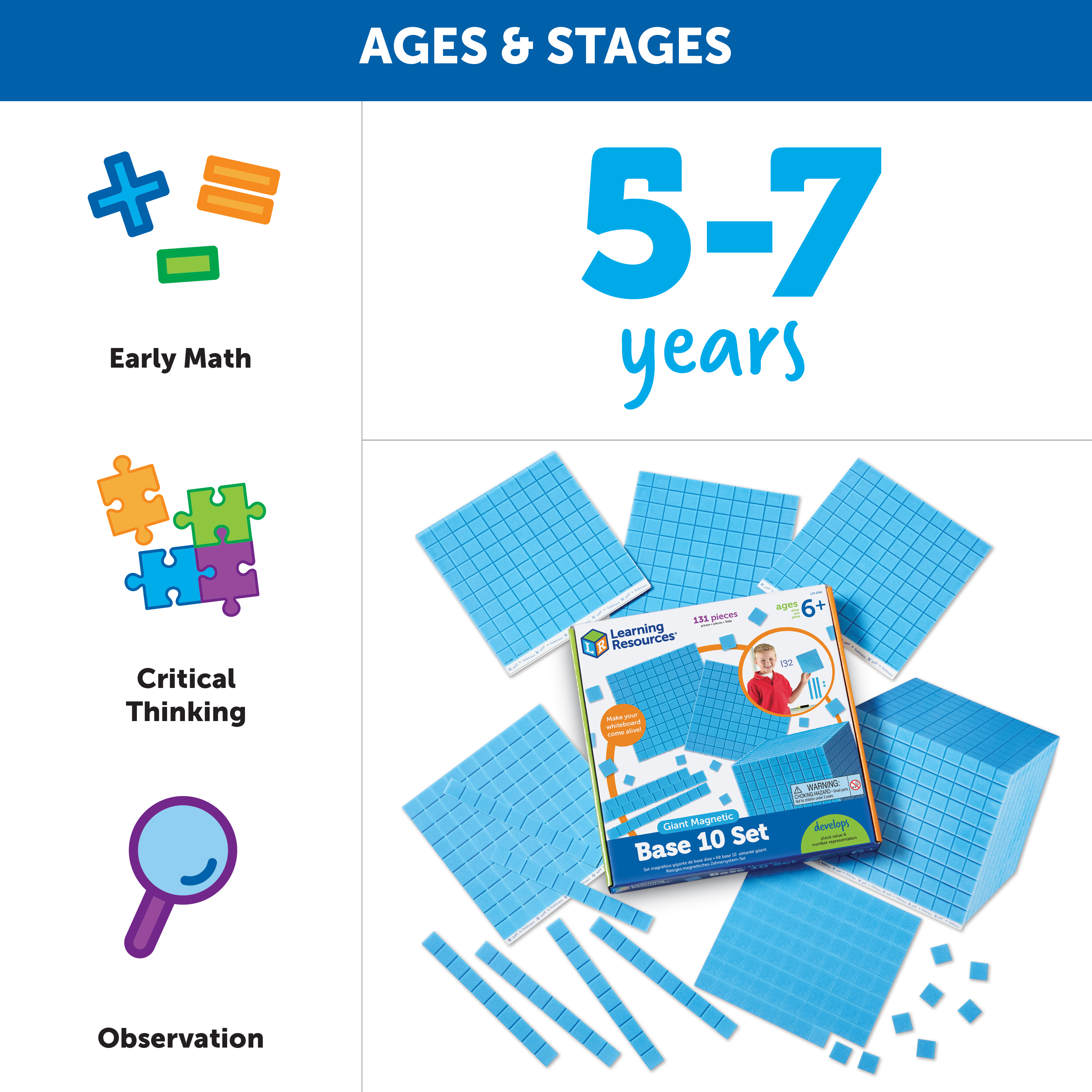 SKU H2M-96587 Product Title Giant Magnetic Base Ten Set Brand Name Learning Resources UPC 765023063660 Piece Count 0 Min Target Age 6 Max Target Age 10 TargetGradeMax Fifth Grade TargetGradeMin First Grade ProductCategoryProductLine Other/Miscellaneous ProductCategoryProductType Educational Toy ProductCategorySubject Math Country of Origin IND Unit Height 1.7 Unit Length 10.5 Unit Weight 2.05 Unit Width 10.5 CA prop 65 No Case Height 10 Case Length 21.9 Case Quantity 12 Case Weight 26.25 CPQ 1.47 Includes Remote No Marble Warning No MSRP 29.99 Small Ball Warning No Small Parts Warning No