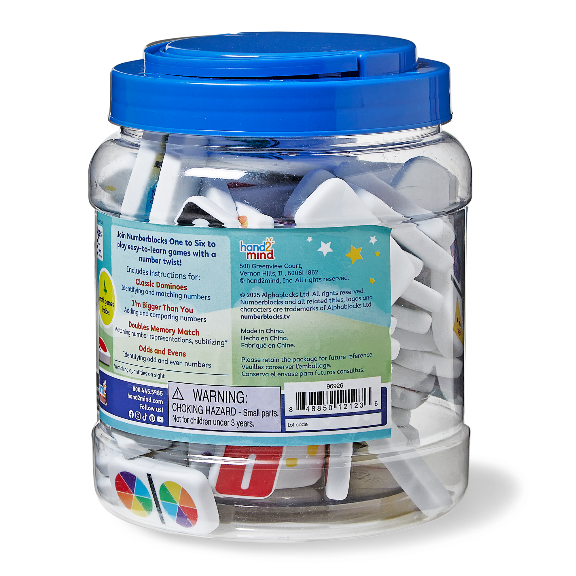 SKU H2M-96926 Product Title Numberblocks® Dominoes Set Brand Name Numberblocks UPC 848850121236 Piece Count 112 Min Target Age 3 Max Target Age 7 TargetGradeMax Second Grade TargetGradeMin Pre-K ProductCategoryProductLine Numberblocks ProductCategoryProductType Game ProductCategorySubject Math Port of Exit CNNGB Country of Origin CHN Unit Height 6.5 Unit Length 5 Unit Weight 3.15 Unit Width 5.2 CA prop 65 No Case Height 7.5 Case Length 16.2 Case Quantity 6 Case Weight 20.05 CPQ 0.8 Includes Remote No Marble Warning No MSRP 31.99 Small Ball Warning No Small Parts Warning Yes
