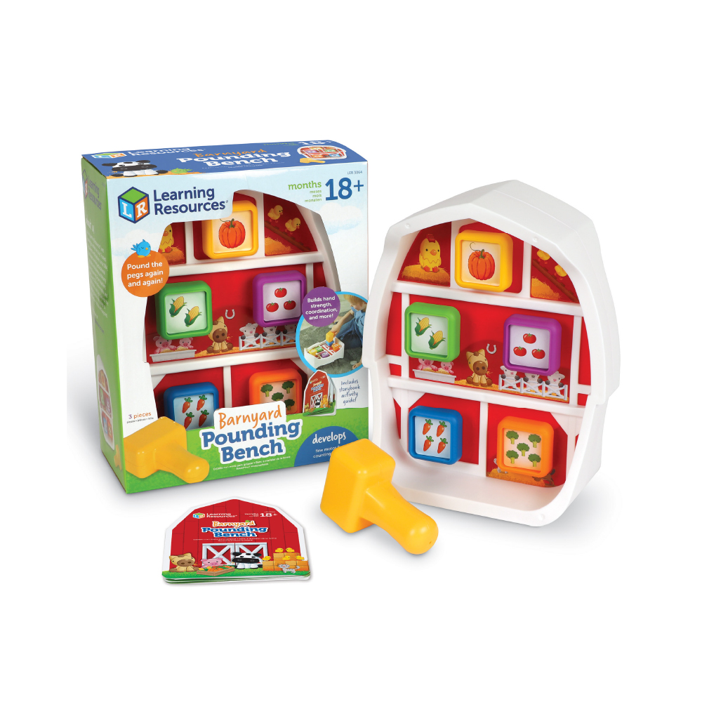 SKU H2M-97438 Product Title Barnyard Pounding Bench Brand Name Learning Resources UPC 765023030648 Piece Count 0 Min Target Age 1.5 Max Target Age 3 TargetGradeMax Pre-K TargetGradeMin Toddler ProductCategoryProductLine Other/Miscellaneous ProductCategoryProductType Educational Toy ProductCategorySubject Preschool Country of Origin CHN Unit Height 9.8 Unit Length 8 Unit Weight 1.23 Unit Width 3.82 CA prop 65 No Includes Remote No Marble Warning No MSRP 17.99 Small Ball Warning No Small Parts Warning No