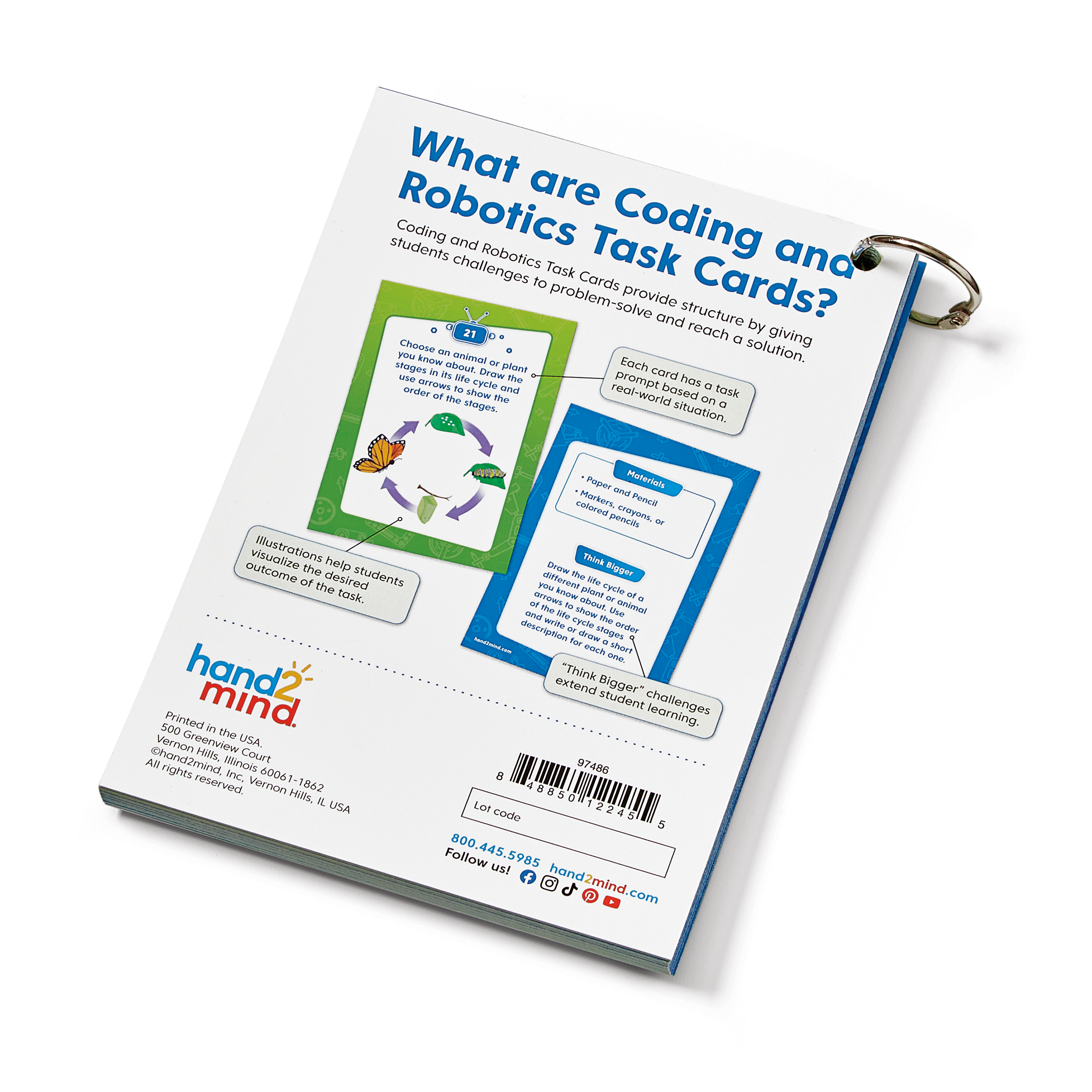 SKU H2M-97486 Product Title Coding and Robotics Task Cards, Beginner Brand Name hand2mind UPC 848850122455 Piece Count 0 Min Target Age 5 Max Target Age 7 TargetGradeMax Second Grade TargetGradeMin Kindergarten ProductCategoryProductLine Coding & Robotics ProductCategoryProductType Print ProductCategorySubject Science/STEM Country of Origin USA Unit Height 7 Unit Length 0.4 Unit Weight 0.55 Unit Width 5 CA prop 65 No Case Height 10.7 Case Length 11.3 Case Quantity 50 Case Weight 25.05 CPQ 0.64 Includes Remote No Marble Warning No MSRP 29.99 Small Ball Warning No Small Parts Warning Yes