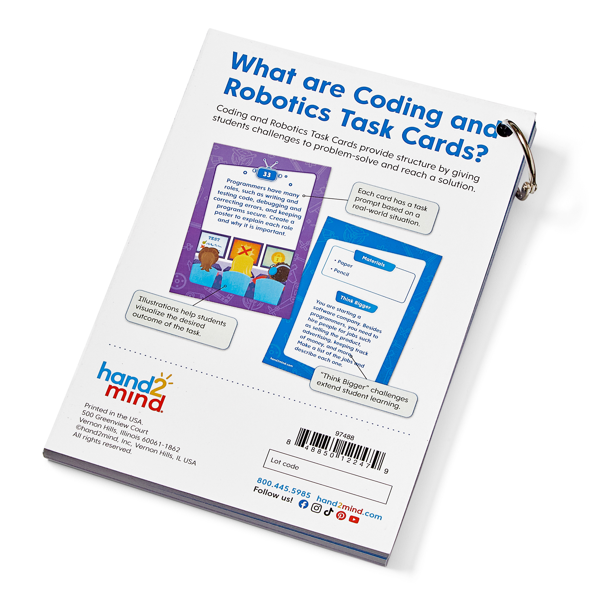 SKU H2M-97488 Product Title Coding and Robotics Task Cards, Intermediate Brand Name hand2mind UPC 848850122479 Piece Count 0 Min Target Age 8 Max Target Age 10 TargetGradeMax Fifth Grade TargetGradeMin Third Grade ProductCategoryProductLine Coding & Robotics ProductCategoryProductType Print ProductCategorySubject Science/STEM Country of Origin USA Unit Height 7 Unit Length 0.4 Unit Weight 0.55 Unit Width 5 CA prop 65 No Case Height 10.7 Case Length 11.3 Case Quantity 53 Case Weight 27.5 CPQ 0.63 Includes Remote No Marble Warning No MSRP 29.99 Small Ball Warning No Small Parts Warning Yes