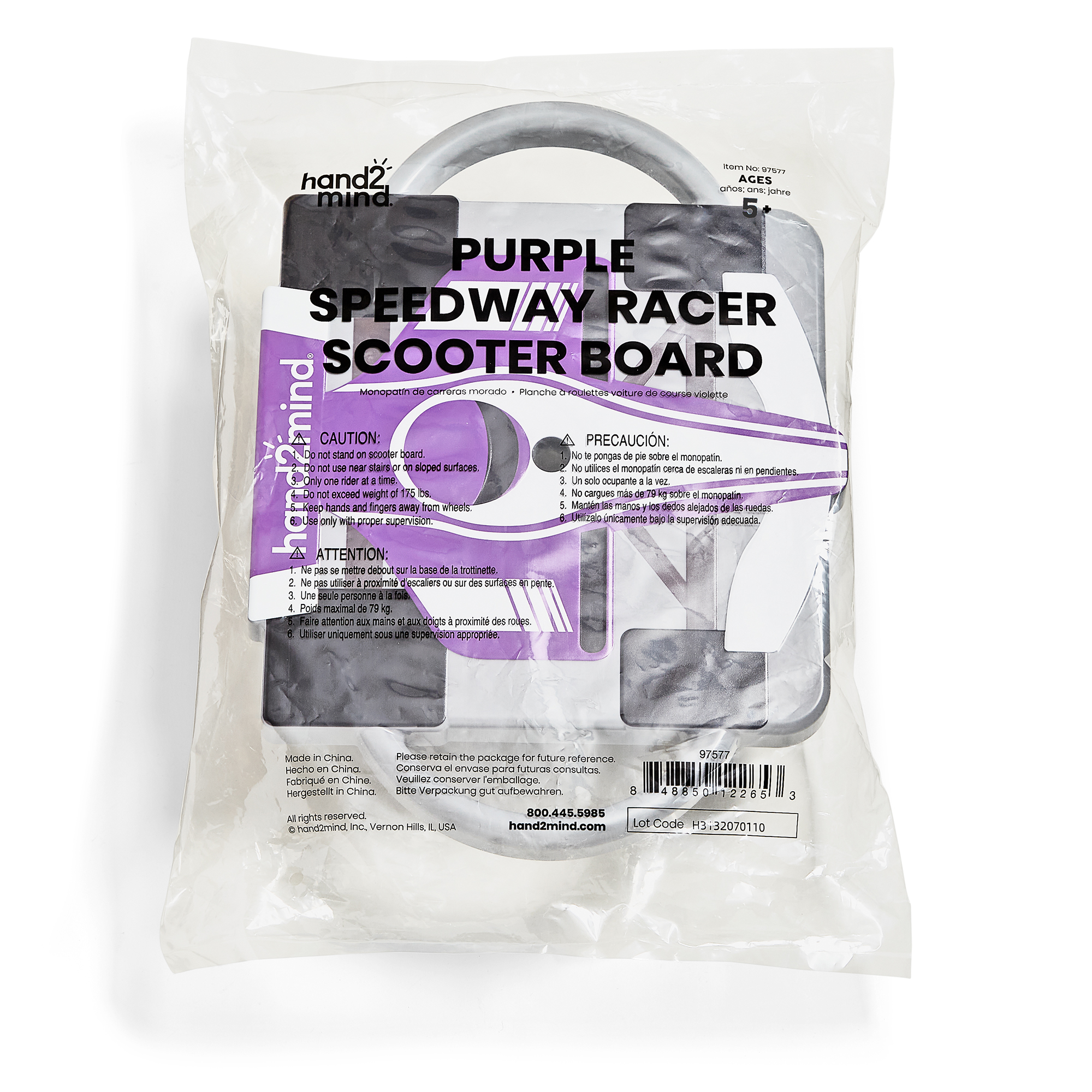 SKU H2M-97577 Product Title Speedway Racer Scooter Board, Purple Brand Name hand2mind UPC 848850122653 Piece Count 1 Min Target Age 5 Max Target Age 8 TargetGradeMax Third Grade TargetGradeMin Kindergarten ProductCategoryProductLine Scooters ProductCategoryProductType Classroom Supplies ProductCategorySubject Physical Education Port of Exit CNFOC Country of Origin IND Unit Height 4 Unit Length 16.45 Unit Weight 2.15 Unit Width 10.4 CA prop 65 No Case Height 17.6 Case Length 16.7 Case Quantity 4 Case Weight 10.75 CPQ 1.84 Includes Remote No Marble Warning No MSRP 29.99 Small Ball Warning No Small Parts Warning No