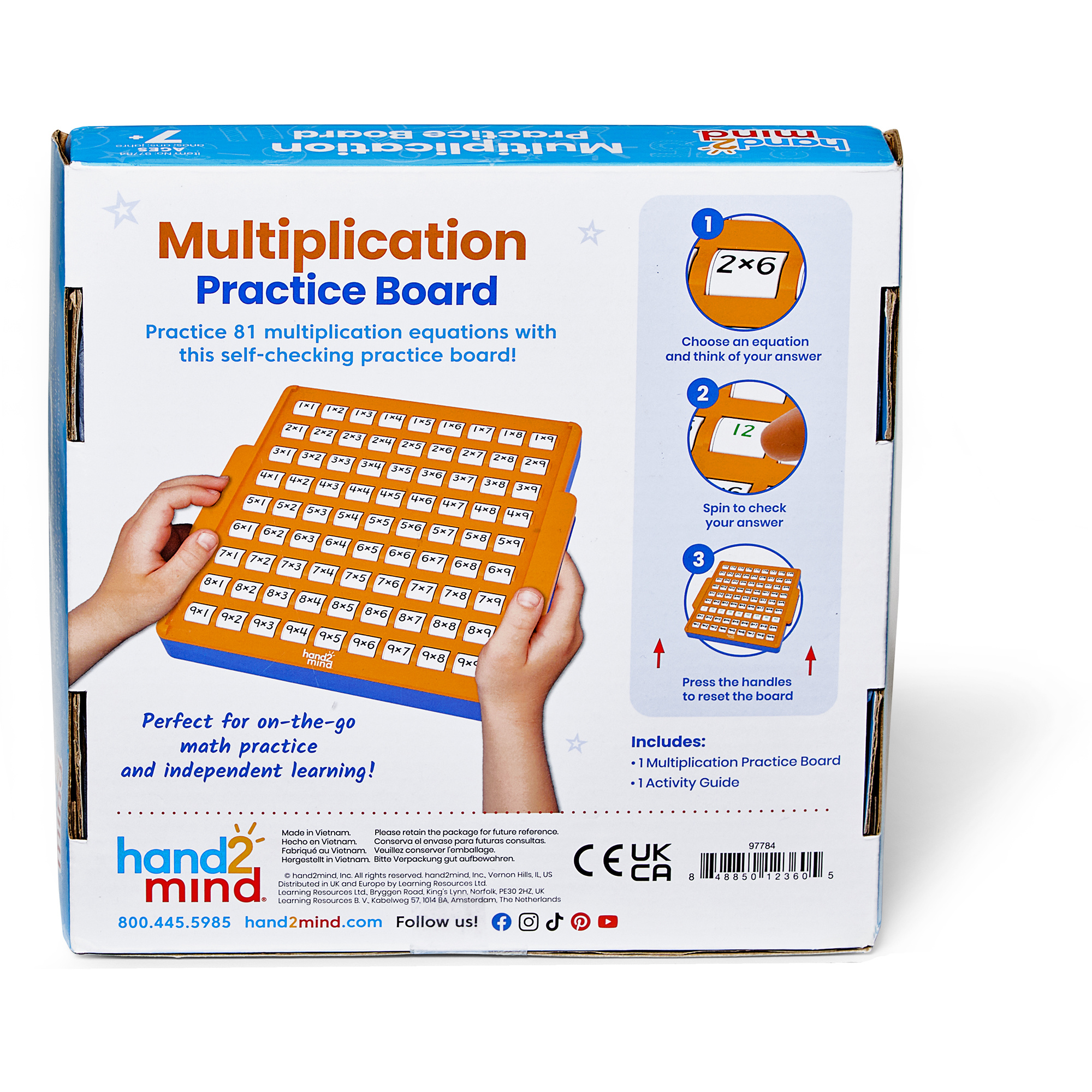 SKU H2M-97784 Product Title Multiplication Practice Board Brand Name hand2mind UPC 848850123605 Piece Count 1 Min Target Age 7 Max Target Age 10 TargetGradeMax Fifth Grade TargetGradeMin Second Grade ProductCategoryProductLine Practice Boards ProductCategoryProductType Educational Toy ProductCategorySubject Math Port of Exit VNHPH Country of Origin VNM Unit Height 1 Unit Length 5 Unit Weight 0.2 Unit Width 5 CA prop 65 No Case Height 7.78 Case Length 14.34 Case Quantity 12 Case Weight 29.05 CPQ 0.91 Includes Remote No Marble Warning No MSRP 21.99 Small Ball Warning No Small Parts Warning Yes