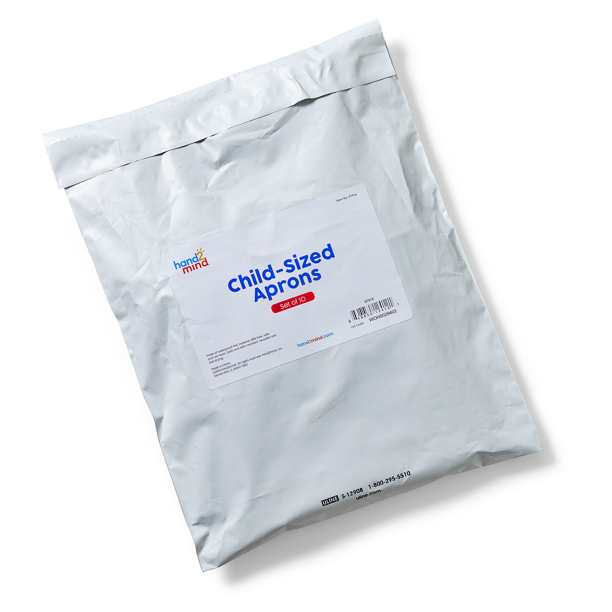 SKU H2M-97916 Product Title Aprons, Child Size, Plastic, 19"x15", PK/10 Brand Name hand2mind UPC 848850124121 Piece Count 10 Min Target Age 3 Max Target Age 6 TargetGradeMax First Grade TargetGradeMin Pre-K ProductCategoryProductLine Other/Miscellaneous ProductCategoryProductType Classroom Supplies ProductCategorySubject PPE Country of Origin USA Unit Height 1.5 Unit Length 10 Unit Weight 0.66 Unit Width 13 CA prop 65 No Case Height 12 Case Length 22 Case Quantity 20 Case Weight 13.32 CPQ 2.14 Includes Remote No Marble Warning No MSRP 19.99 Small Ball Warning No Small Parts Warning No