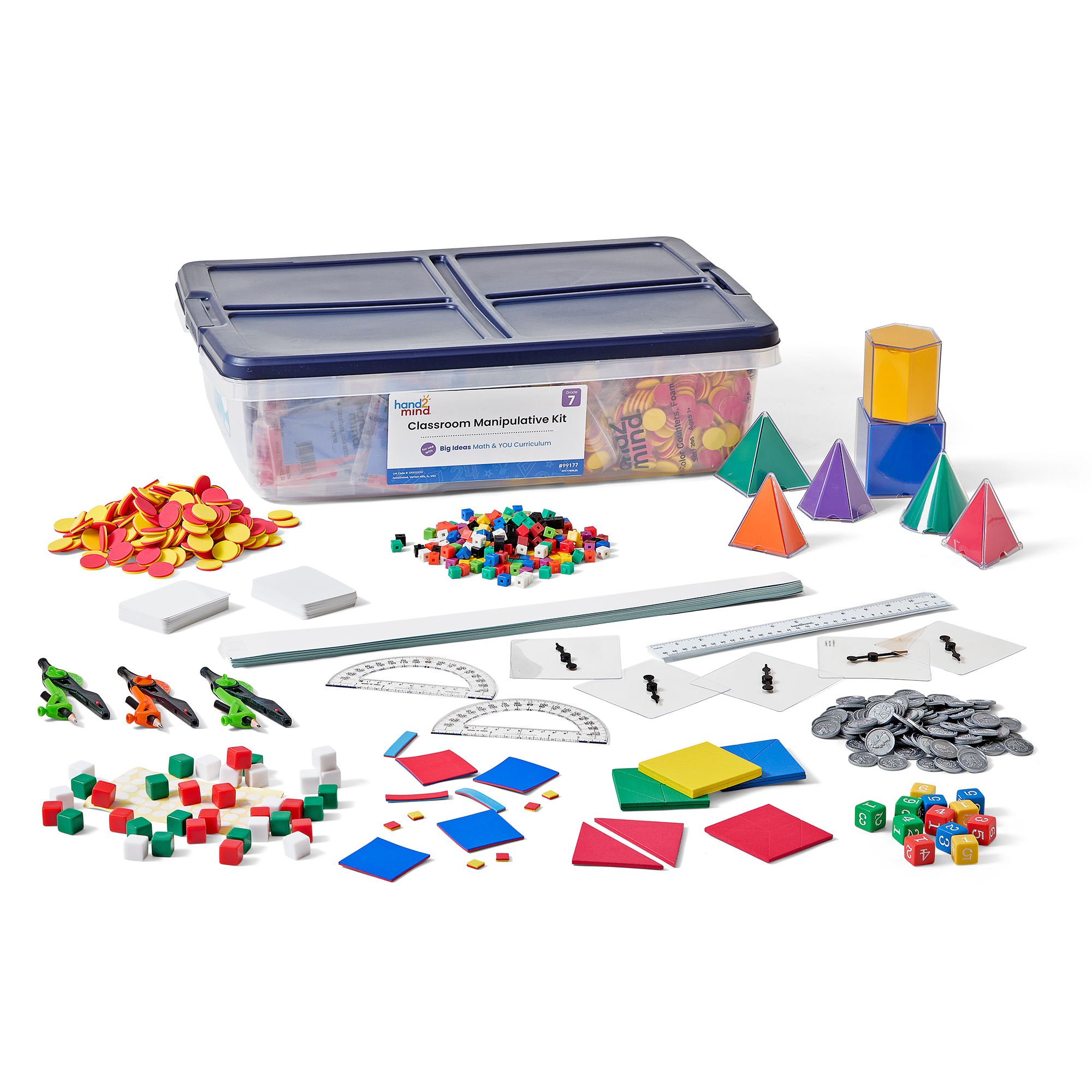 SKU H2M-99177 Product Title BI M&Y MANIP KIT GR 7-1BX Brand Name hand2mind Piece Count 0 Min Target Age 12 Max Target Age 12.9 TargetGradeMax Seventh Grade TargetGradeMin Seventh Grade ProductCategoryProductLine BIG IDEAS MATH & YOU ProductCategoryProductType Manipulative - Bulk or Classroom ProductCategorySubject Math Country of Origin USA Unit Height 7.75 Unit Length 24.5 Unit Weight 14 Unit Width 16.38 CA prop 65 No Case Quantity 1 Includes Remote No Marble Warning No MSRP 254.99 Small Ball Warning No Small Parts Warning No