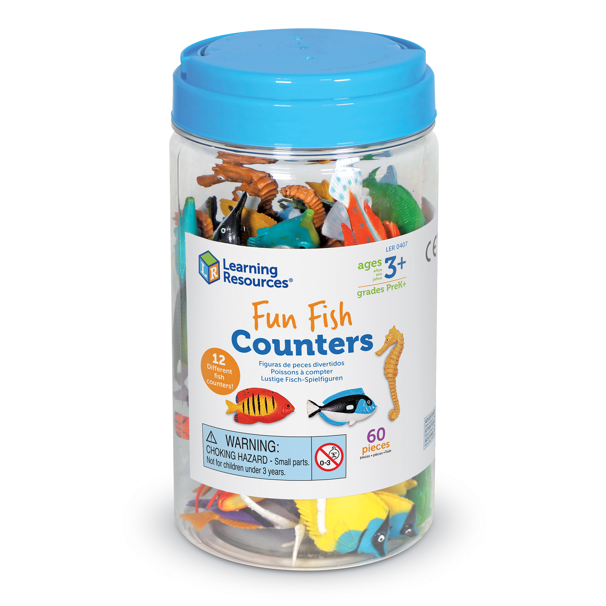 SKU LER0407 Product Title FISH COUNTERS (SET/60) Brand Name Learning Resources UPC 765023016437 Piece Count 60 Min Target Age 3 Max Target Age 7 TargetGradeMax Second Grade TargetGradeMin Toddler ProductCategorySubject Math Port of Exit INMAA Country of Origin IND Unit Height 3.5 Unit Length 6.25 Unit Weight 1.12 Unit Width 6.25 Long Description - DC Teach counting, sorting, and classification, even as your child learns about sea creatures. This set of 60 beautifully detailed fish includes 12 different species. These fish make great party favors or classroom rewards. Counters can be combined with other counter sets for endless playing possibilities! Ideal for ages 3+ CA prop 65 No Case Height 14.7 Case Length 18.4 Case Quantity 24 Case Weight 27.92 CPQ 1.93 Includes Remote No Marble Warning No MSRP 35.99 Small Ball Warning No Small Parts Warning Yes