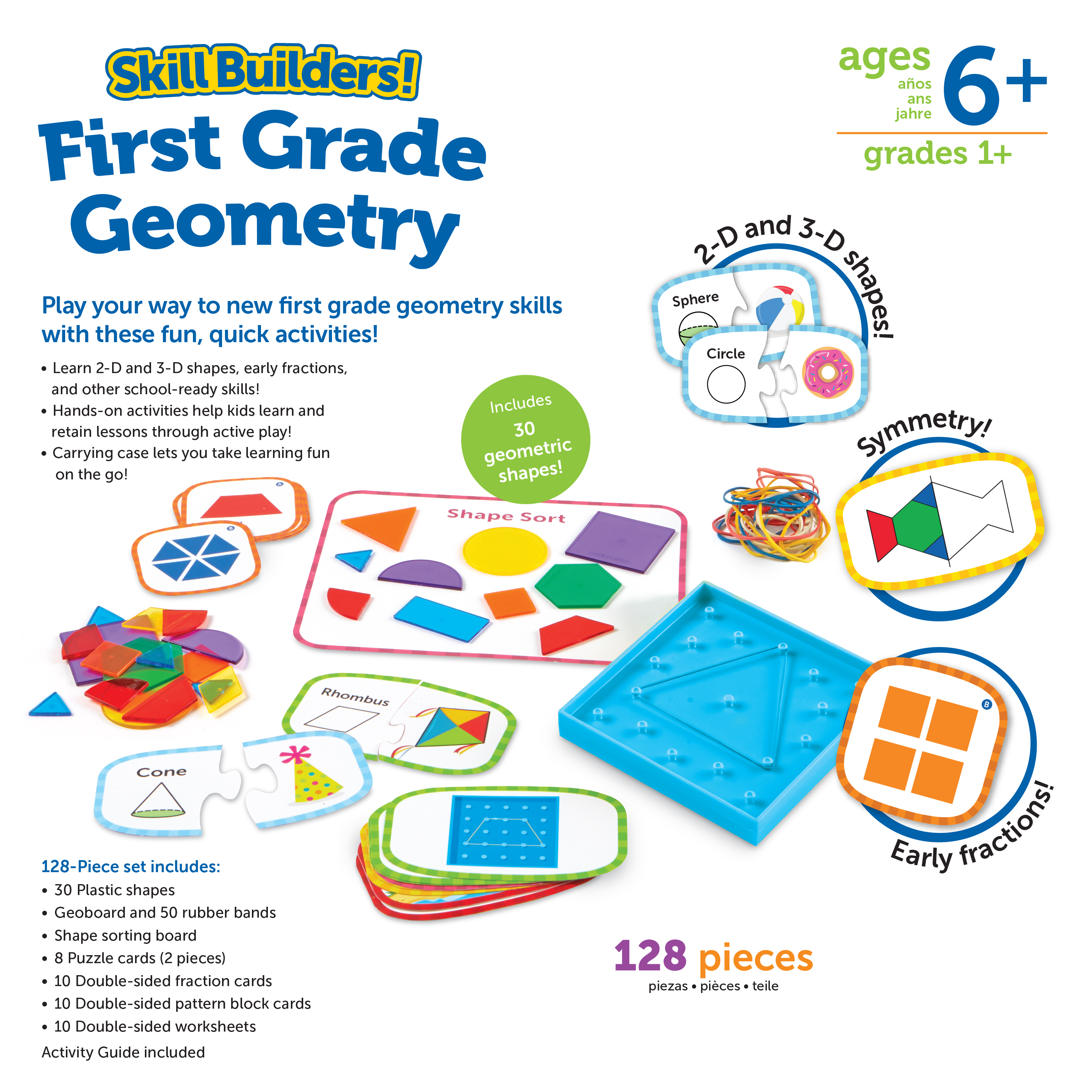 SKU LER1239 Product Title Skill Builders! First Grade Geometry Activity Set Brand Name Learning Resources UPC 765023012392 Piece Count 120 Min Target Age 6 Max Target Age 6 TargetGradeMax First Grade TargetGradeMin First Grade ProductCategoryProductLine Skill Builders! ProductCategorySubject Workbooks & Kits Port of Exit CNYTN Country of Origin CHN Unit Height 2.5 Unit Length 10 Unit Weight 1 Unit Width 8.1 CA prop 65 No Case Height 9.5 Case Length 11.1 Case Quantity 4 Case Weight 4.75 CPQ 0.67 Includes Remote No Marble Warning No MSRP 20.99 Small Ball Warning No Small Parts Warning Yes