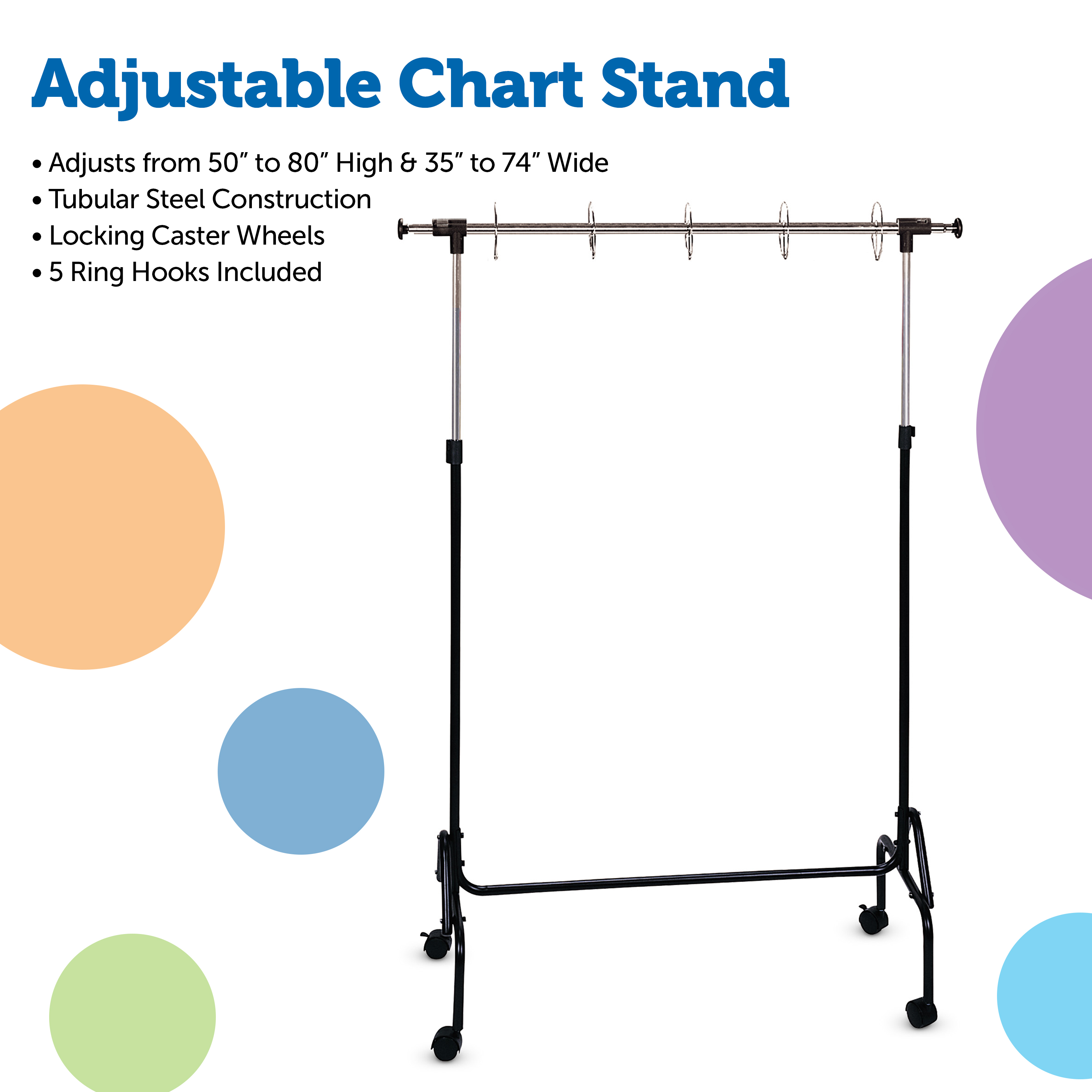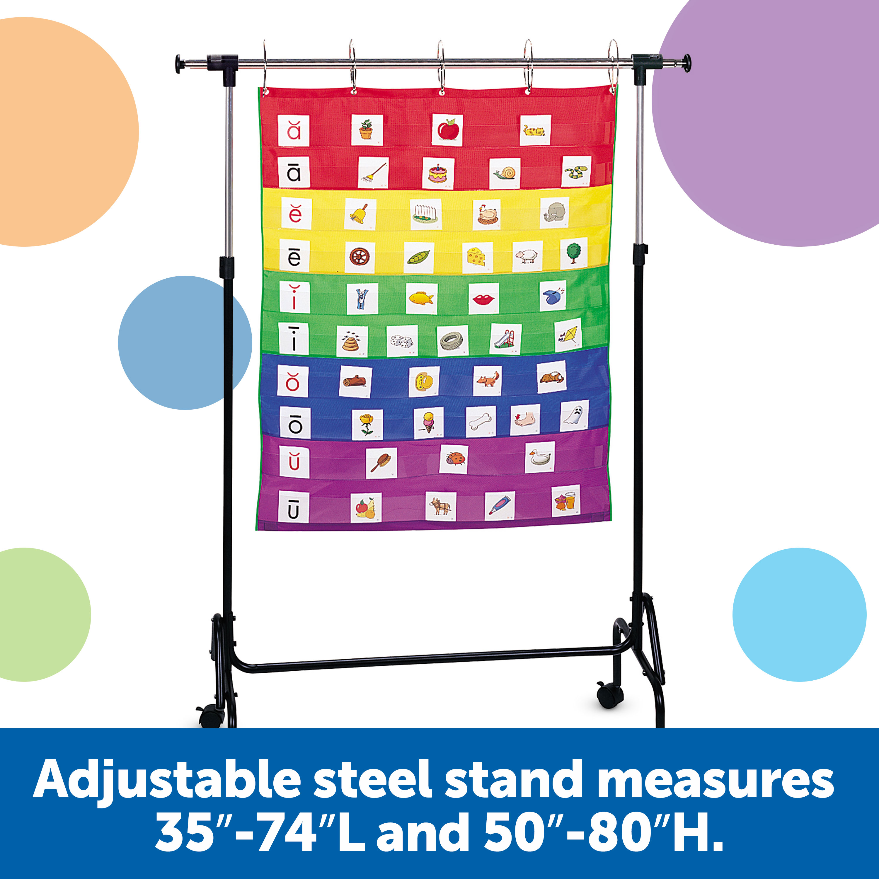 SKU LER2196 Product Title CHART STAND ADJUSTABLE Brand Name Learning Resources UPC 765023021967 Piece Count 0 Min Target Age 0 Max Target Age 0 ProductCategoryProductLine Pocket Charts ProductCategorySubject Classroom Resources Port of Exit VNSGN Country of Origin VNM Unit Height 5.2 Unit Length 15 Unit Weight 12.15 Unit Width 44.6 Long Description - DC This versatile steel chart stand adjusts to hold both pocket and flip charts. Features sturdy locking casters and 5-ring style hooks for hanging. The height adjusts from 50" to 80" and the length from 35" to 74" for maximum display space. Easy to assemble. CA prop 65 No Case Height 5.2 Case Length 15 Case Quantity 1 Case Weight 12.15 CPQ 2.01 Includes Remote No Marble Warning No MSRP 109.99 Small Ball Warning No Small Parts Warning No