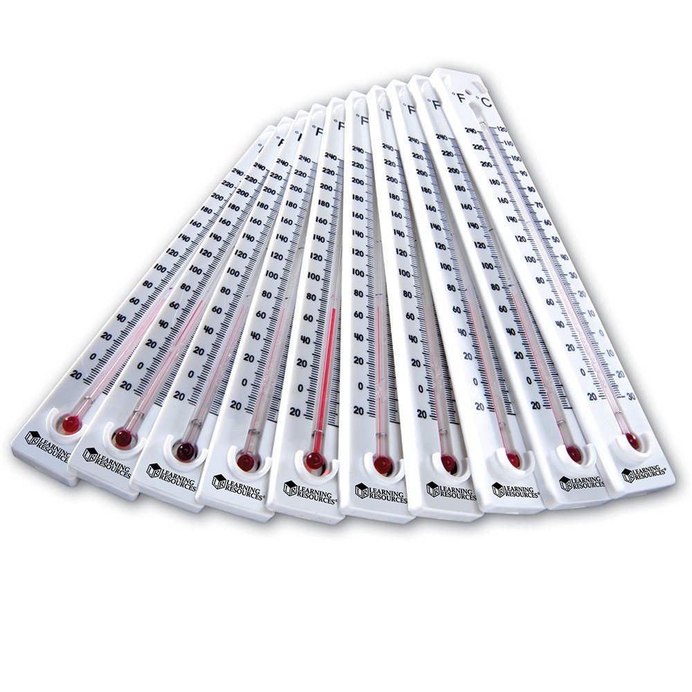 SKU LER2415 Product Title BOILING POINT THERMOMETERS Brand Name Learning Resources UPC 765023024159 Piece Count 0 Min Target Age 8 Max Target Age 12 TargetGradeMax Seventh Grade TargetGradeMin Third Grade ProductCategorySubject Science/STEM Port of Exit CNYTN Country of Origin CHN Unit Height 1.2 Unit Length 7.3 Unit Weight 0.35 Unit Width 4.1 Long Description - DC Students will learn how to observe changes in temperature and read a thermometer. These 10 non-toxic thermometers are made of plastic and mercury-free. Measure from -30 Degrees C to 120 Degrees C and from -22 Degrees F to 240 Degrees F. CA prop 65 Yes Case Height 13.4 Case Length 15.6 Case Quantity 60 Case Weight 22.47 CPQ 1.68 Includes Remote No Marble Warning No MSRP 24.99 Small Ball Warning No Small Parts Warning No