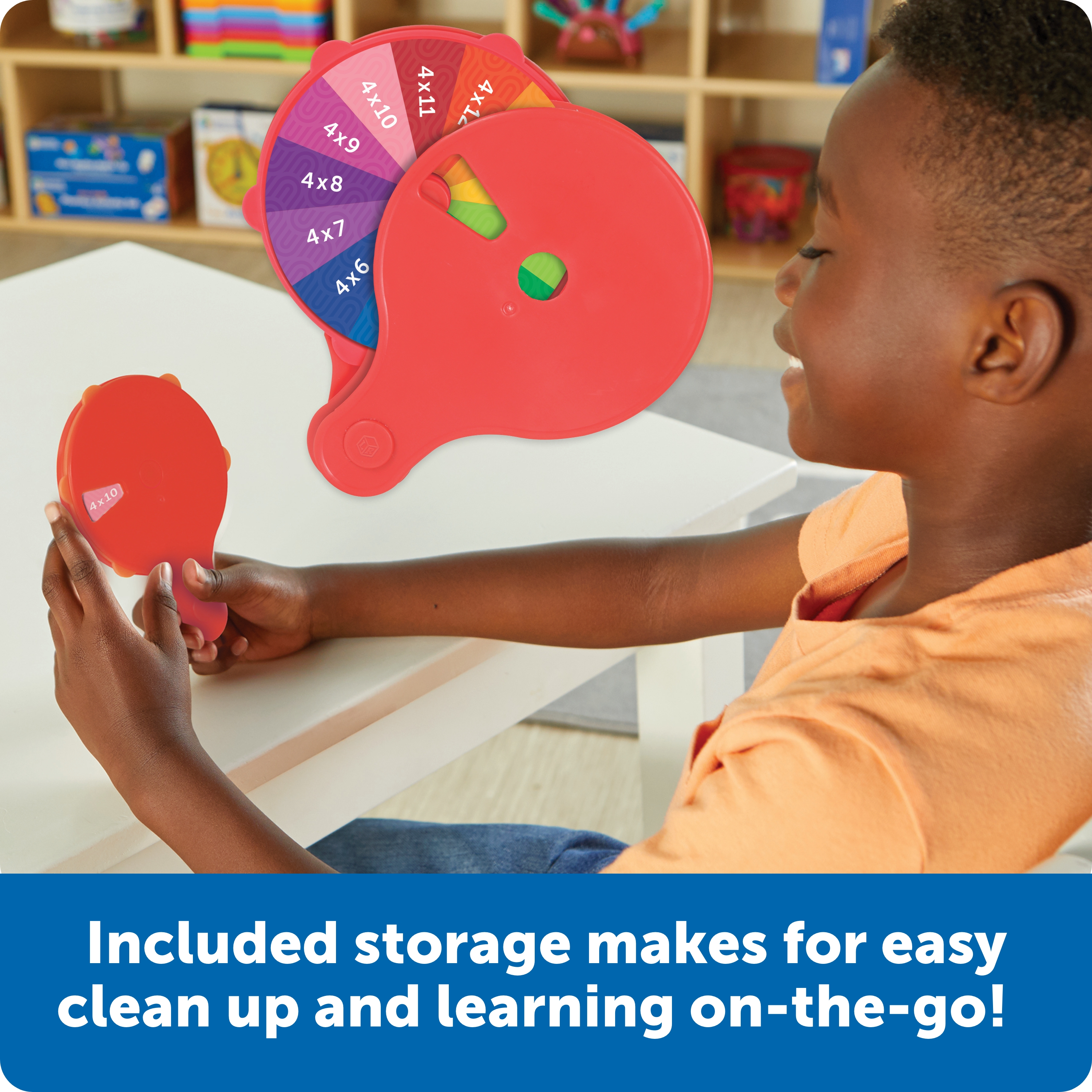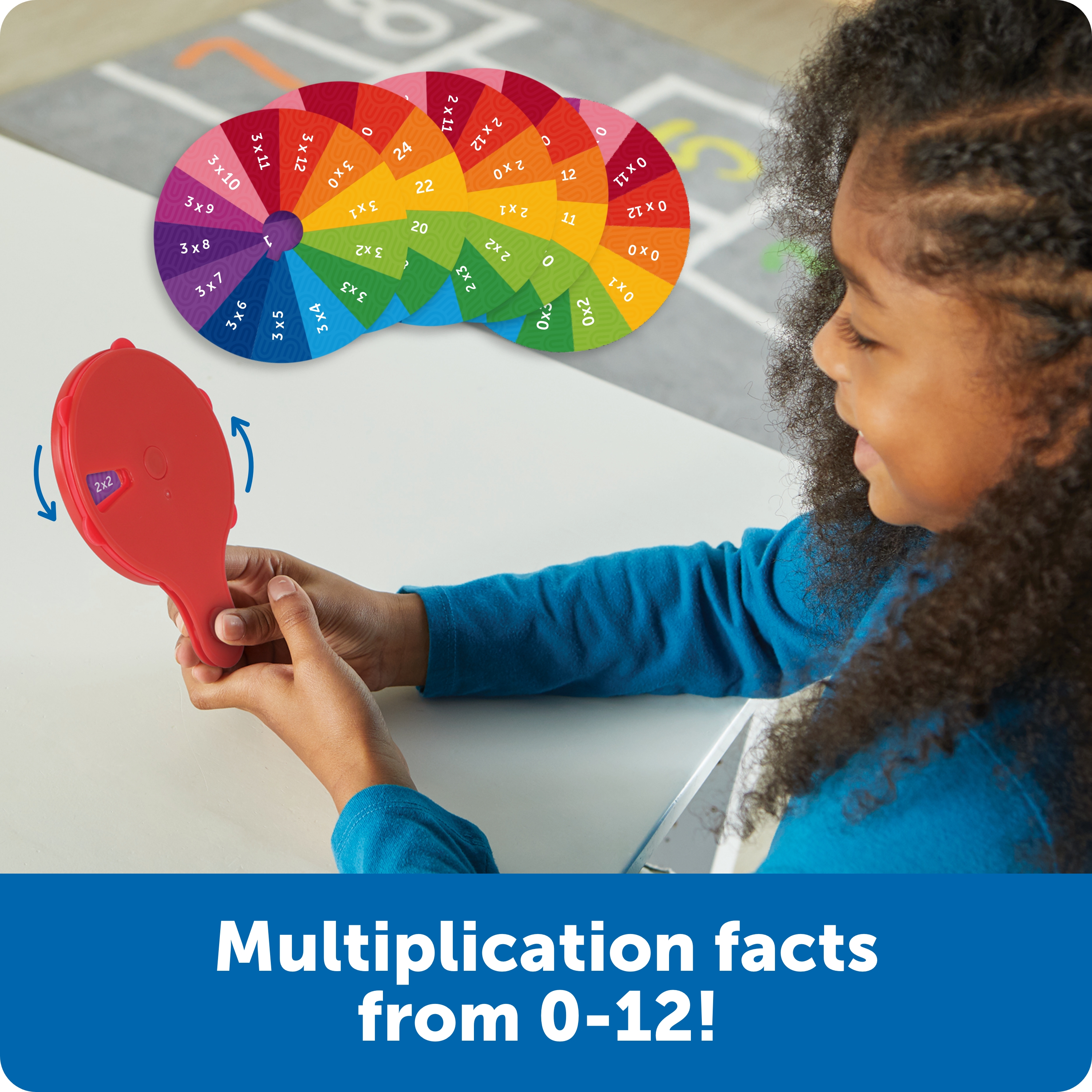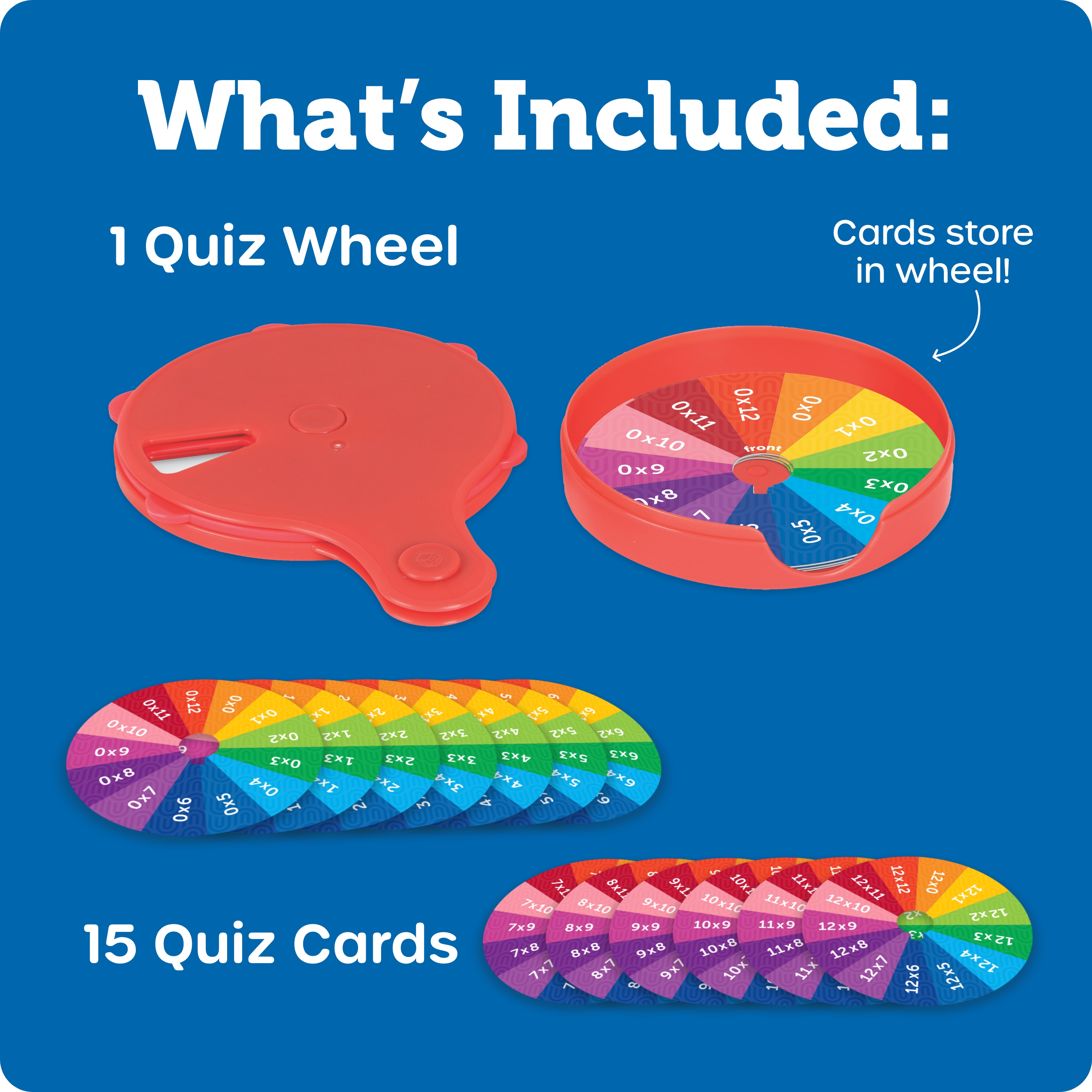 SKU LER3792 Product Title Skill Builders! Multiplication Quiz Wheel Brand Name Learning Resources UPC 765023037920 Piece Count 16 Min Target Age 3 Max Target Age 10 TargetGradeMax Fifth Grade TargetGradeMin Pre-K ProductCategoryProductLine Skill Builders! ProductCategorySubject Workbooks & Kits Port of Exit VNHPH Country of Origin VNM Unit Height 1.2 Unit Length 7.6 Unit Weight 0.35 Unit Width 8.9 Short Description - DC Take new math skills for a spin with this handheld learning wheels! Kids can pop in a card, spin to an equation, then flip to check the answer. This set includes 13 cards—with one for facts 0-12, it's an all-in-one way to practice the multiplication table. Cards store on the back of the wheel for easy cleanup and on-the-go learning. Age 6+ | Grade 1+ Long Description - DC Take new math skills for a spin with this handheld learning wheels! Kids can pop in a card, spin to an equation, then flip to check the answer. This set includes 13 cards—with one for facts 0-12, it's an all-in-one way to practice the multiplication table. Cards store on the back of the wheel for easy cleanup and on-the-go learning. Age 6+ | Grade 1+ CA prop 65 No Case Height 10.4 Case Length 8.4 Case Quantity 6 Case Weight 2.65 CPQ 0.42 Includes Remote No Marble Warning No MSRP 9.99 Small Ball Warning No Small Parts Warning No