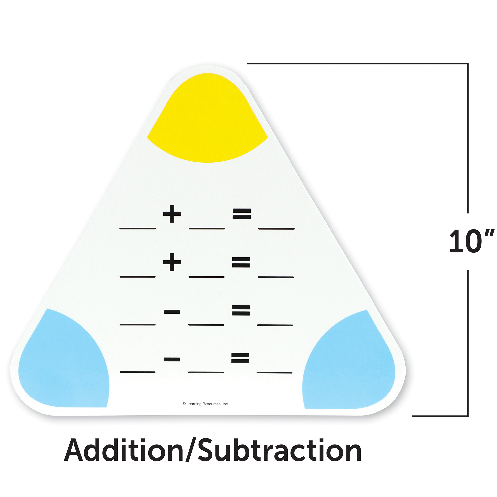 SKU LER3799 Product Title WRITE & WIPE FACT FAMILY BOARDS Brand Name Learning Resources UPC 765023037999 Piece Count 6 Min Target Age 6 Max Target Age 10 TargetGradeMax Fifth Grade TargetGradeMin First Grade ProductCategorySubject Classroom Resources Port of Exit CNYTN Country of Origin CHN Unit Height 0.6 Unit Length 11 Unit Weight 0.7 Unit Width 8.5 Long Description - DC Familiar triangle format reinforces fact families and number fact fluency. Double-sided, write & wipe boards focus on addition/subtraction on one side, multiplication/division on reverse. Support algebraic skills such as equations, the commutative property, and problem solving. The Learning Resources Write & Wipe Fact Family Boards - Set of 5 Features: 5 Double-sided Triangle Boards Write & Wipe Surfaces Size of 10"H each CA prop 65 No Case Height 10.6 Case Length 15.1 Case Quantity 24 Case Weight 19.15 CPQ 1.14 Includes Remote No Marble Warning No MSRP 15.99 Small Ball Warning No Small Parts Warning No