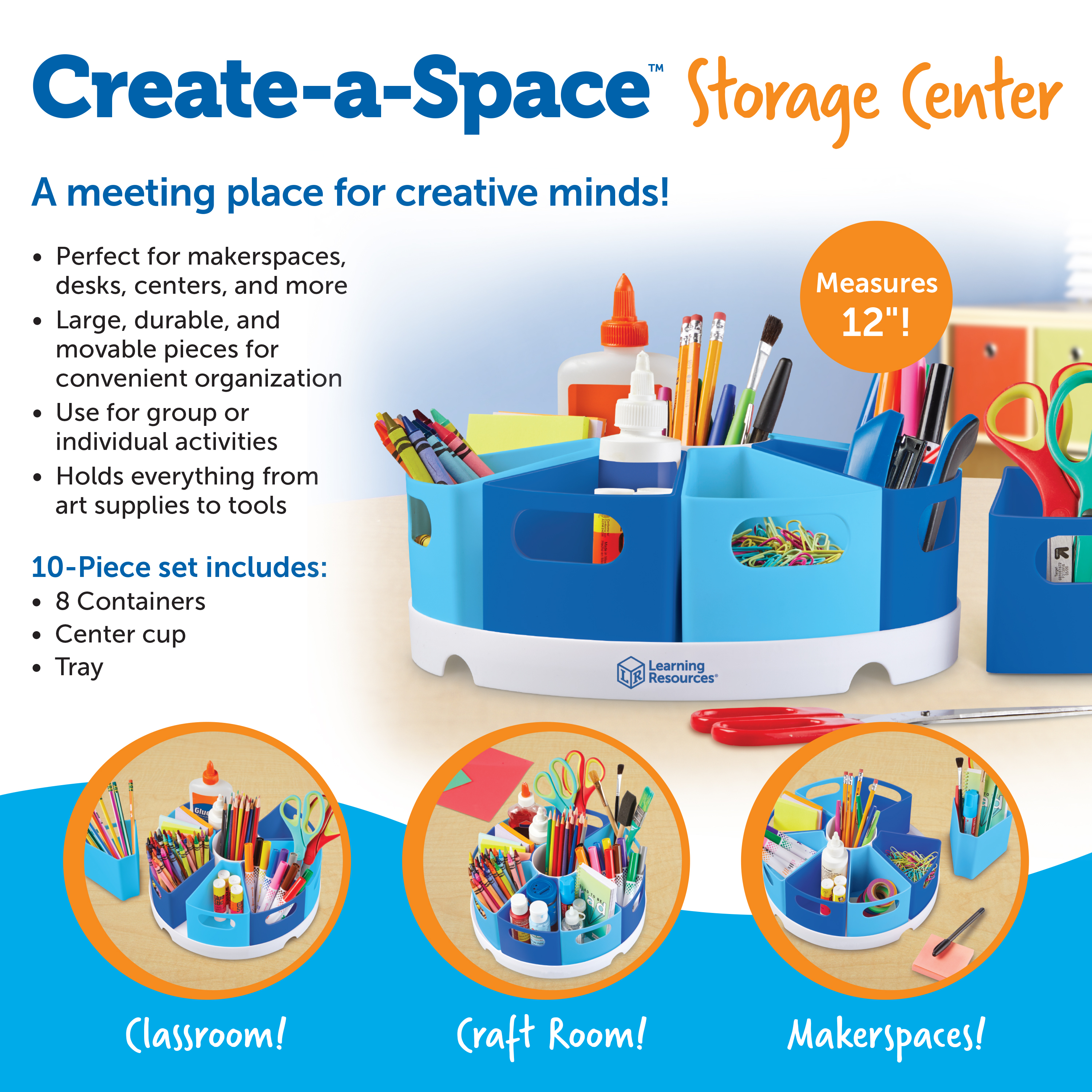 SKU LER3806-B Product Title CREATE-A-SPACE STORAGE CENTER BLUE Brand Name Learning Resources UPC 765023938067 Piece Count 10 Min Target Age 3 Max Target Age 99 TargetGradeMax No Grade TargetGradeMin Toddler ProductCategoryProductLine Create-a-Space ProductCategorySubject Classroom Resources Port of Exit VNHPH Country of Origin VNM Unit Height 4.7 Unit Length 12.1 Unit Weight 2 Unit Width 12.1 CA prop 65 No Case Height 19.7 Case Length 12.8 Case Quantity 4 Case Weight 9.4 CPQ 1.84 Includes Remote No Marble Warning No MSRP 22.99 Small Ball Warning No Small Parts Warning No