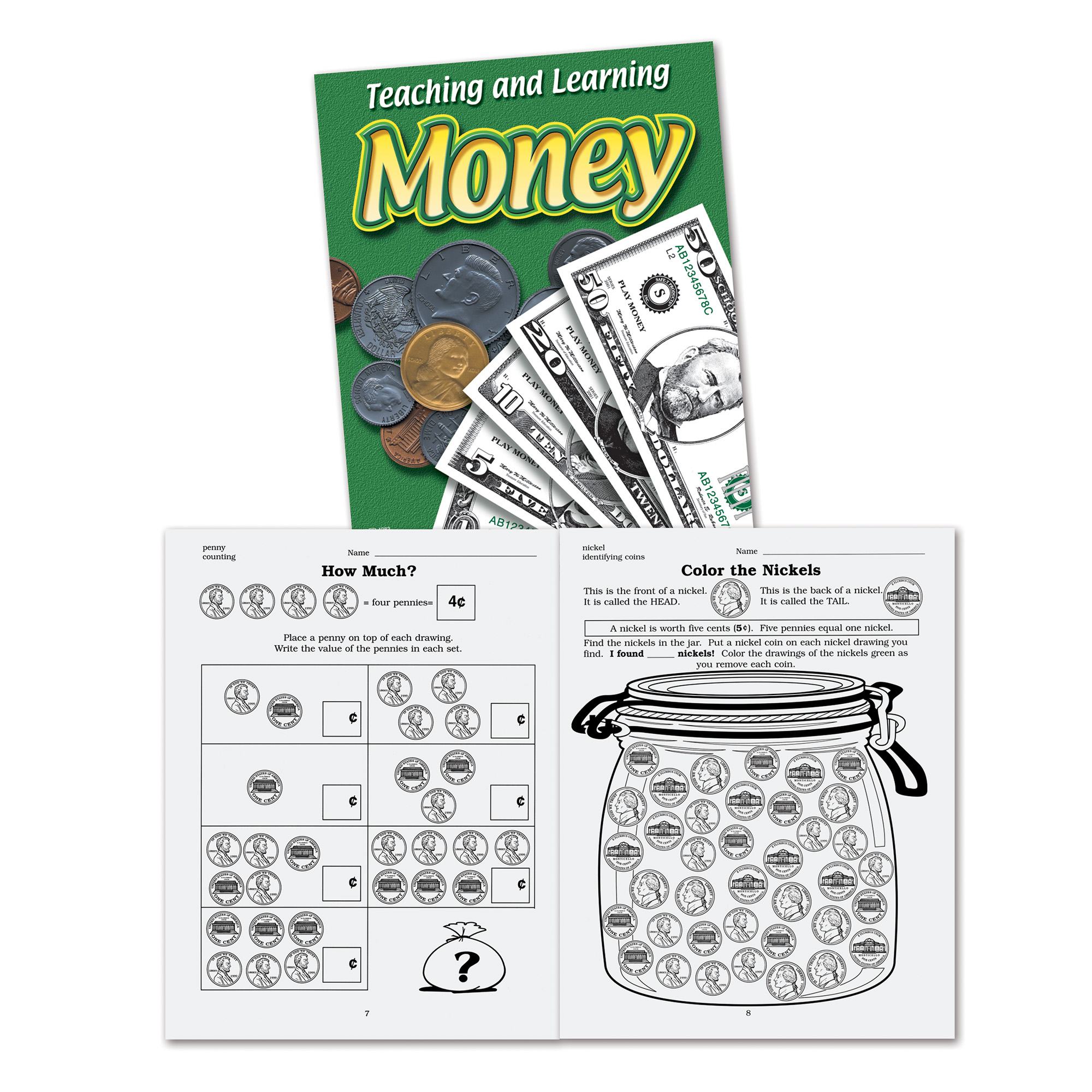 SKU LER4283 Product Title TEACHING AND LEARNING MONEY Brand Name Learning Resources Piece Count 1 Min Target Age 5 Max Target Age 9 TargetGradeMax Fourth Grade TargetGradeMin Kindergarten ProductCategoryProductLine Currency ProductCategorySubject Math Port of Exit CNYTN Country of Origin CHN Unit Height 0.2 Unit Length 10.8 Unit Weight 0.38 Unit Width 8.3 Long Description - DC This engaging workbook provides activities in making change, identifying money and learning coin equivalencies. Great for students in Kindergarten through Grade 4. The book is peppered with numerous riddles about coins to keep kids laughing all the way to the bank! CA prop 65 No Case Height 11.8 Case Length 18 Case Quantity 100 Case Weight 40.35 CPQ 1.09 Includes Remote No Marble Warning No MSRP 12.99 Small Ball Warning No Small Parts Warning No