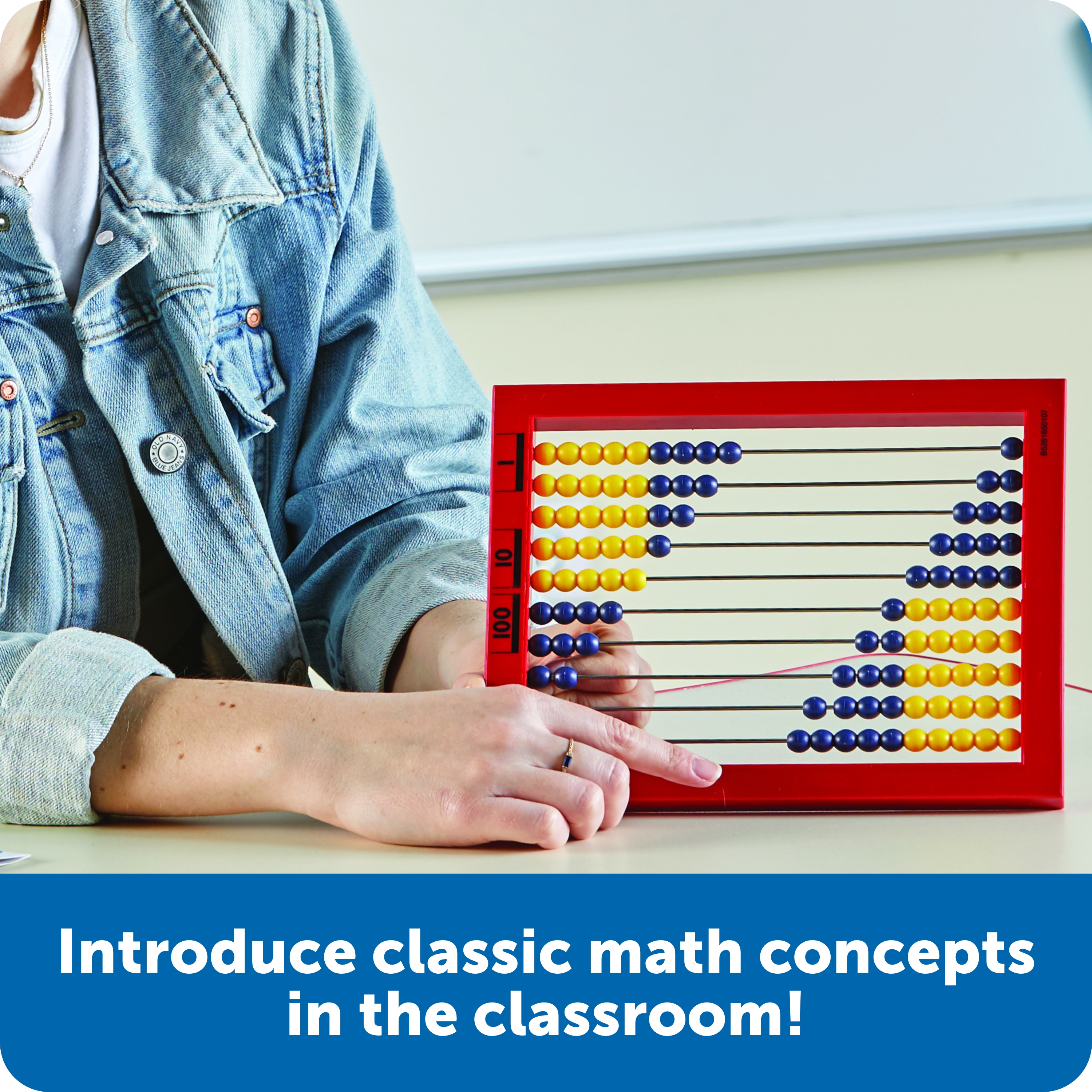 SKU LER4335 Product Title DESKTOP HORIZONTAL ABACUS Brand Name Learning Resources UPC 765023843354 Piece Count 0 Min Target Age 5 Max Target Age 9 TargetGradeMax Fourth Grade TargetGradeMin Kindergarten ProductCategorySubject Math Port of Exit CNYTN Country of Origin CHN Unit Height 0.8 Unit Length 7.6 Unit Weight 0.55 Unit Width 10.2 Long Description - DC Abacus activities offer students tactile counting practice and visual reinforcement of math facts. Includes 10 rows of 10 beads in 2 colors grouped in fives for ease of use. Helps children learn and reinforce abstract math concepts in a hands-on way. The Learning Resources 2-Color Desktop Abacus Features: 1 abacus that measures 8.5"L x .5"W x 9.5"H 10 rows of 10 beads in 2 colors grouped in 5s CA prop 65 No Case Height 11 Case Length 16.6 Case Quantity 40 Case Weight 23.55 CPQ 1.6 Includes Remote No Marble Warning No MSRP 13.99 Small Ball Warning No Small Parts Warning No