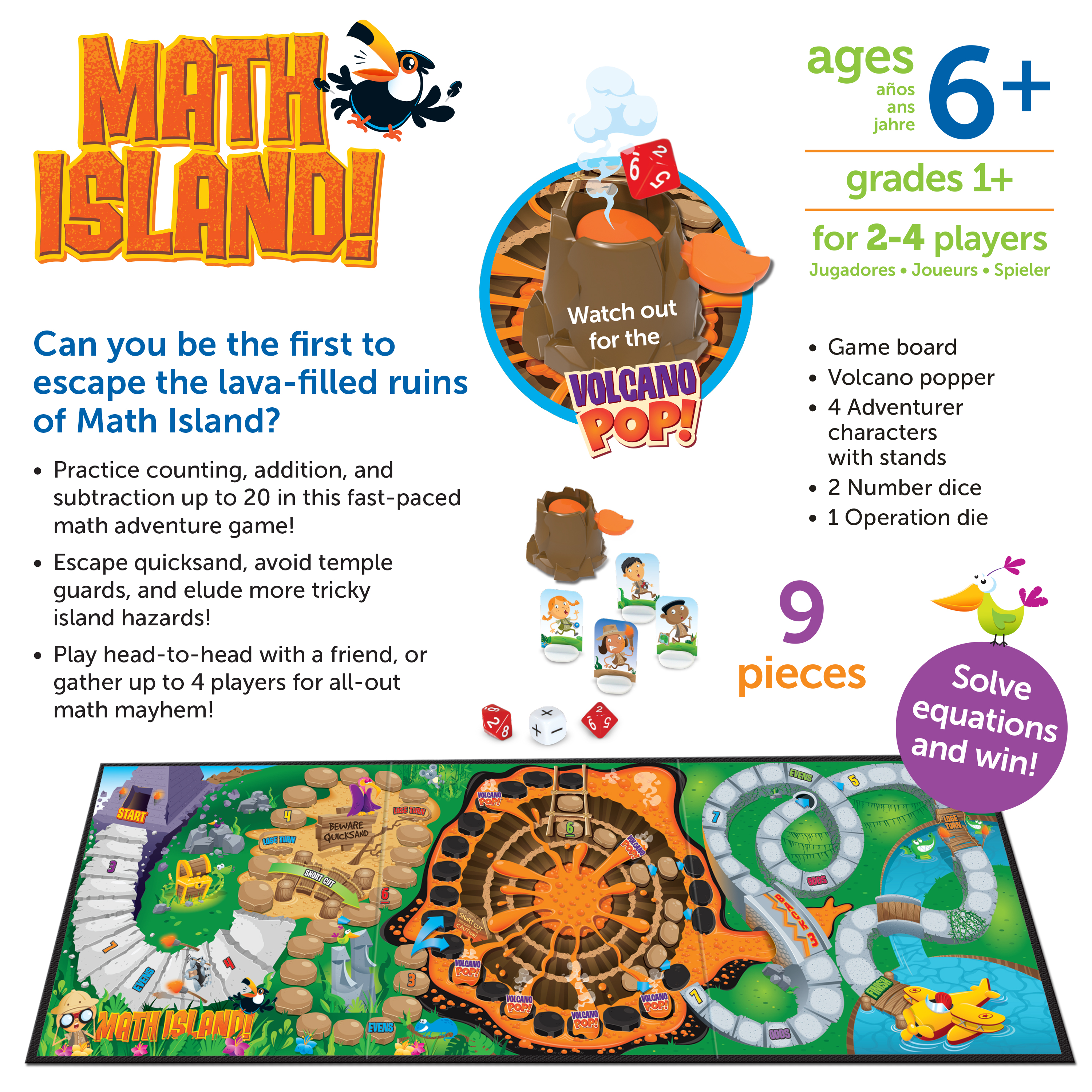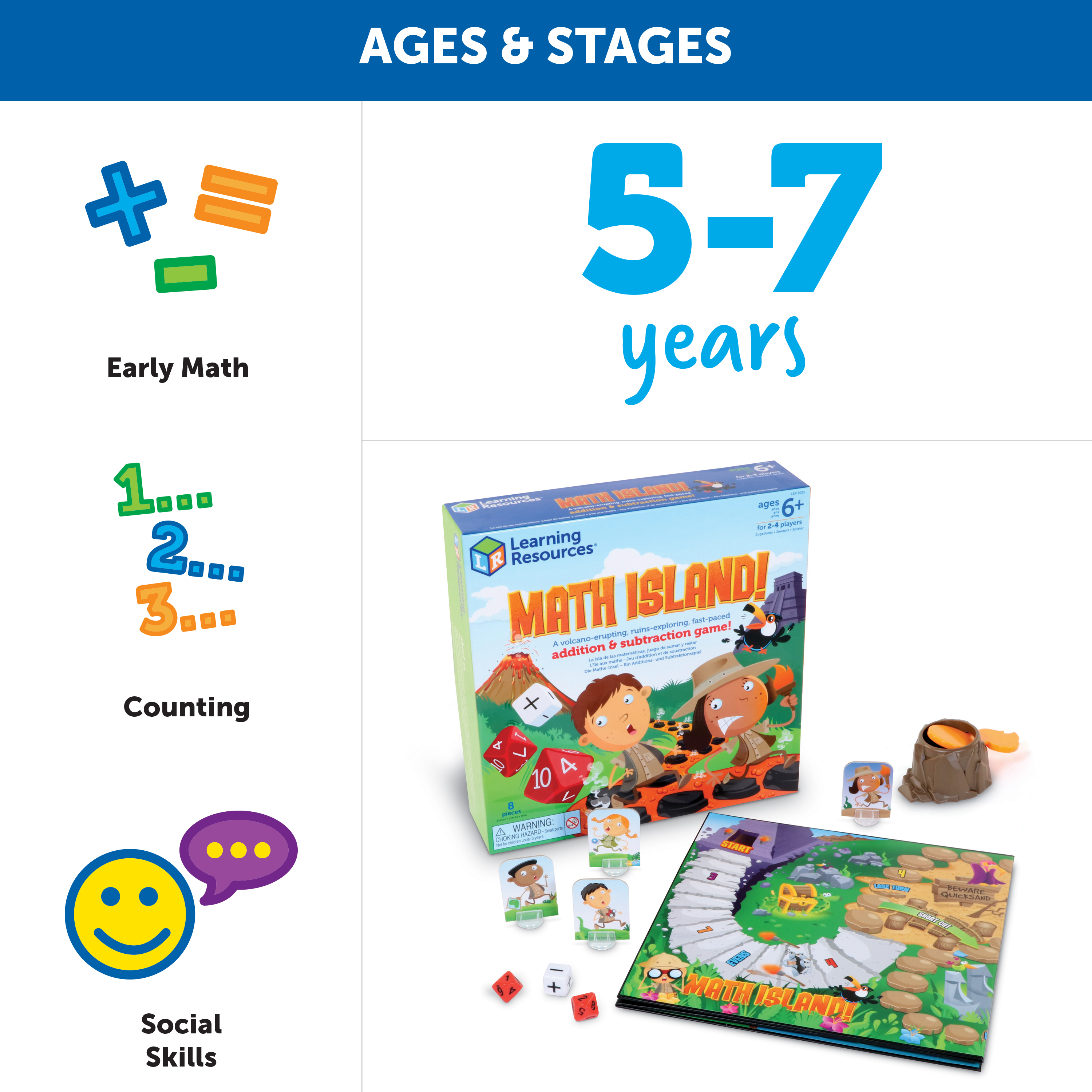 SKU LER5025 Product Title Math Island! Addition & Subtraction Game Brand Name Learning Resources UPC 765023050257 Piece Count 8 Min Target Age 5 Max Target Age 10 TargetGradeMax Fifth Grade TargetGradeMin Kindergarten ProductCategoryProductLine Math Games ProductCategorySubject Games Port of Exit VNHPH Country of Origin VNM Unit Height 2.6 Unit Length 10 Unit Weight 1.2 Unit Width 10 CA prop 65 No Case Height 11.2 Case Length 10.8 Case Quantity 4 Case Weight 5.65 CPQ 0.79 Includes Remote No Marble Warning No MSRP 21.99 Small Ball Warning No Small Parts Warning Yes