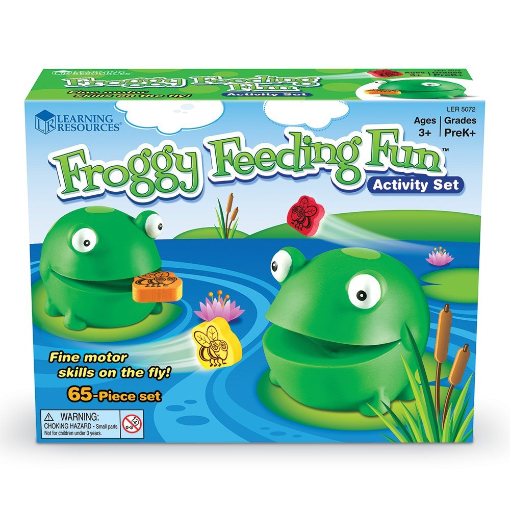 SKU LER5072 Product Title FROGGY FEEDING FUN (TM) Brand Name Learning Resources UPC 765023050721 Piece Count 65 Min Target Age 3 Max Target Age 7 TargetGradeMax Second Grade TargetGradeMin Toddler ProductCategoryProductLine Preschool Games ProductCategorySubject Games Port of Exit CNYTN Country of Origin CHN Unit Height 3.1 Unit Length 9 Unit Weight 0.55 Unit Width 7 Long Description - DC Strengthen fine motor muscles with a game. These frogs are hungry, so roll the dice to determine which flies to eat. Reinforces colors, numbers, counting and sorting. Includes 2 durable rubber frogs, 60 flies, 1 number cube, 1 color cube and activity guide. CA prop 65 No Case Height 10.1 Case Length 21.8 Case Quantity 18 Case Weight 11.6 CPQ 2.41 Includes Remote No Marble Warning No MSRP 31.99 Small Ball Warning No Small Parts Warning Yes