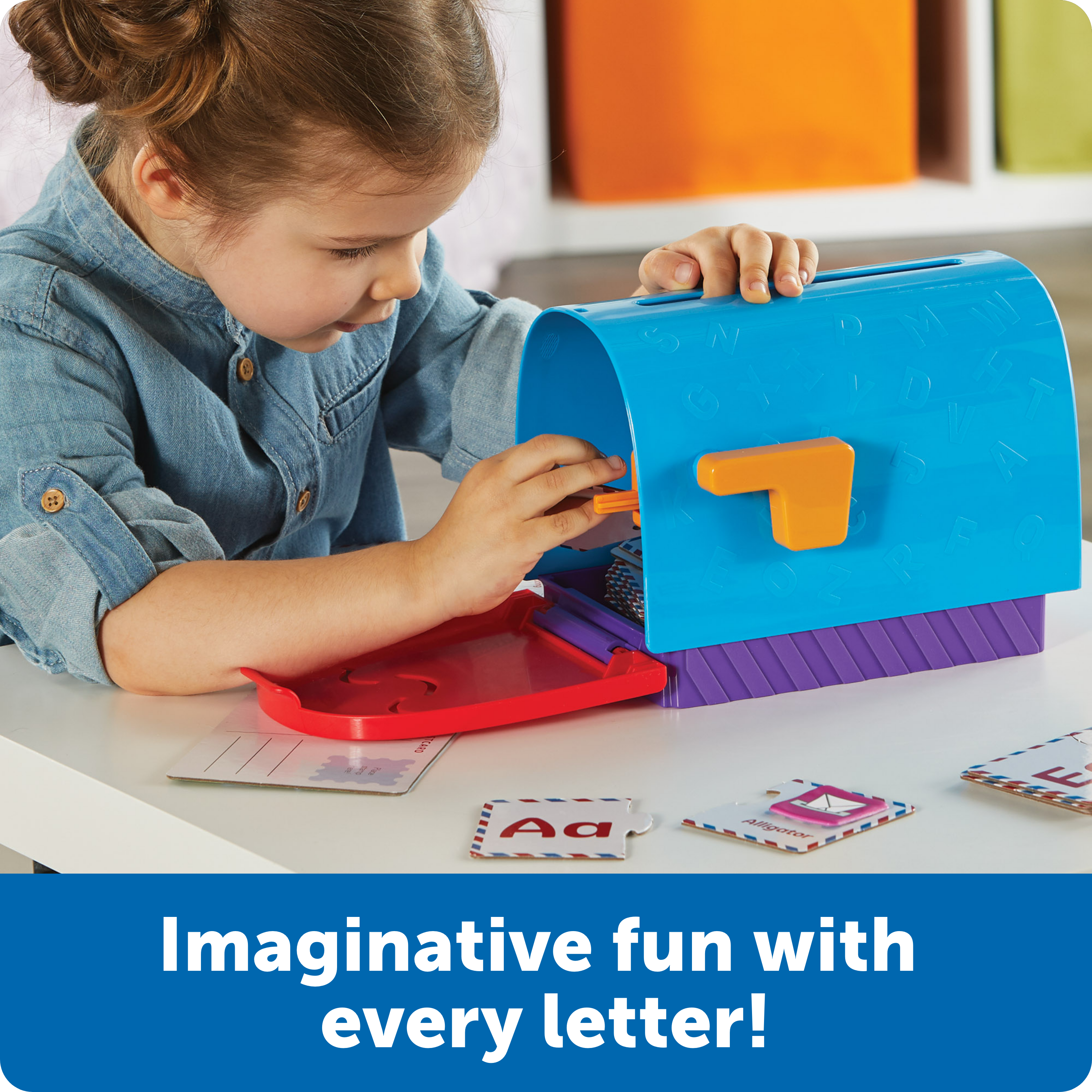 SKU LER5511 Product Title Alphabet Learning Mailbox Brand Name Learning Resources UPC 765023055115 Piece Count 62 Min Target Age 4 Max Target Age 99 TargetGradeMax Adult TargetGradeMin Pre-K ProductCategorySubject Language & Letters Port of Exit CNYTN Country of Origin CHN Unit Height 7.12 Unit Length 6.55 Unit Weight 2.1 Unit Width 9.12 Short Description - DC It's a special delivery of new preschool alphabet skills! Kids learn letter recognition, vocabulary, pencil skills, and more when they explore the fun language activities found inside the Alphabet Learning Mailbox, one of the preschool learning toys from Learning Resources. This educational toy is packed with letter learning fun—match the 26 uppercase and lowercase letter puzzles, then flip them over and solve beginning sounds puzzles! Plus, kids can use this preschool toy’s double-sided write & wipe postcards to practice tracing, pencil grip, and other early writing skills. The Alphabet Learning Mailbox also includes 30 reusable puffy postage stamp stickers depicting common vocabulary words that add a colorful dash of mail-time fun to preschool learning activities. Best of all, the preschool learning activities in this set grow with your kids’ skills—start with uppercase and lowercase letter recognition, then move on to writing practice and more as this becomes a kindergarten toy! When playtime is done for the day, the Alphabet Learning Mailbox’s pieces return to the smiling mailbox for easy clean-up. Long Description - DC It's a special delivery of new preschool alphabet skills! Kids learn letter recognition, vocabulary, pencil skills, and more when they explore the fun language activities found inside the Alphabet Learning Mailbox, one of the preschool learning toys from Learning Resources. This educational toy is packed with letter learning fun—match the 26 uppercase and lowercase letter puzzles, then flip them over and solve beginning sounds puzzles! Plus, kids can use this preschool toy’s double-sided write & wipe postcards to practice tracing, pencil grip, and other early writing skills. The Alphabet Learning Mailbox also includes 30 reusable puffy postage stamp stickers depicting common vocabulary words that add a colorful dash of mail-time fun to preschool learning activities. Best of all, the preschool learning activities in this set grow with your kids’ skills—start with uppercase and lowercase letter recognition, then move on to writing practice and more as this becomes a kindergarten toy! When playtime is done for the day, the Alphabet Learning Mailbox’s pieces return to the smiling mailbox for easy clean-up. When your kids play with preschool learning toys from Learning Resources, they’re doing more than just having fun. They’re also learning essential skills. Our award-winning educational toys keep kids engaged through hands-on, screen-free play that helps them build and retain new talents in letters, numbers, shapes, colors, and more. Made from durable, BPA-free plastic, our preschool toys are ready for years of learning fun at home or in the classroom. We're Learning Resources, and learning is where we play. With nearly 40 years of experience, our family-owned company’s mission is founded on offering kids educational toys for infinite inspiration to succeed in school and beyond. From ABCs and 123s to fine motor and STEM, our award-winning educational toys help kids discover countless ways to develop a lifelong love of learning while they build new skills. In 2022, Learning Resources expanded this dedication to learning and enrichment with Brightkins, a line of interactive pet training tools and toys that help families discover bright ways for pets to play! CA prop 65 No Case Height 9.9 Case Length 15.4 Case Quantity 6 Case Weight 14 CPQ 1.79 Includes Remote No Marble Warning No MSRP 21.99 Small Ball Warning No Small Parts Warning Yes