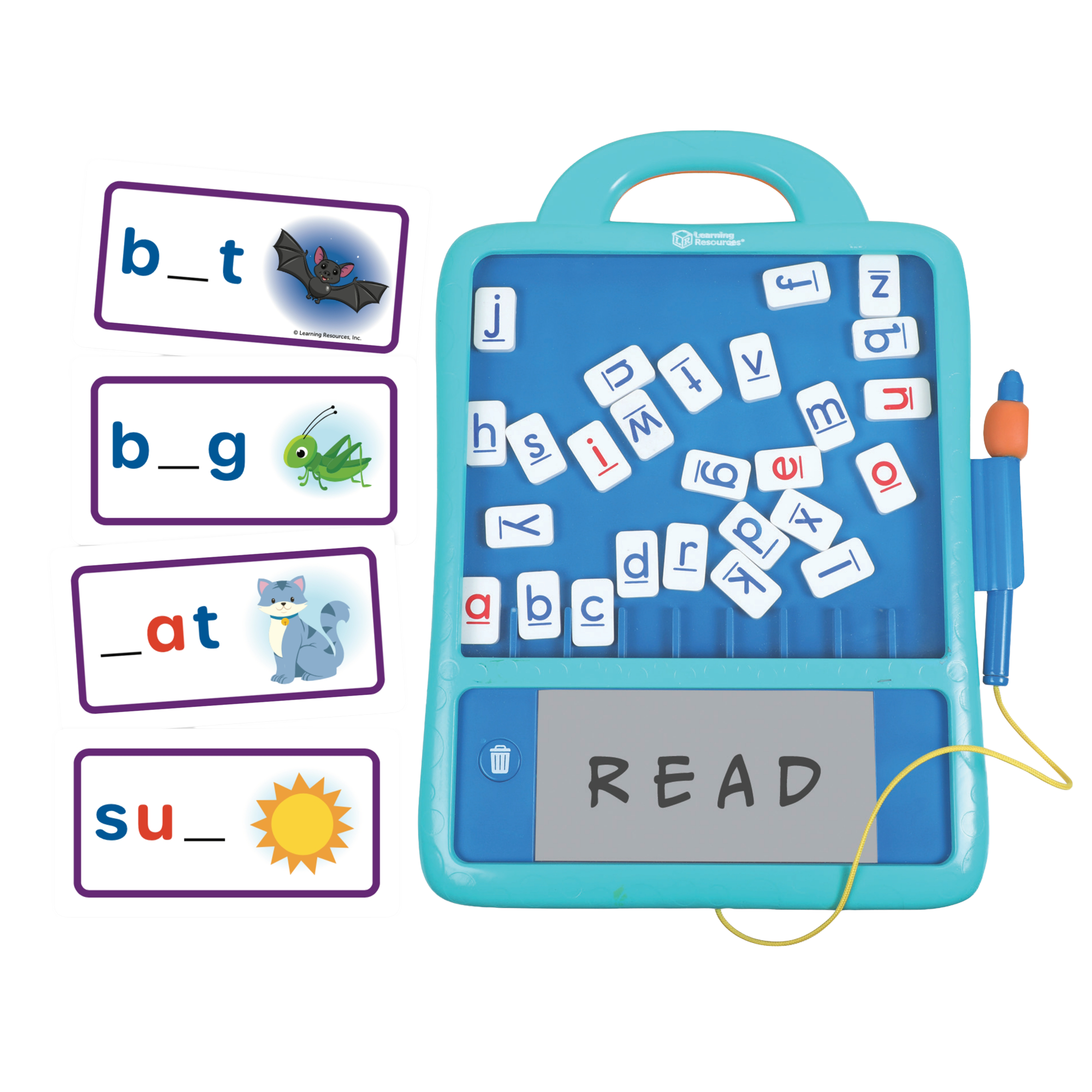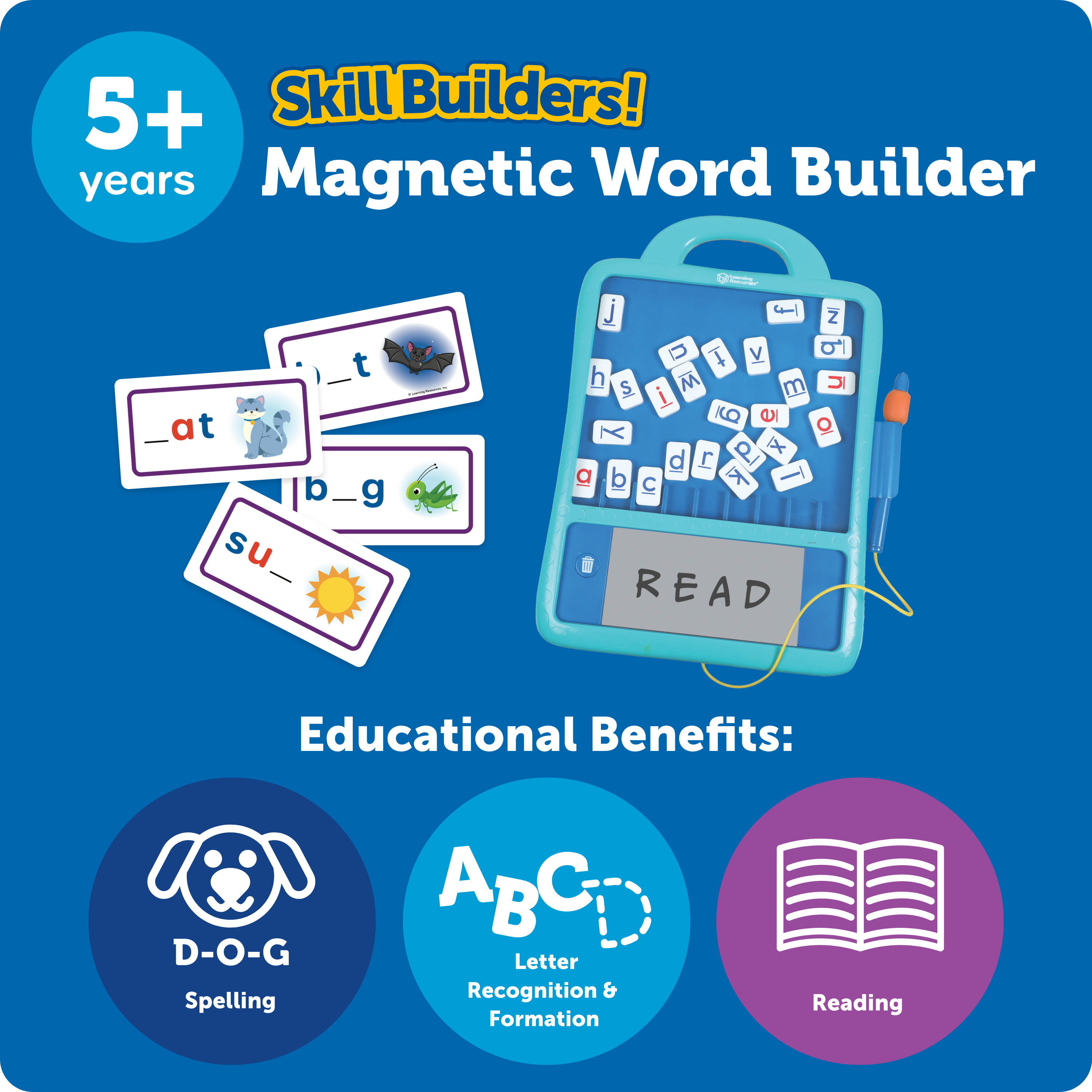 SKU LER5519 Product Title Skill Builders Magnetic Word Builder UPC 765023055191 Piece Count 21 Min Target Age 5 Country of Origin CHN Short Description - DC Spelling meets fine motor skills with this all-in-one magnetic letter tablet! Grab the magnetic pen, then move the letter tiles to create the right word on the ABC puzzle board. This set's 20 double-sided word prompt cards build spelling and vocabulary skills as kids play. After they build a word, kids can use the magnetic pen to practice handwriting and fine motor skills on the electronic board. This compact, self-contained tablet is also ready for on-the-go learning. Batteries Needed Yes