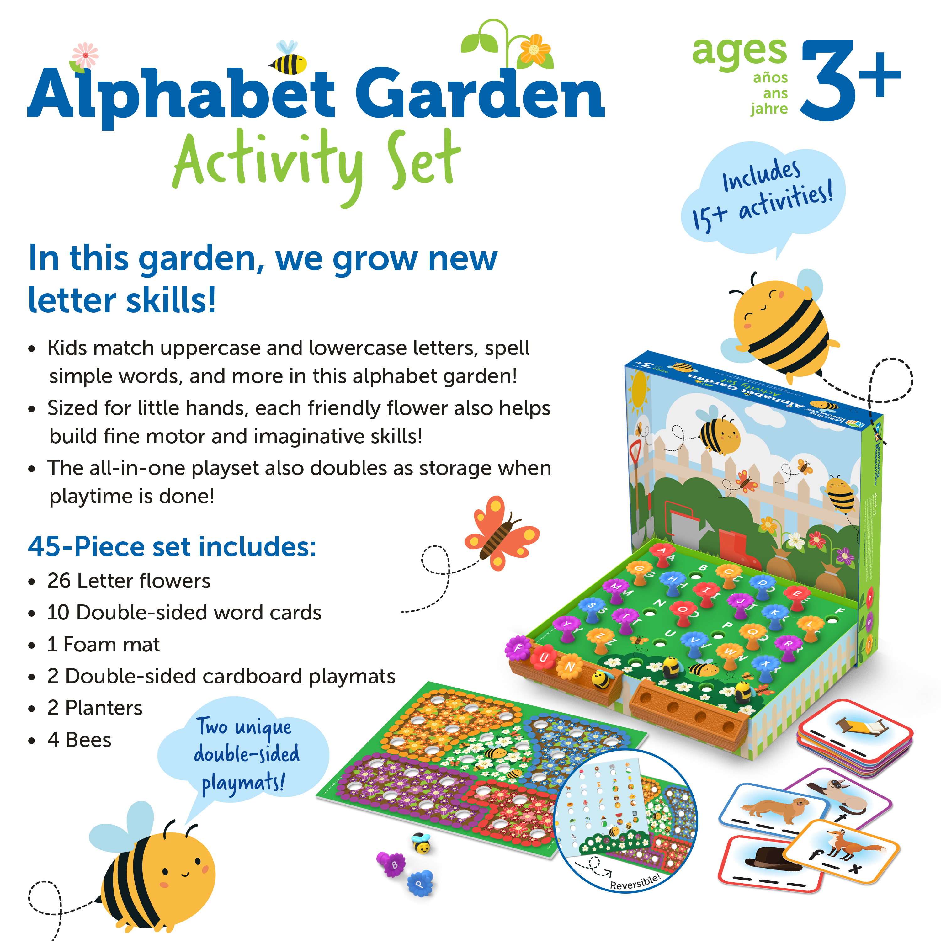 SKU LER5543 Product Title Alphabet Garden Activity Set Brand Name Learning Resources UPC 765023055436 Piece Count 45 Min Target Age 3 Max Target Age 6 TargetGradeMax First Grade TargetGradeMin Toddler ProductCategorySubject Language & Letters Port of Exit CNYTN Country of Origin CHN Unit Height 2.6 Unit Length 11.5 Unit Weight 1.5 Unit Width 9.9 CA prop 65 No Case Height 10.6 Case Length 12.2 Case Quantity 4 Case Weight 6.85 CPQ 0.82 Includes Remote No Marble Warning No MSRP 29.99 Small Ball Warning No Small Parts Warning Yes