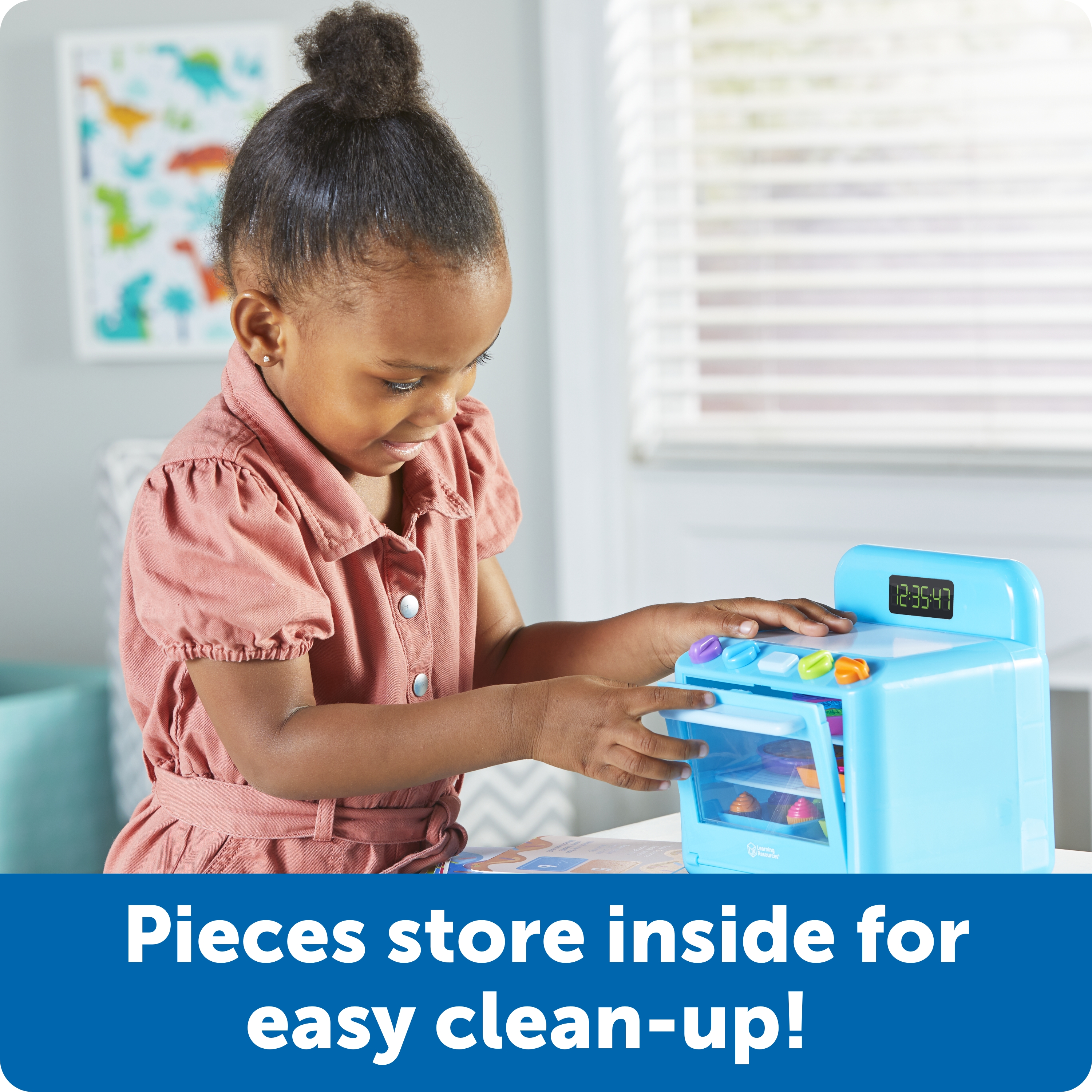 SKU LER6821 Product Title Sorting Sweets Mini Oven Brand Name Learning Resources UPC 765023068214 Piece Count 56 Min Target Age 3 Max Target Age 6 TargetGradeMax First Grade TargetGradeMin Pre-K ProductCategorySubject Sorting & Matching Port of Exit CNYTN Country of Origin CHN Unit Height 12 Unit Length 7.3 Unit Weight 1.9 Unit Width 8.25 Short Description - DC This mini oven is baking some big learning! Use 6 baking pans to sort and prepare a 30-piece collection of colorful mini sweets, including cake, pie, cookies, cupcakes, and donuts. A spatula sized for little hands helps build fine motor skills one treat at a time. Includes activity cards for even more ways to learn! All pieces and cards store inside the oven for an easy kitchen cleanup! Discover even more minis with our Sorting Snacks Mini Fridge and Mini Farmer's Market Sorting Set! Age 3+ | Grade PreK+ Long Description - DC This mini oven is baking some big learning! Use 6 baking pans to sort and prepare a 30-piece collection of colorful mini sweets, including cake, pie, cookies, cupcakes, and donuts. A spatula sized for little hands helps build fine motor skills one treat at a time. Includes activity cards for even more ways to learn! All pieces and cards store inside the oven for an easy kitchen cleanup! Discover even more minis with our Sorting Snacks Mini Fridge and Mini Farmer's Market Sorting Set! Age 3+ | Grade PreK+ CA prop 65 No Case Height 13.3 Case Length 15.6 Case Quantity 4 Case Weight 9.7 CPQ 2.01 Includes Remote No Marble Warning No MSRP 27.99 Small Ball Warning No Small Parts Warning Yes