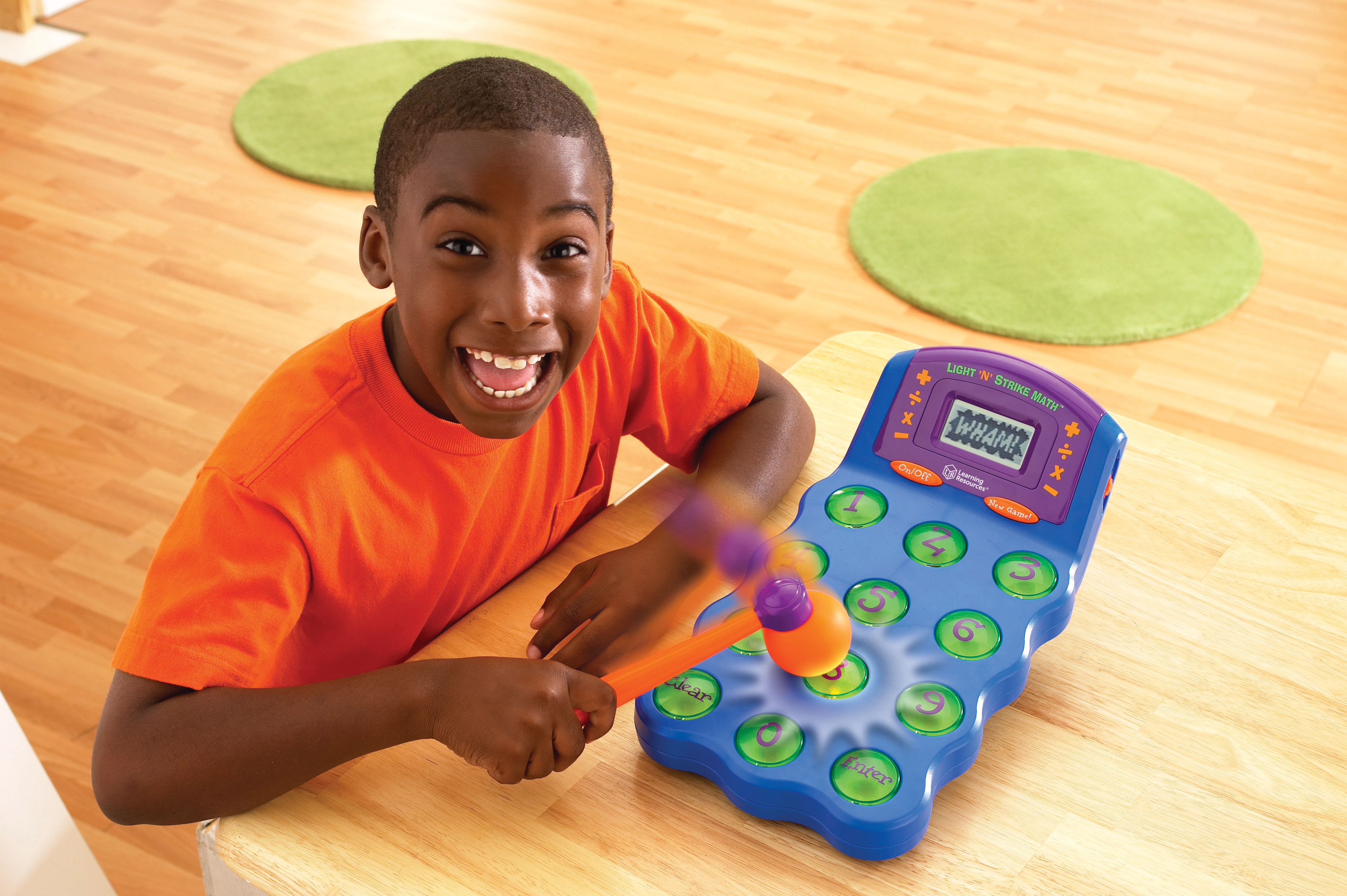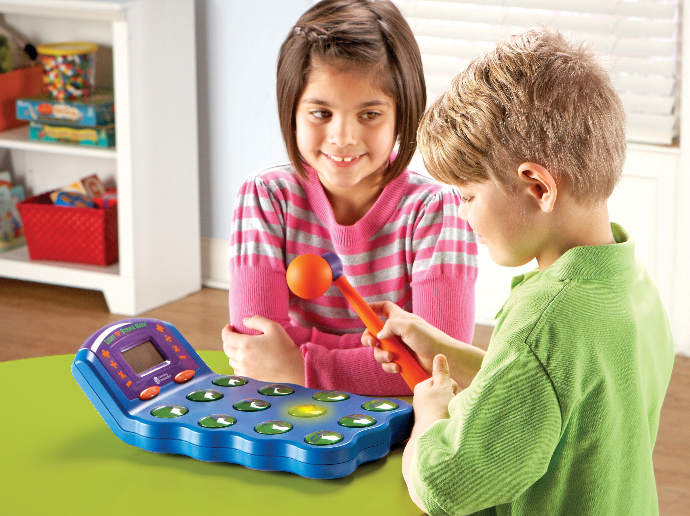 SKU LER6906 Product Title LIGHT 'N' STRIKE MATH ARCADE-STYLE MATH Brand Name Learning Resources UPC 765023069068 Piece Count 2 Min Target Age 6 Max Target Age 10 TargetGradeMax Fifth Grade TargetGradeMin First Grade ProductCategoryProductLine Math Games ProductCategorySubject Games Port of Exit CNYTN Country of Origin CHN Unit Height 4.8 Unit Length 14.9 Unit Weight 2.5 Unit Width 8.7 Long Description - DC Reinforce addition, subtraction, multiplication and division skills with this arcade style game and 3 levels of difficulty. A large screen displays math equations, then the numbers flash and beep- when the correct answer lights up players press it using a soft mallet or their hands. Batteries Needed No Battery Count 4 Battery Material Alkaline Battery Type AA CA prop 65 No Case Height 16.1 Case Length 17.8 Case Quantity 6 Case Weight 17.1 CPQ 2.69 Includes Remote No Marble Warning No MSRP 54.99 Power Source Batteries Small Ball Warning No Small Parts Warning No