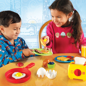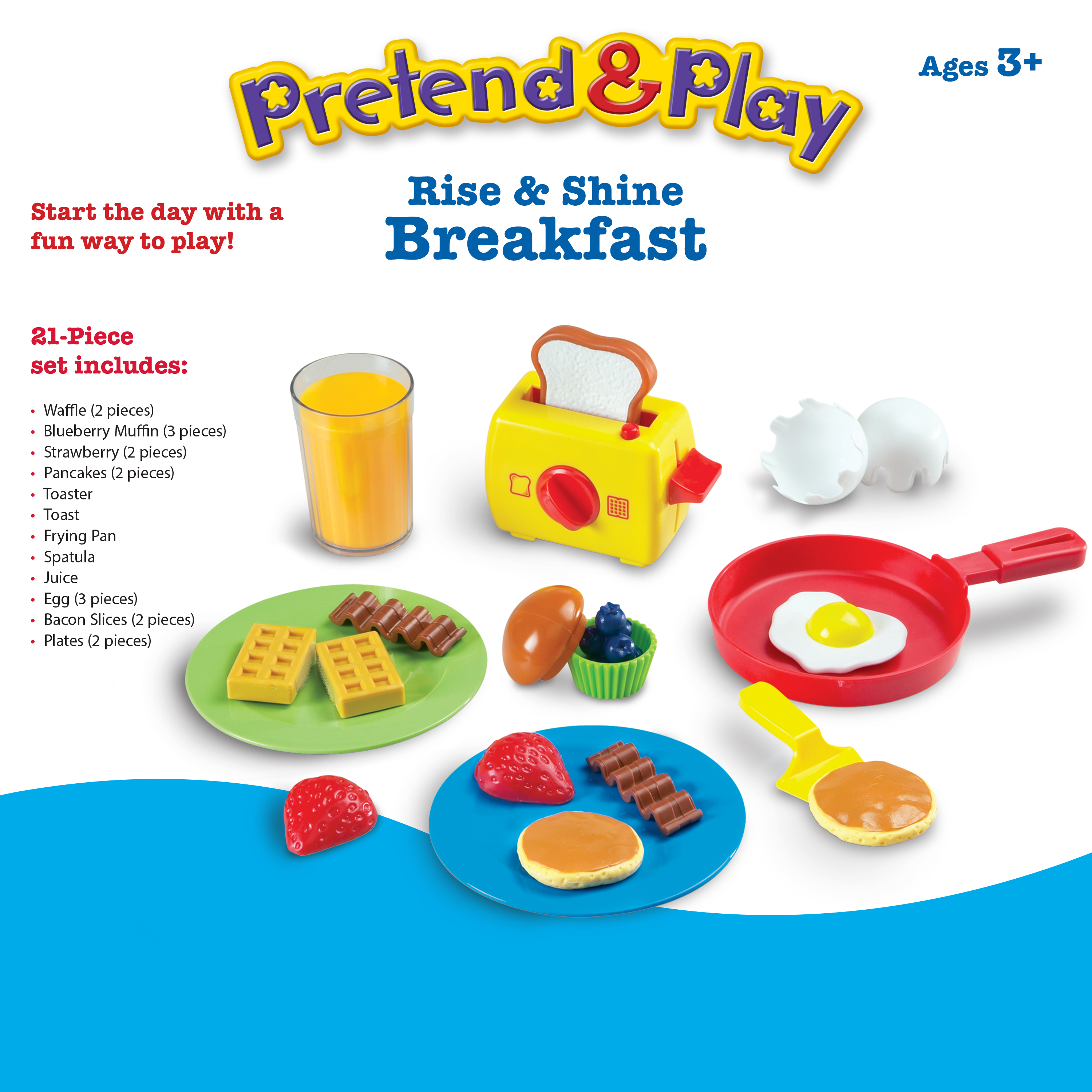 SKU LER9068 Product Title PRETEND & PLAY® RISE & SHINE BREAKFAST Brand Name Learning Resources UPC 765023090680 Piece Count 5 Min Target Age 3 Max Target Age 7 TargetGradeMax Second Grade TargetGradeMin Toddler ProductCategoryProductLine Pretend & Play ProductCategorySubject Kitchen & Food Imaginative Play Port of Exit CNFZH Country of Origin CHN Unit Height 3.5 Unit Length 10.5 Unit Weight 1.65 Unit Width 10.5 Long Description - DC Encourage children to role play and work on fine motor and social skills as children work together to get breakfast on the table. 21 pieces include: 2 plates, spring-loaded toaster, skillet, spatula, and play food with toast, waffles, 2-piece muffin and more. CA prop 65 No Case Height 22.2 Case Length 11.5 Case Quantity 12 Case Weight 22.65 CPQ 3.13 Includes Remote No Marble Warning No MSRP 23.99 Small Ball Warning No Small Parts Warning Yes