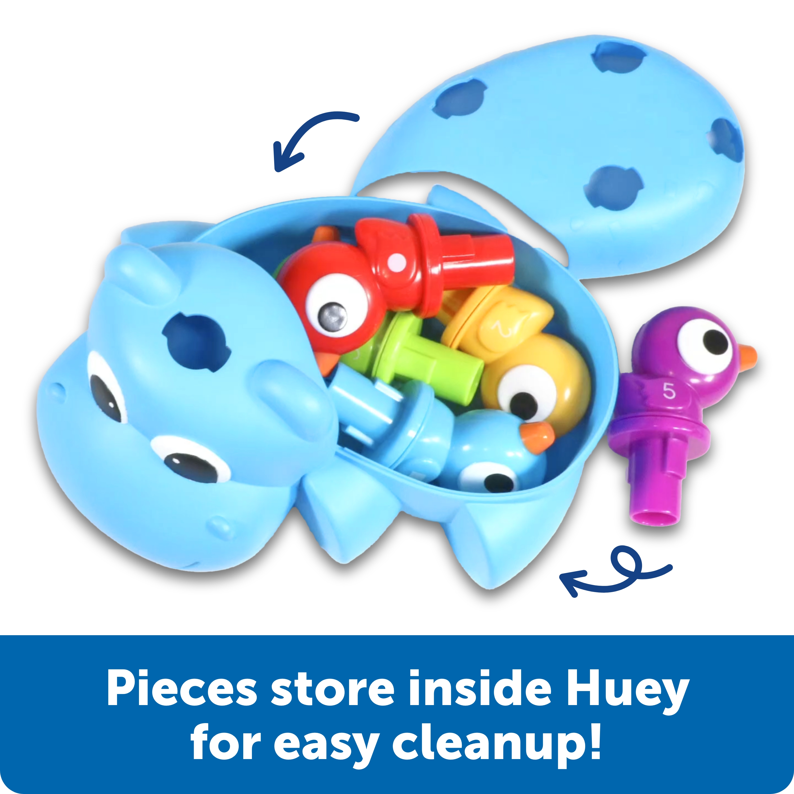 SKU LER9108 Product Title HUEY THE FINE MOTOR HIPPO Brand Name Learning Resources UPC 765023091083 Piece Count 7 Min Target Age 1 Max Target Age 3 TargetGradeMax Toddler TargetGradeMin Toddler ProductCategoryProductLine Fine Motor Friends ProductCategorySubject Motor Skills Port of Exit VNHPH Country of Origin VNM Unit Height 6.5 Unit Length 4.3 Unit Weight 1.05 Unit Width 8.7 Long Description - DC Huey and his birdie friends are ready for preschool fine motor fun! Whether they're learning in preschool or through homeschooling, toddlers build the whole-hand twister grip they need to turn doorknobs and more every time they play with Huey the Fine Motor Hippo from Learning Resources! The friendliest fine motor toy for toddlers, this adorable hippo comes with 5 colorful birdies, whose twist-and-click action make it easy for toddlers to build their twister grasp, coordination, and other whole-hand essentials of preschool fine motor skills development. Huey's birdies also come with a bonus learning surprise—in addition to building fine motor and gross motor skills, these preschool toys also introduce toddlers to preschool color, number, and shape identification skills thanks to their vibrant designs. Twist and click the birdies, sort them into warm and cool colors, and more—with Huey the Fine Motor Hippo, there are always multiple ways to learn. When the preschool fine motor fun is finished for the day, Huey's durable plastic birdies wipe clean and fit inside for easy storage. CA prop 65 No Case Height 9.5 Case Length 13.7 Case Quantity 4 Case Weight 5.15 CPQ 0.72 Includes Remote No Marble Warning No MSRP 16.99 Small Ball Warning No Small Parts Warning No