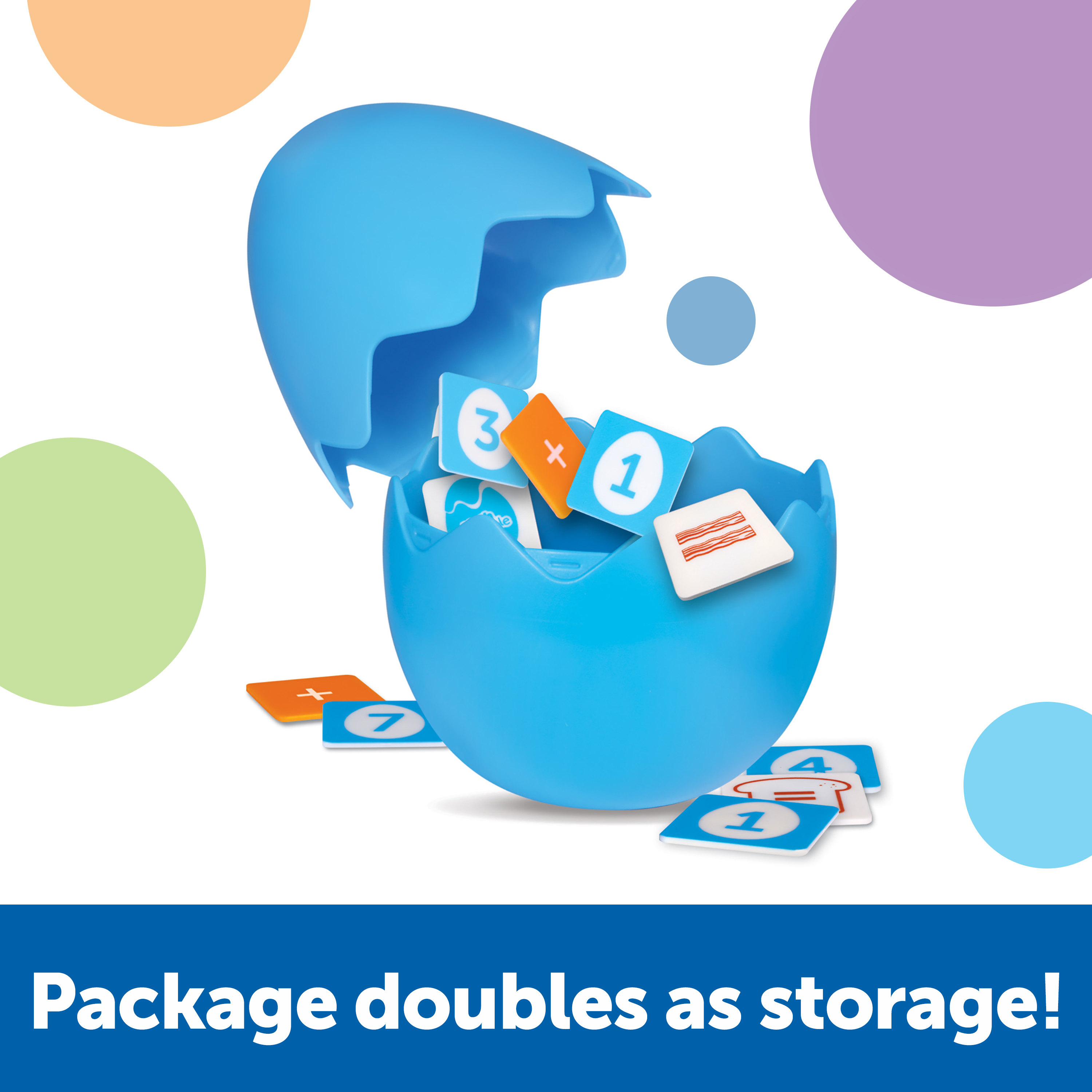SKU LER9131 Product Title MATH SCRAMBLE Brand Name Learning Resources UPC 765023091311 Piece Count 86 Min Target Age 5 Max Target Age 10 TargetGradeMax Fifth Grade TargetGradeMin Kindergarten ProductCategoryProductLine Math Games ProductCategorySubject Games Port of Exit CNYTN Country of Origin CHN Unit Height 4.3 Unit Length 4.3 Unit Weight 0.55 Unit Width 5.8 Long Description - DC Rise and shine for eggcellent elementary math skills! Kids crack open a hearty helping of addition, subtraction, and more every time they play Math Scramble from Learning Resources! Playable alone or with up to 3 others, this fun math skills game challenges kids to build and solve addition and subtraction problems. Along the way, they'll practice math facts as they race to play all of their tiles. First one to finish wins! When the game is over, addition and subtraction tiles store inside the set's fun reusable plastic egg until it's time to play again. Math Scramble includes 85 plastic addition and subtraction tiles, as well as an instruction guide with game rules and play ideas. With multiple ways to play both solo and in groups, Math Scramble makes a great addition to home game collections and classroom math lessons. CA prop 65 No Case Height 12.5 Case Length 9.4 Case Quantity 12 Case Weight 7.25 CPQ 0.92 Includes Remote No Marble Warning No MSRP 14.99 Small Ball Warning No Small Parts Warning Yes