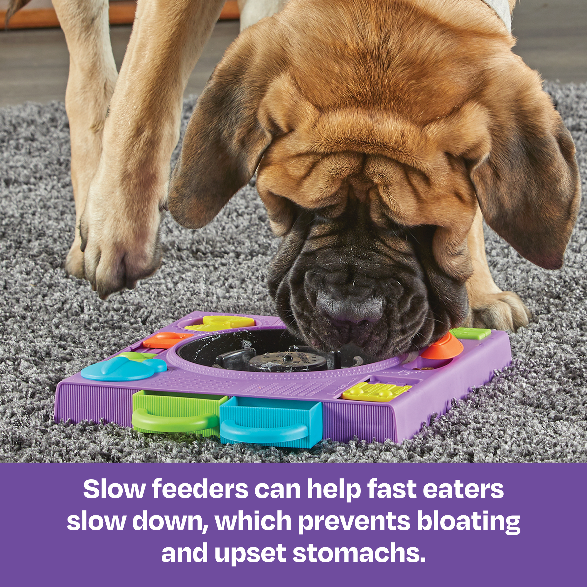 SKU LER9383 Product Title Brightkins DJ Doggo Puzzle Feeder Brand Name Pets (Brightkins and Hunger for Words) UPC 765023093834 Piece Count 4 Min Target Age 0 Max Target Age 99 TargetGradeMax Adult ProductCategoryProductLine Treat Puzzles ProductCategorySubject Brightkins Port of Exit CNYTN Country of Origin CHN Unit Height 13.75 Unit Length 2.56 Unit Weight 1.98 Unit Width 13.7 Long Description - DC Turn mealtime into a brain-boosting doggo dance party with this irresistible 2-in-1 turntable dog feeder puzzle! Dogs slide, spin, and snack their way to boredom-busting fun as they hunt for their favorite treats in the DJ Doggo Puzzle Feeder, one of the cool dog enrichment toys from Brightkins. Inspired by record-scratching DJ stations, this dog puzzle feeder comes with two ways to puzzle—dogs can search for snacks tucked inside the 11 hidden compartments, or use the removable, easy-clean center bowl as a slow feeder that help fast eaters find a healthy pace and avoid upset stomachs at mealtime. Want even more ways to puzzle? Check out this interactive dog feeder’s guide--written by a certified professional dog trainer (CPDT-KA), it's got all the advice and activities you need to keep your pooch happy and engaged and make the most of our stimulating dog toys! Filled with all kinds of sniffing, searching fun, our dog training and behavior aids also make a great dog birthday toy, as well as thoughtful gifts for dog parents! At Brightkins, our paws-on interactive dog toys and training tools unlock your pets' curiosity and engage the entire family! After nearly 40 years of designing award-winning toys that make learning fun for kids, Learning Resources is excited to bring learning to life for your furry family members. Playing with Brightkins products helps pets reduce boredom, ease anxiety and destructive behaviors, and build bright bonds with the people around them! Whether you're teaching new behaviors, boosting mental stimulation, or promoting active family play, we'll help you keep your pets bright and happy for years to come. CA prop 65 No Case Height 11.7 Case Length 14.5 Case Quantity 4 Case Weight 8.95 CPQ 1.41 Includes Remote No Marble Warning No MSRP 29.99 Small Ball Warning No Small Parts Warning Yes