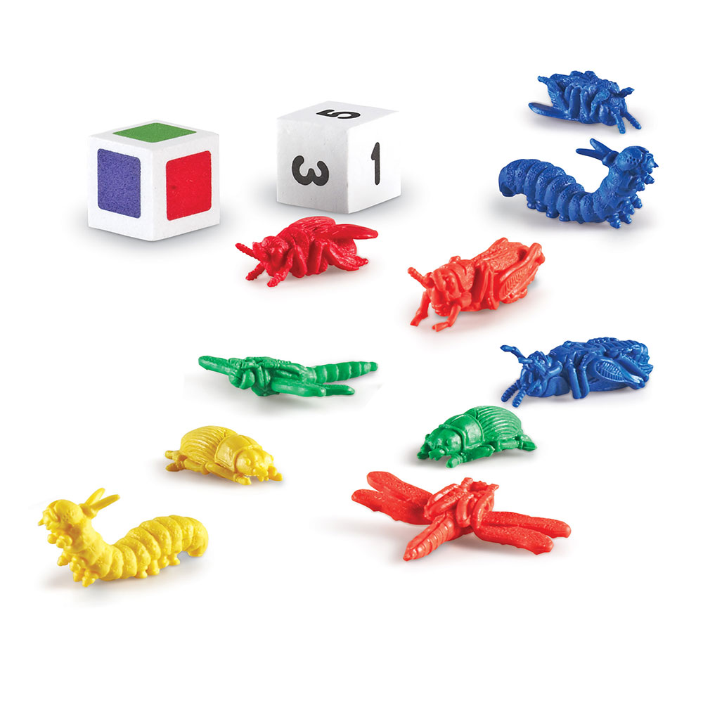 SKU LER9441-D Product Title TAKE 10 GAMES COLOR BUG CATCHERS Brand Name Learning Resources UPC 765023094411 Piece Count 40 Min Target Age 3 Max Target Age 4 TargetGradeMax Pre-K TargetGradeMin Toddler ProductCategoryProductLine Math Games ProductCategorySubject Games Country of Origin USA Unit Height 4 Unit Length 4.75 Unit Weight 0.63 Unit Width 4 Long Description - DC Turn any 10 minutes into quality time. Playing our Color Bug Catchers game is a great way to spend important time with your little one, building basic color identification, counting, sorting and fine-motor skills. These bugs are tricky! Use your grabbers and nab them before they get away! Roll number and color cubes to see who can be the first to snag a bug of every color, collect 10 bugs, or have a crazy bug hunt. Each Take 10 game has multiple game-play options that all take under 10 minutes to complete. Recommended for, short game-play cycles and simple instructions are perfect for little attention spans. Plus, Take 10 games are completely portable, take them out or put them away in moments. It only takes minutes to build skills and create memories, sharing meaningful playtime together. CA prop 65 No Case Height 10.25 Case Length 18 Case Quantity 24 Case Weight 18.43 CPQ 1.44 Includes Remote No Marble Warning No MSRP 18.99 Small Ball Warning No Small Parts Warning No