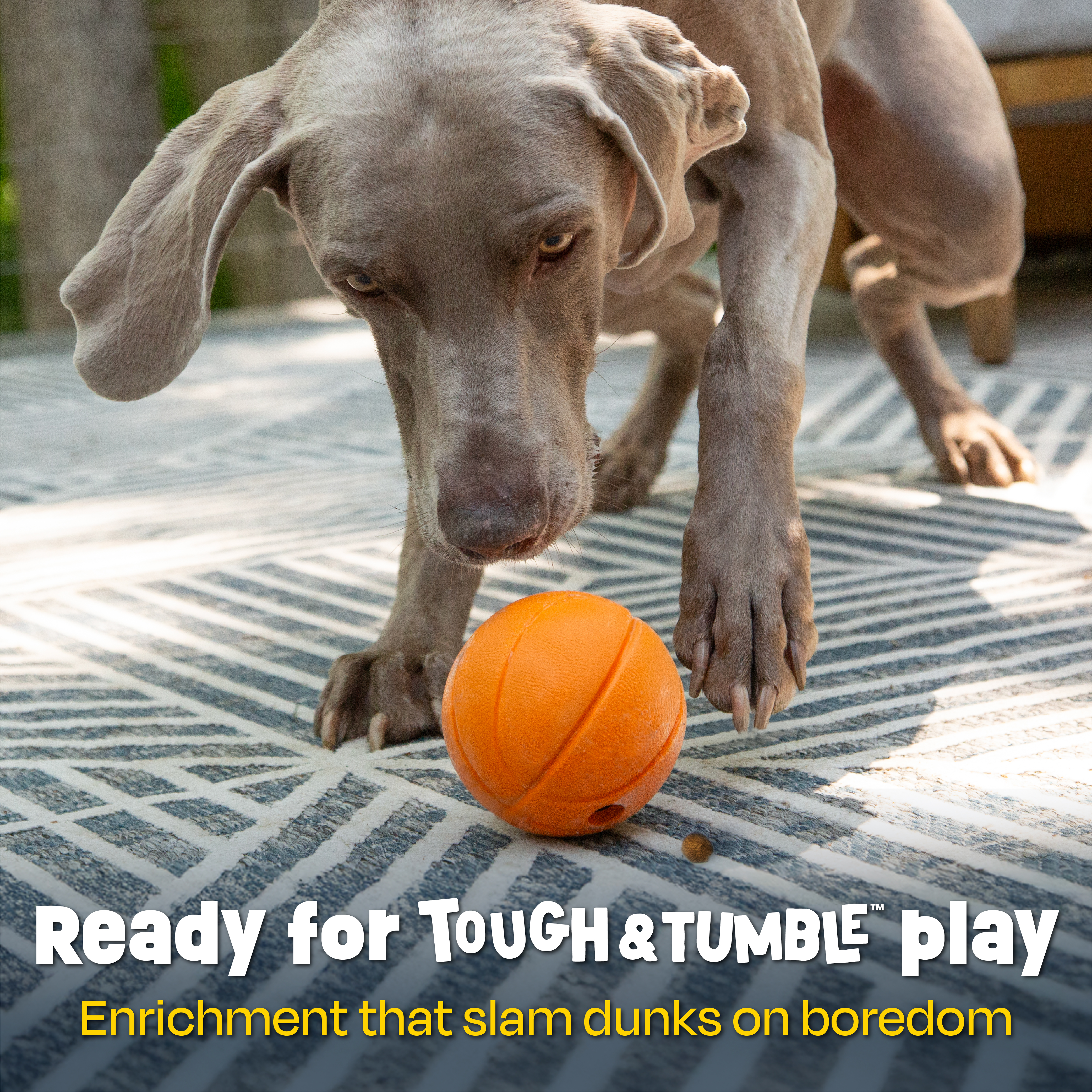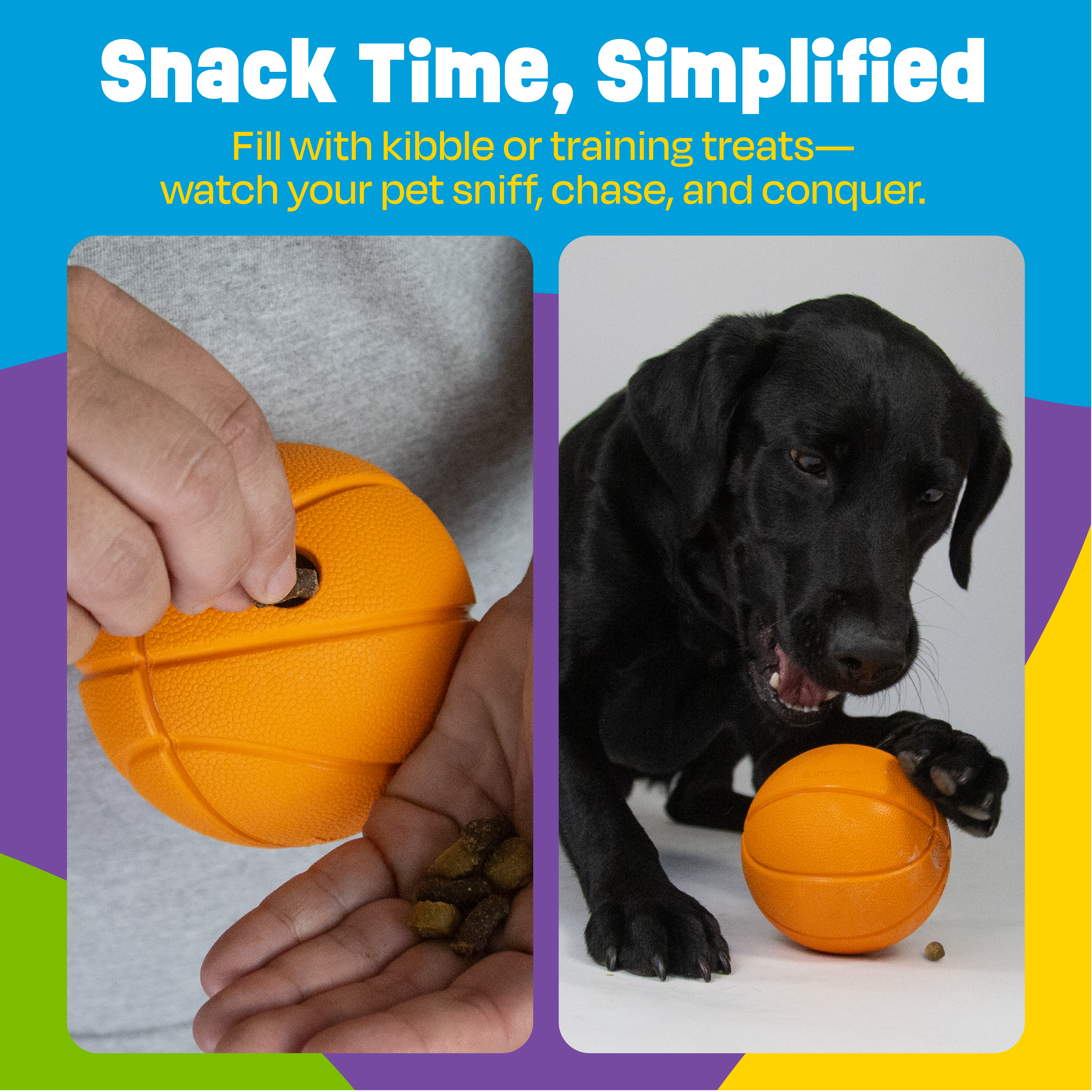 SKU LER9448 Product Title Basketball Treat Dispenser Brand Name Pets (Brightkins and Hunger for Words) UPC 765023094480 Piece Count 2 Min Target Age 0 Max Target Age 0 ProductCategoryProductLine Treat Dispensers ProductCategorySubject Brightkins Port of Exit CNSZX Country of Origin CHN Unit Height 3.5 Unit Length 6 Unit Weight 0.7 Unit Width 8.2 Short Description - DC This wiggling, wobbling treat dispenser is a snacktime slam dunk! Dogs love to sniff, paw, and lick this easy-fill dispenser that holds their favorite kibble and treats. Plus, it’s made of durable, non-toxic rubber that's great for dogs who are tough on their toys. This dispenser doubles as a slow feeder to help fast eaters slow down to promote gut health. Best of all, it’s also safe for the freezer or dishwasher! It even makes a great dog birthday treat pouch gift! CA prop 65 No Case Height 9.6 Case Length 14.1 Case Quantity 12 Case Weight 10 CPQ 1.18 Includes Remote No Marble Warning No MSRP 12.99 Small Ball Warning No Small Parts Warning No
