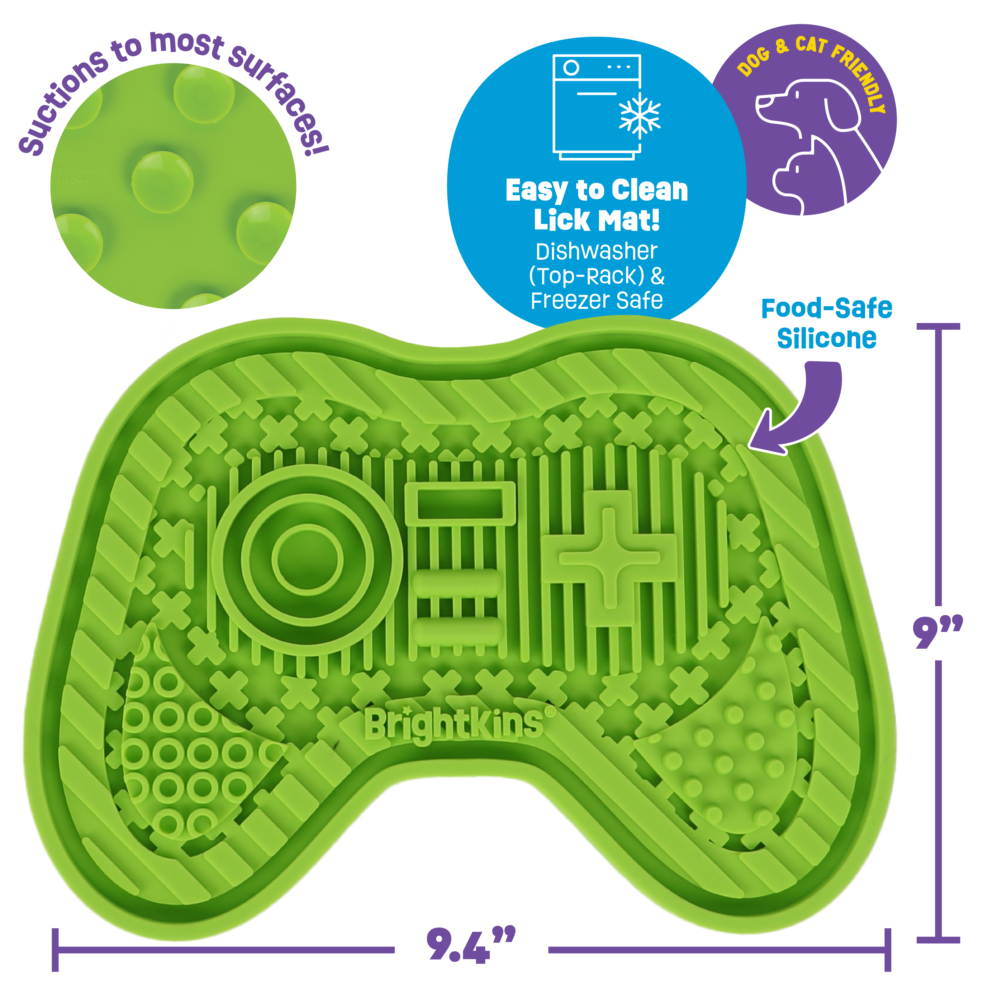SKU LER9459 Product Title Gamer Lick Mat Brand Name Pets (Brightkins and Hunger for Words) UPC 765023094596 Piece Count 1 Min Target Age 0 Max Target Age 0 ProductCategoryProductLine Slow Feeders & Lick Mats ProductCategorySubject Brightkins Port of Exit CNNGB Country of Origin CHN Unit Height 0.4 Unit Length 9 Unit Weight 0.55 Unit Width 10 Short Description - DC Pets go for the high score with this challenging gamer lick mat! Made from BPA-free, food-safe silicone, this enrichment toy’s ready for spreadables from wet dog food to peanut butter! Sturdy suction cups keep the mat secured to surfaces, so dogs can snuffle away! Slow feeder bowls and puzzles like this one help fast eaters slow down to promote gut health. Best of all, it’s also safe for the freezer or dishwasher! If you're looking for anxiety relief, items like this work great for nervous dogs! CA prop 65 No Case Height 4.2 Case Length 9.7 Case Quantity 6 Case Weight 3.75 CPQ 0.25 Includes Remote No Marble Warning No MSRP 10.99 Small Ball Warning No Small Parts Warning No