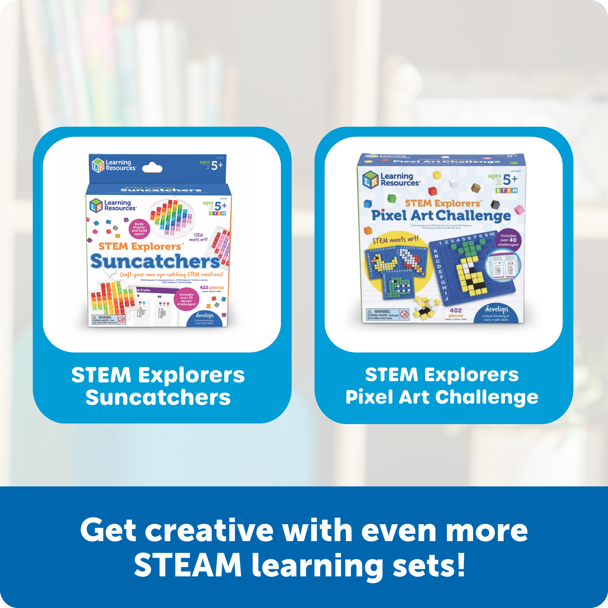 SKU LER9469 Product Title STEM Explorers Pixel Art Pro Brand Name Learning Resources UPC 765023094695 Piece Count 752 Min Target Age 5 Max Target Age 100 TargetGradeMax No Grade TargetGradeMin Kindergarten ProductCategoryProductLine STEM Explorers ProductCategorySubject Science/STEM Port of Exit CNYTN Country of Origin IND Unit Height 10.2 Unit Length 2.1 Unit Weight 0.95 Unit Width 10.2 Short Description - DC With Pixel Art Pro, kids craft STEM designs one pixel at a time as they plot, create, and display pixel art pieces! This advanced sequel to our Pixel Art Challenge strengthens early coding, math, and fine motor skills with 750 foam cubes and a jumbo 20 pixel x 20 pixel board for sharper builds. Solve 28 STEM challenges or create your own to build creativity, math, and fine motor skills. Plus—discover more downloadable designs online! Long Description - DC With Pixel Art Pro, kids craft STEM designs one pixel at a time as they plot, create, and display pixel art pieces! This advanced sequel to our Pixel Art Challenge strengthens early coding, math, and fine motor skills with 750 foam cubes and a jumbo 20 pixel x 20 pixel board for sharper builds. Solve 28 STEM challenges or create your own to build creativity, math, and fine motor skills. Plus—discover more downloadable designs online! CA prop 65 No Case Height 11.4 Case Length 10.9 Case Quantity 8 Case Weight 8.7 CPQ 1.25 Includes Remote No Marble Warning No MSRP 29.99 Small Ball Warning No Small Parts Warning Yes