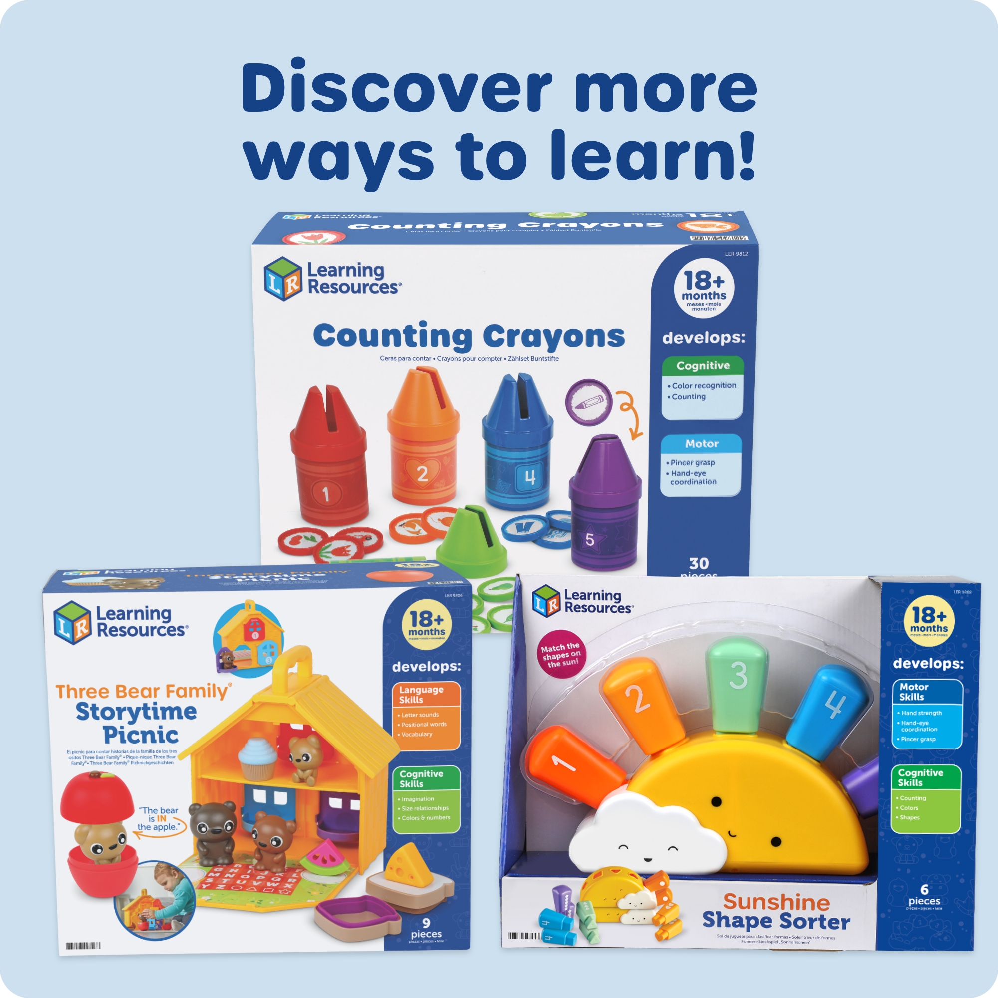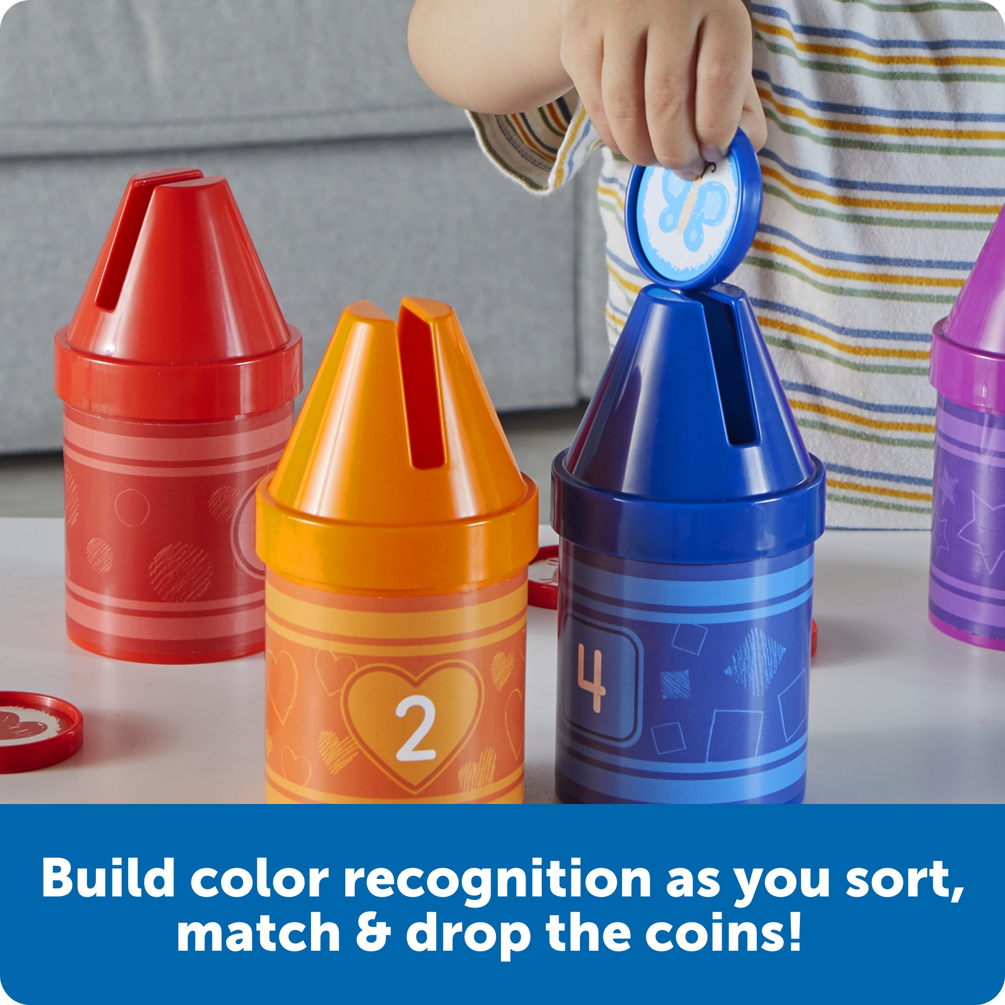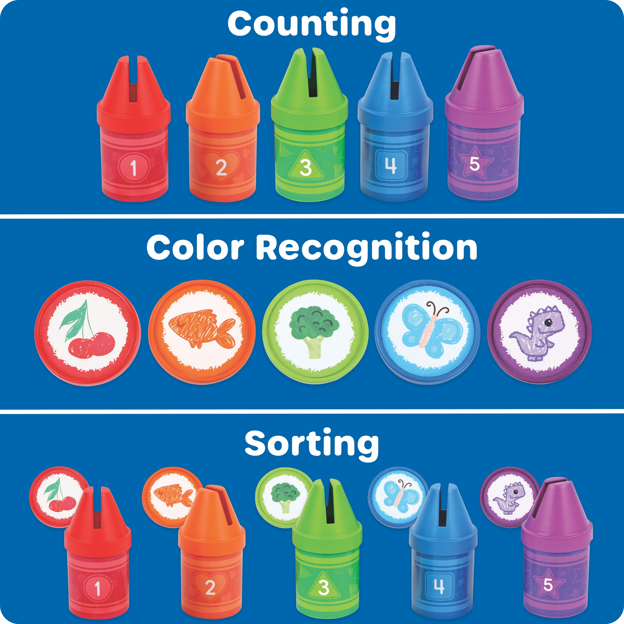 SKU LER9812 Product Title Counting Crayons Brand Name Learning Resources UPC 765023098129 Piece Count 0 Min Target Age 1 Max Target Age 100 TargetGradeMax No Grade TargetGradeMin Toddler ProductCategorySubject Math Port of Exit INNXV Country of Origin IND Unit Height 3.15 Unit Length 9.45 Unit Weight 1 Unit Width 7.68 Short Description - DC With Counting Crayons, toddlers build early math and color skills one coin at a time! This 35-piece set includes 5 numbered crayons and 25 illustrated double-sided coins that teach counting, color recognition, and object associations. As kids match and drop coins into the crayon tops, they’ll also strengthen fine motor skills like coordination and precision. All pieces store inside the crayons for easy cleanup—fits well with preschool toys and sorting games! Long Description - DC With Counting Crayons, toddlers build early math and color skills one coin at a time! This 35-piece set includes 5 numbered crayons and 25 illustrated double-sided coins that teach counting, color recognition, and object associations. As kids match and drop coins into the crayon tops, they’ll also strengthen fine motor skills like coordination and precision. All pieces store inside the crayons for easy cleanup—fits well with preschool toys and sorting games! CA prop 65 No Includes Remote No Marble Warning No MSRP 23.99 Small Ball Warning No Small Parts Warning No