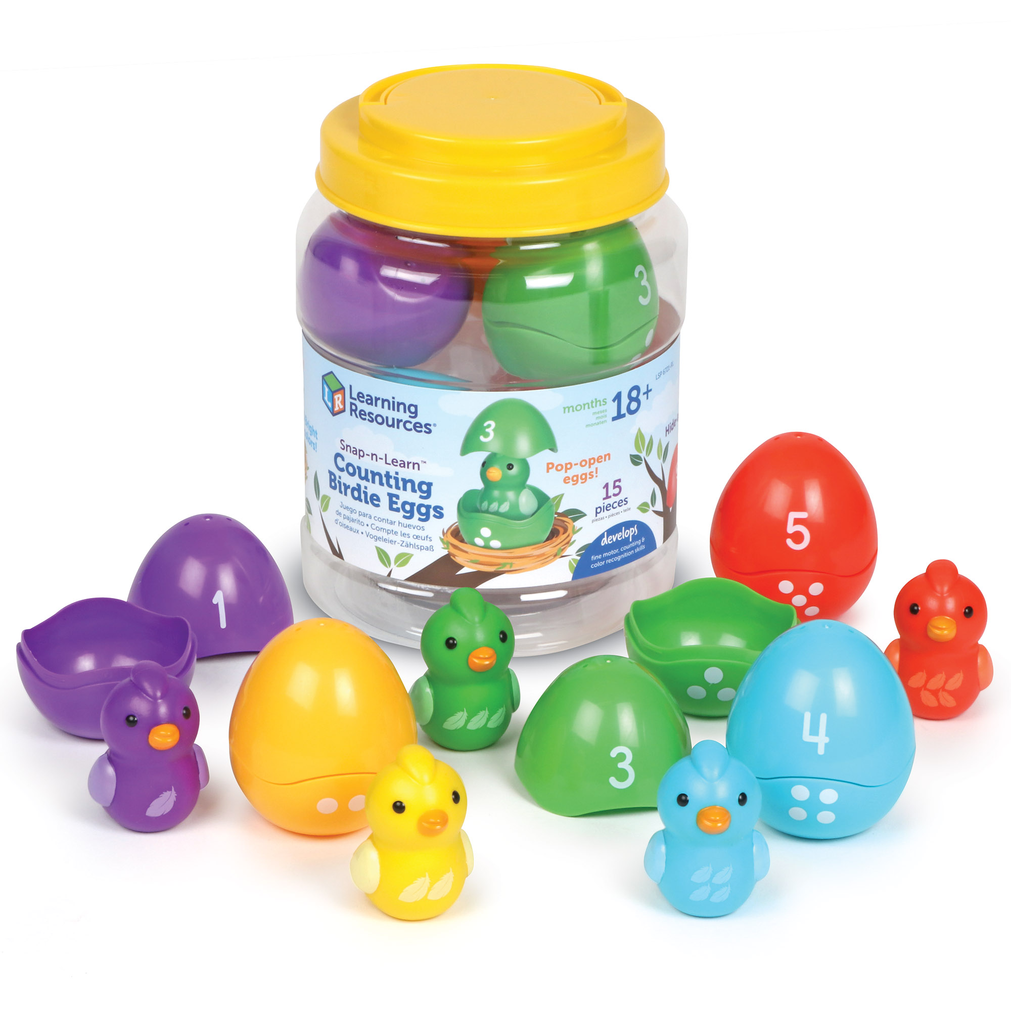 SKU LSP6721-RL Product Title SNAP N LEARN BIRDS Brand Name Learning Resources UPC 765023767216 Piece Count 0 Min Target Age 1.5 Max Target Age 3 TargetGradeMax Toddler TargetGradeMin Toddler ProductCategoryProductLine Snap-n-Learn ProductCategorySubject Math Port of Exit CNFZH Country of Origin CHN CA prop 65 No Includes Remote No Marble Warning No MSRP 14.99 Small Ball Warning No Small Parts Warning No