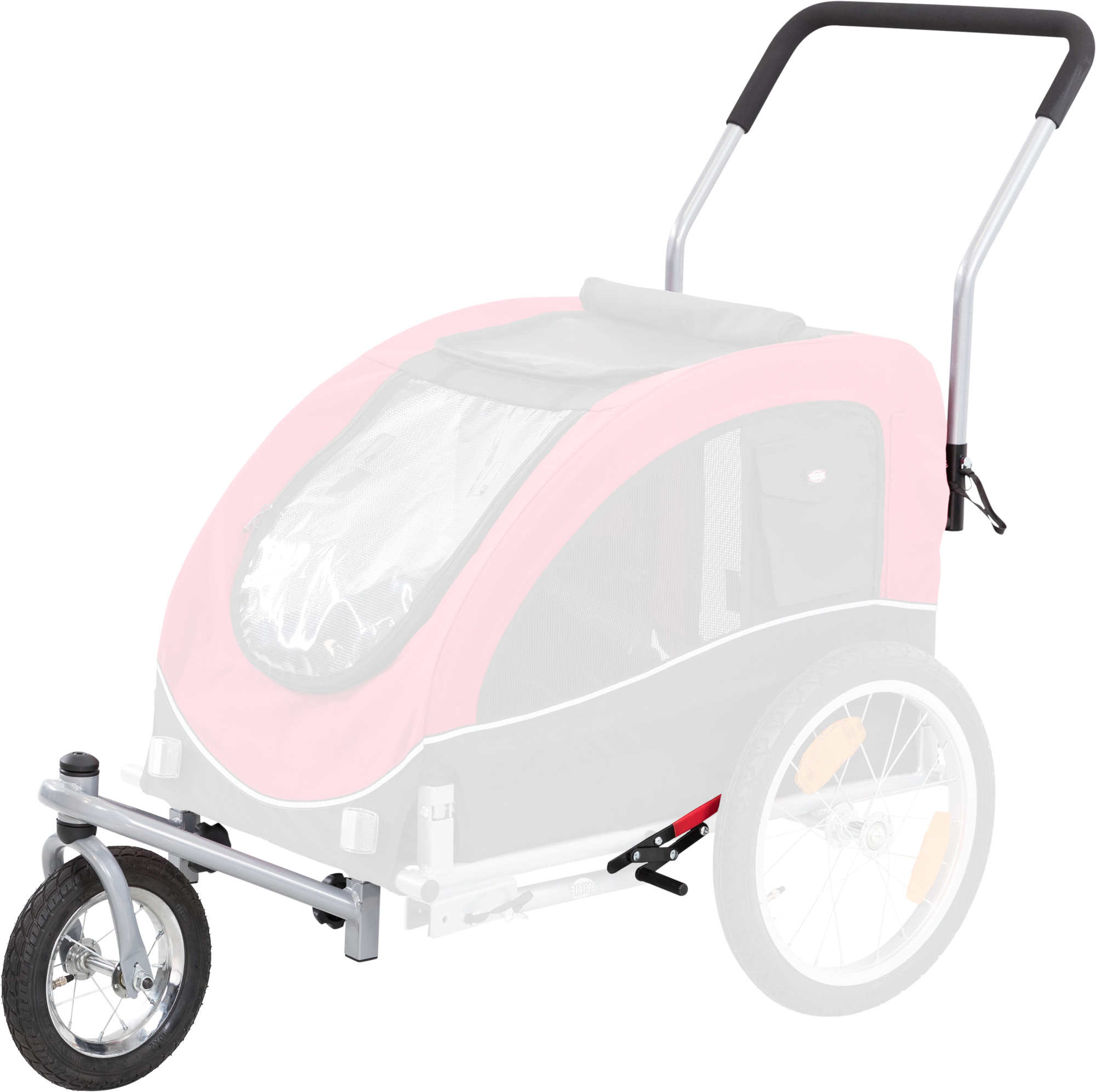 Convert the TRIXIE Dog Bike Trailer into a versatile, all-terrain jogger/stroller with the TRIXIE Stroller Conversion Kit 12817. If you switch between cycling, walking, and jogging, then the TRIXIE Bike Trailer is right for you. You can park your bike and hit the trails on foot, and your buddy will enjoy the same comfortable ride in his familiar trailer/stroller. Convert the TRIXIE Dog Bike Trailer into a stroller with our easy-to-install Stroller Conversion Kit – includes a handlebar, front swiveling wheel and mounting arm, parking brake, and all required hardware.