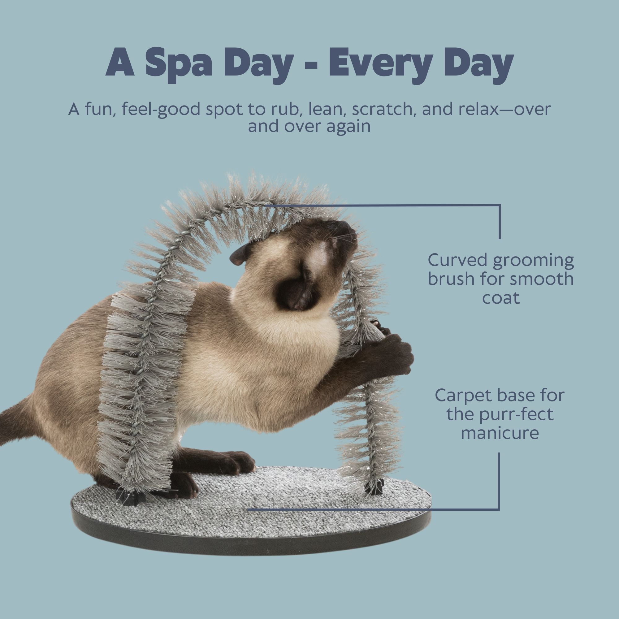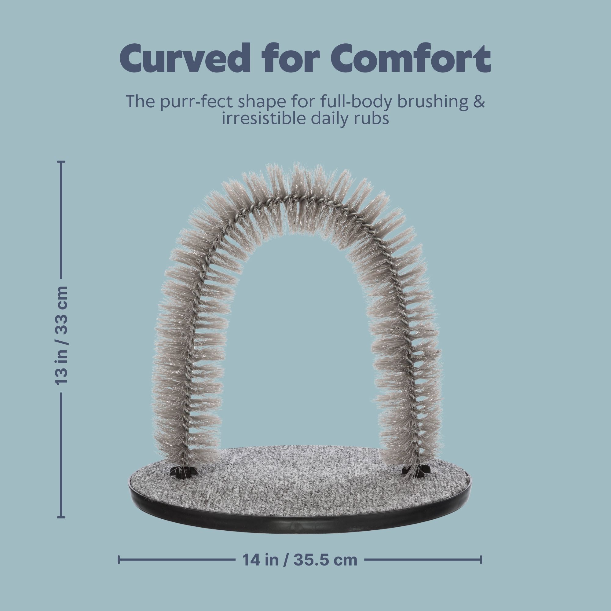 Keep your cat’s fur looking smooth and healthy with the The TRIXIE Massage and Self Grooming Arch. The massaging arched ring features soft bristles that gently brush your kitty’s fur - Purr Purr Purr-fectly! The self-grooming arch helps reduce shedding by removing excess hair when they rub against it. The sturdy carpet base feature doubles as a scratching board. The Arch is ideal to protect your furniture from claw marks and extra unwanted balls of fur. Happy parent and Happy soft kitty!