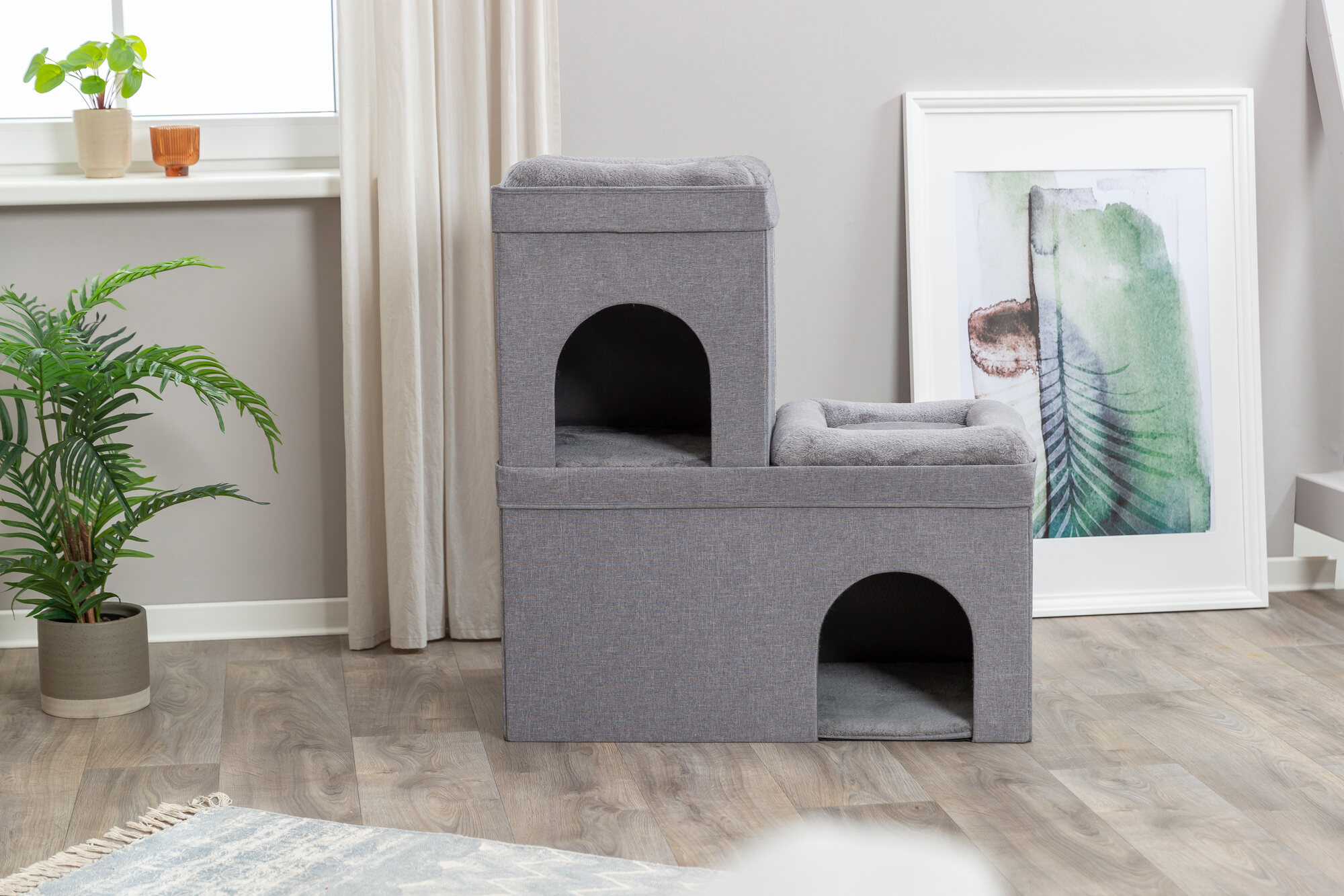 - Cats love nothing more than to snuggle up after playtime in our soft cat condo which provides maximum comfort for multiple cats to peacefully relax, lounge, or nap