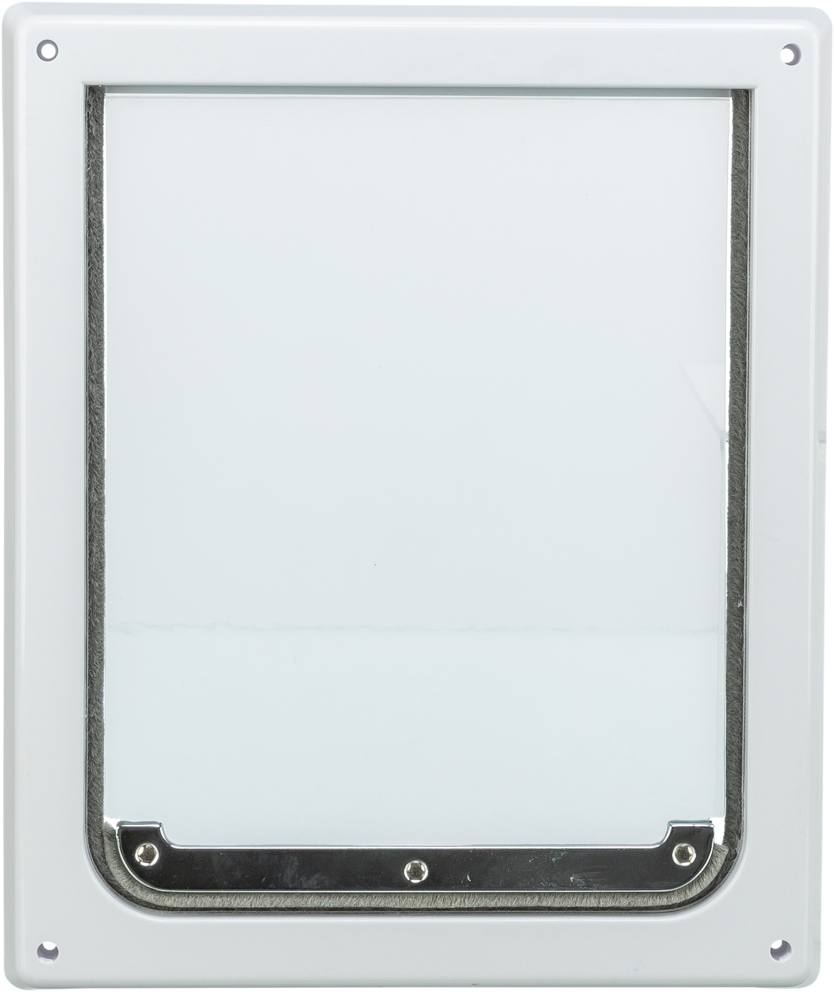 If you want to give your furry friend the freedom to go outside whenever they want, then this pet door is perfect for you. With a durable plastic frame that can accommodate medium to large dogs, you can be sure it will last. The flexible transparent flap and the sturdy metal bar at the bottom ensure the flap closes silently every time. Use the removable and lockable metal panel to control your pet's access and prevent unwanted animals from entering your home. The paintable plastic frame of the door can be matched to your door's existing color, ensuring that it blends in with your home seamlessly. This pet door is designed for easy DIY installation and works with interior or exterior wood, PVC, metal, and paneled human doors up to 1.25 inches thick.