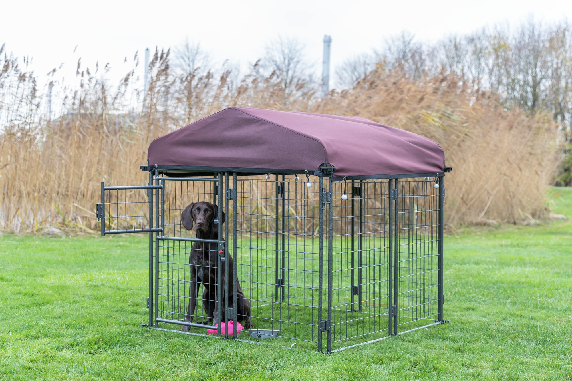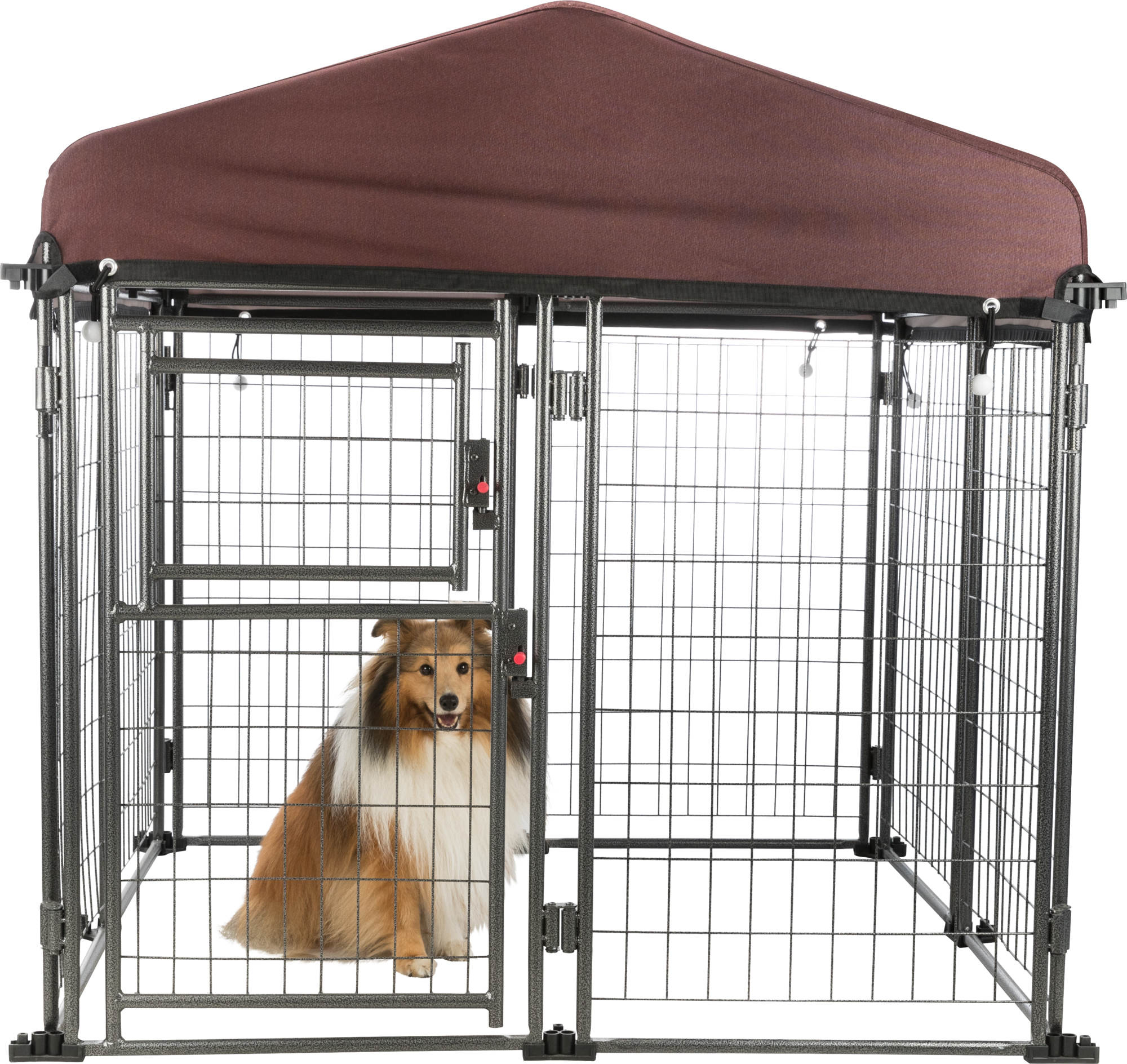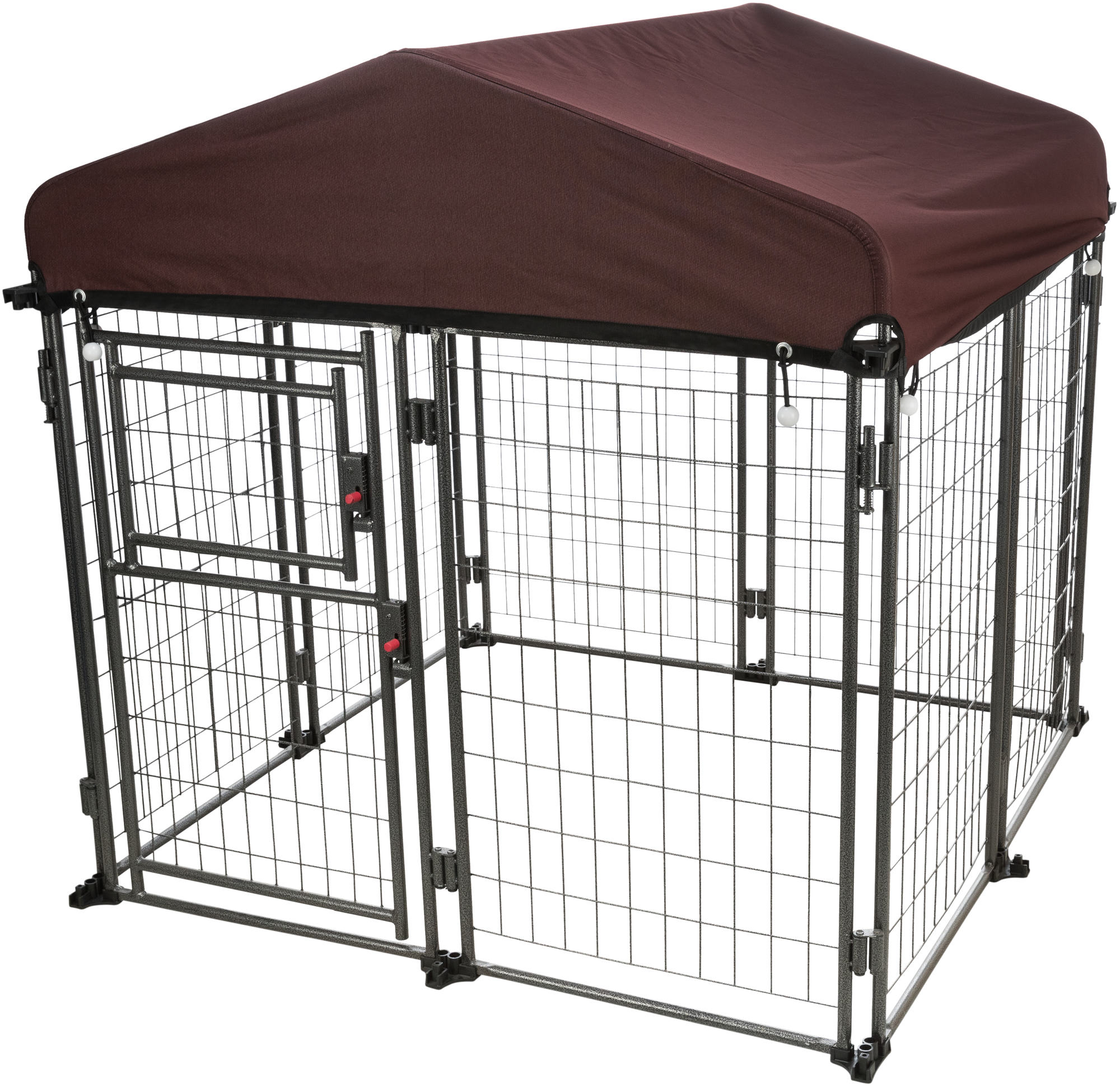 The TRIXIE Outdoor Dog Kennel with a covered roof has everything you need to quickly and easily assemble a professional outdoor enclosure for your pet's safety. Our attractive hammerstone powder-coated steel frame ensures years of use and is lightweight and portable. The heavy-duty cover is attractive and water resistant with UV protection – your pet will be protected from the outdoor elements. If you need additional protection, TRIXIE offers side panels for added shelter from the sun, rain, and wind. The double-door gate is designed to add convenience and safety. Need more room – TRIXIE’s kennel is expandable and can grow with your pet by connecting multiple kennels creating a larger, more comfortable space.