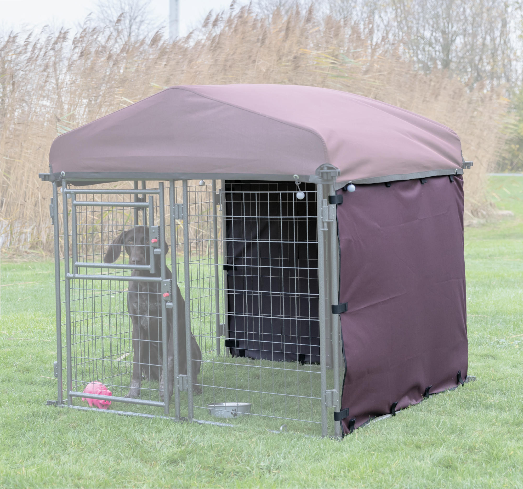 Need extra protection? The TRIXIE Dog Kennel Sunshade Side Panels will keep your pooch cooler on hot days and dryer on wet days. The weather protection side panels provide full protection from sun, rain, and wind. Available in two sizes to match the The TRIXIE two Outdoor Dog Kennels. It is easy to attach to the side of the kennel, fasteners are included. On those sweltering summer days, the last thing you want is a hot dog.