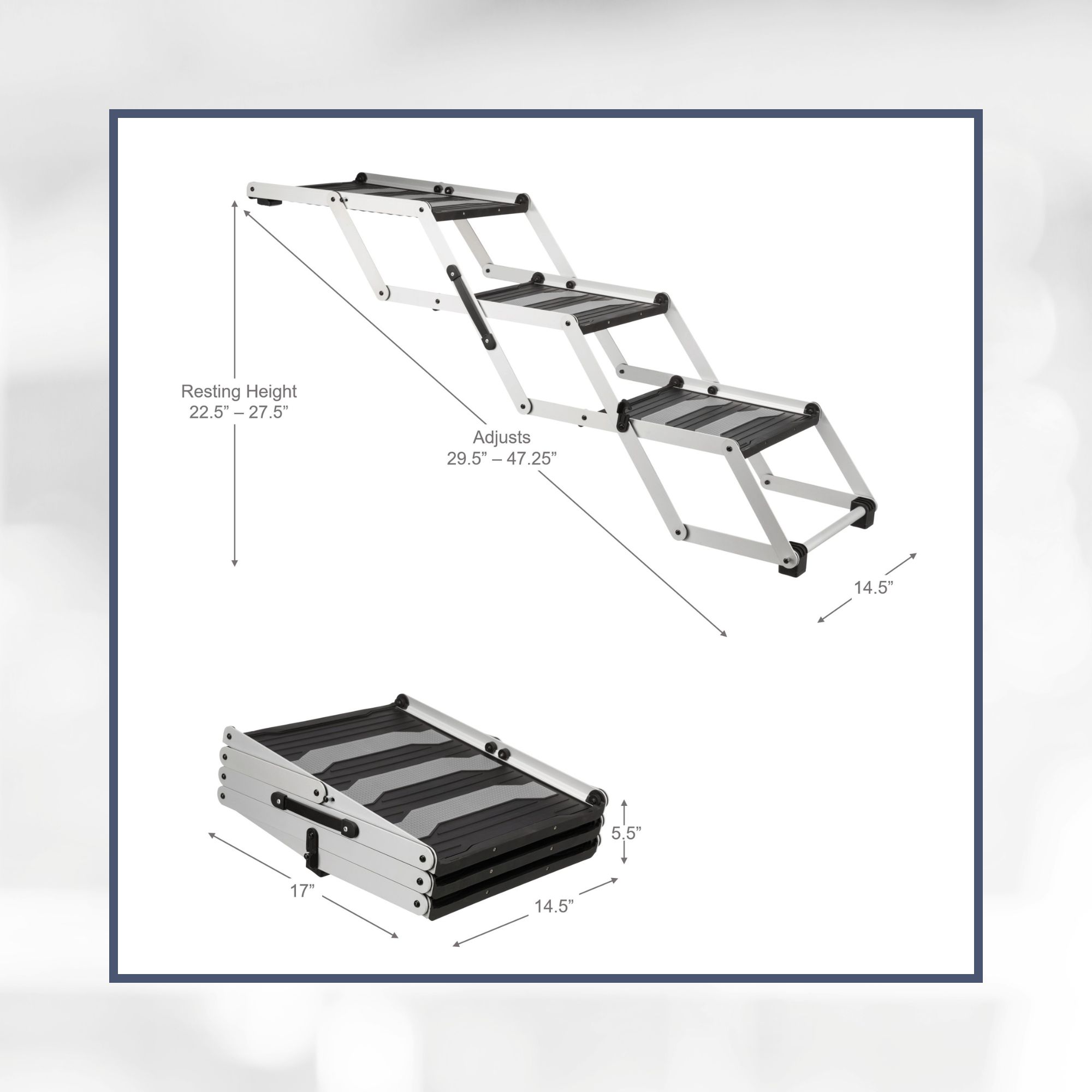 - Adjustable Height and Collapsible - The height of these folding stairs can be adjusted to perfectly fit the height you need (from 19.5” to 27.5”); your dog can walk comfortably into your vehicle or up onto your couch or bed with ease