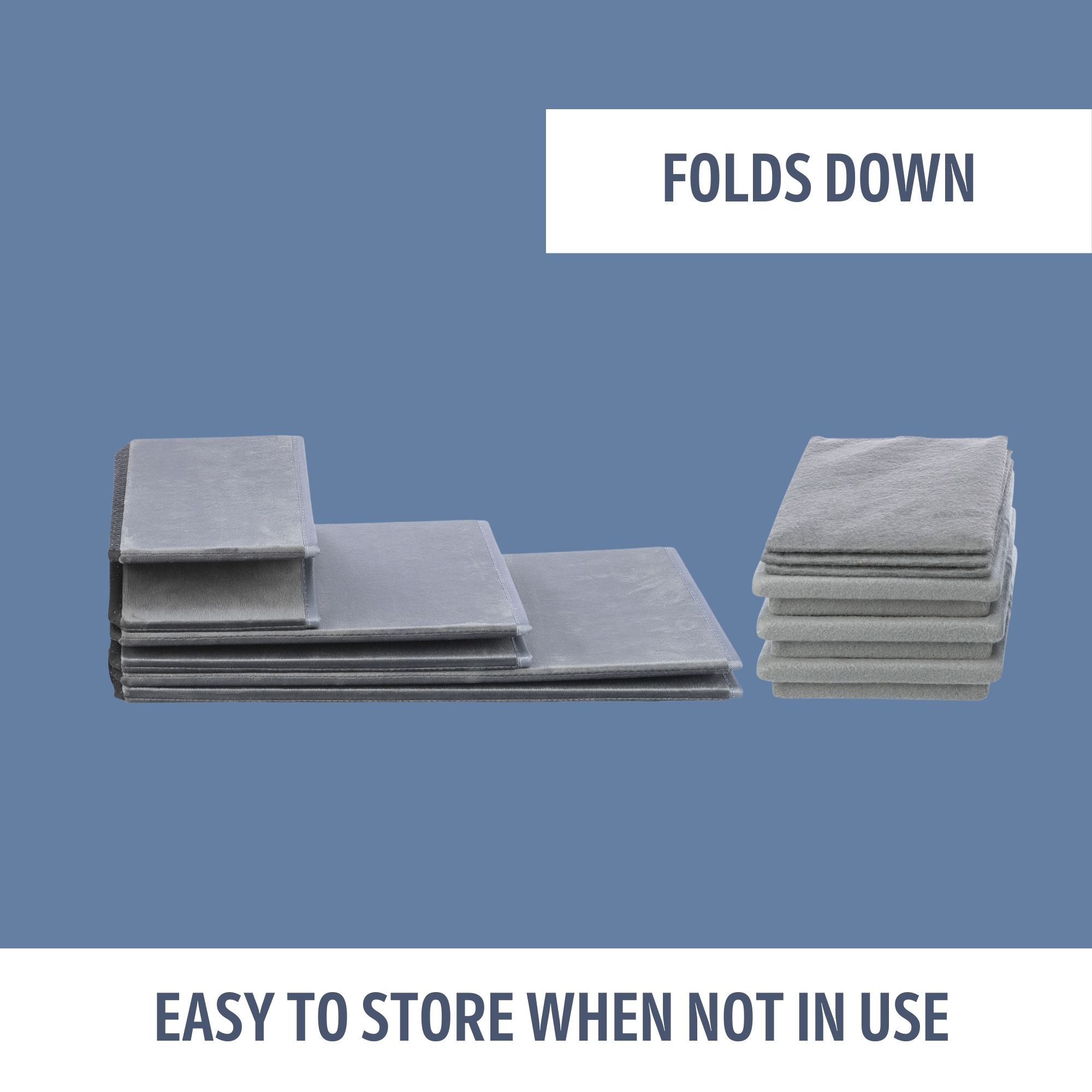- Lightweight and sturdy steps can be easily moved and stored for convenient accessibility; designed to fold flat makes it easy to store under couches or beds