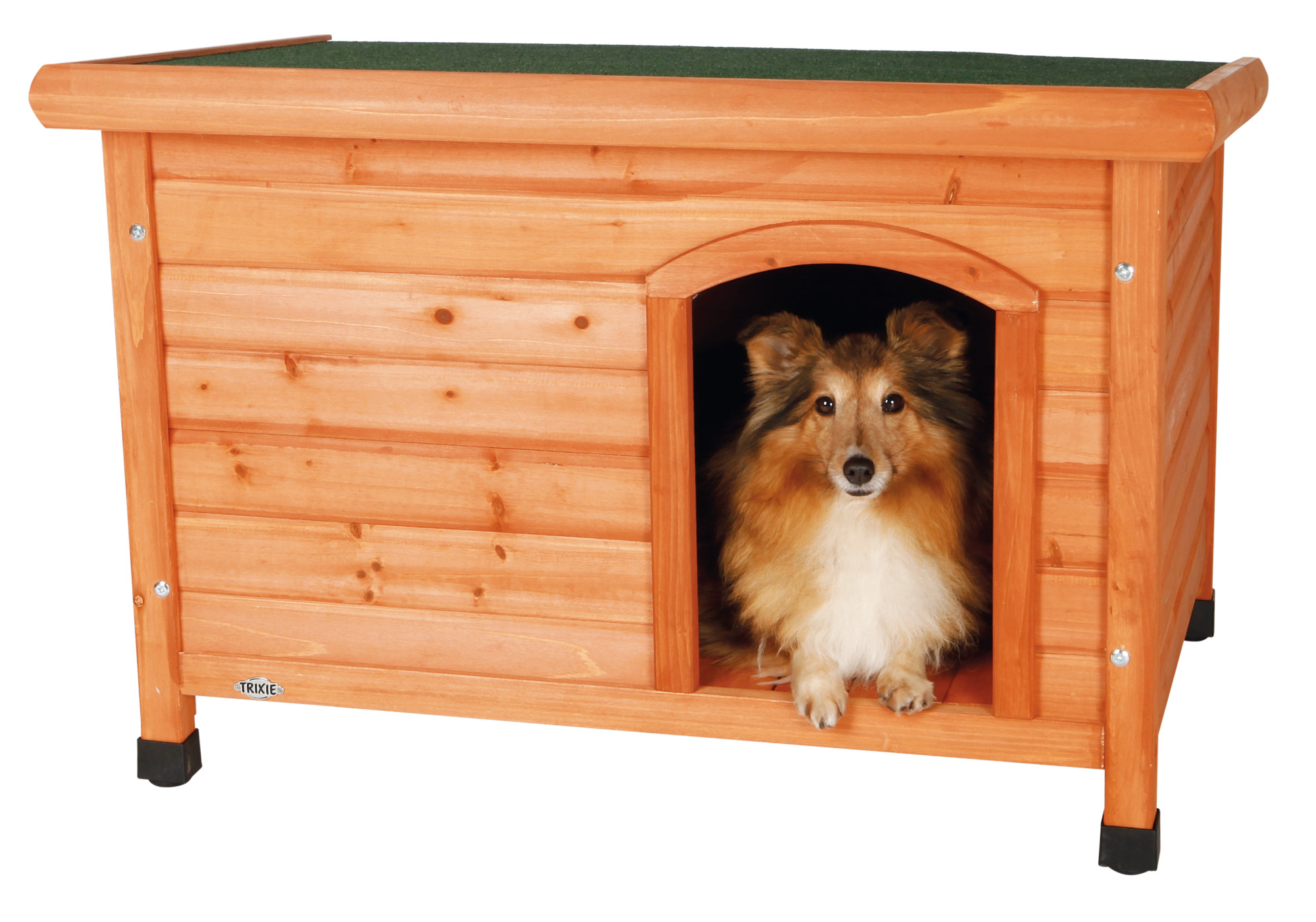 - TRIXIE: The classic design of the outside dog house in brown complements any backyard. TRIXIE's dog houses are also available in various other designs & sizes - find the right shelter for your dog